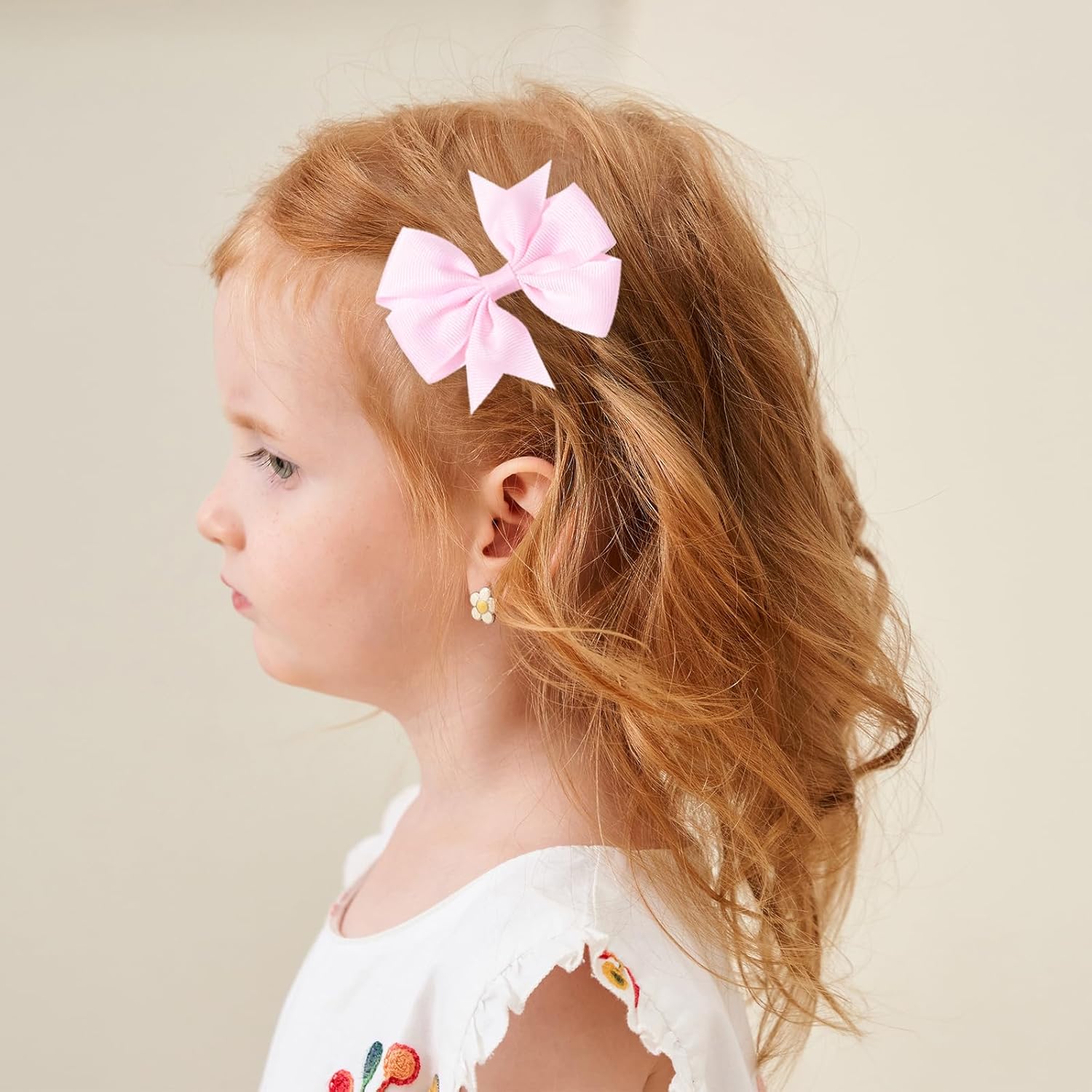 Size and Weight:These hair bows are about 3 inches long, not too big or too small. They are a great choice for your little girl. These toddler hair clips are good for kids 1-year-old and older. Toddler hair accessories are light and won't squeeze your baby