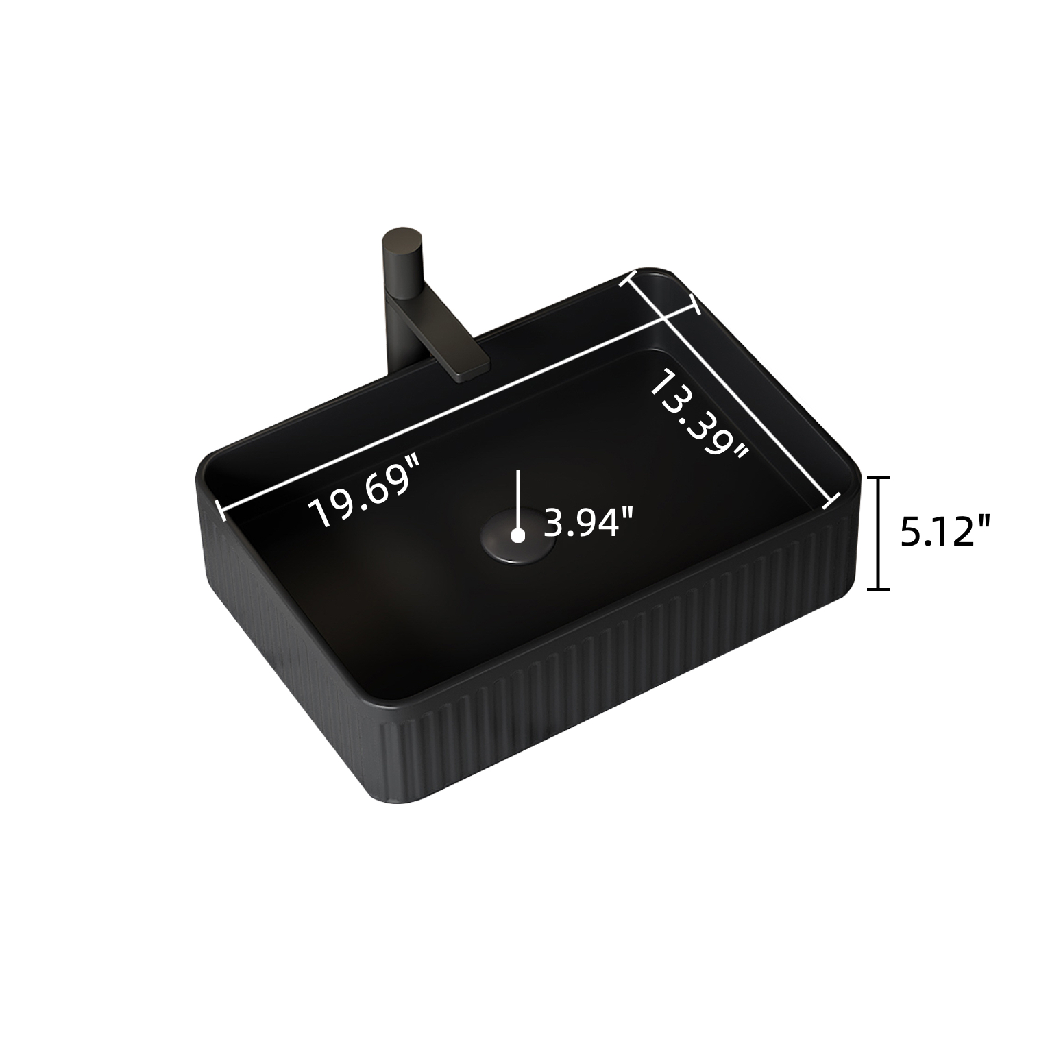 Product Name:20'' Bathroom Sink, Rectangular Striped Vessel Ceramic Basin without Faucet, NO Cabinet, Black