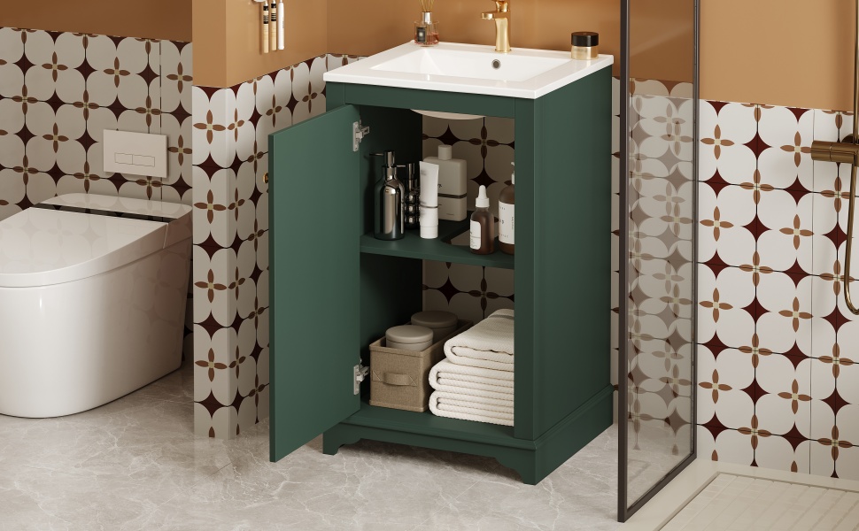 Product Name:20-inch Bathroom Vanity with Ceramic Sink, Freestanding Single Vanity Set with Soft Closing Door, adjustable shelf, Modern Style, Green.