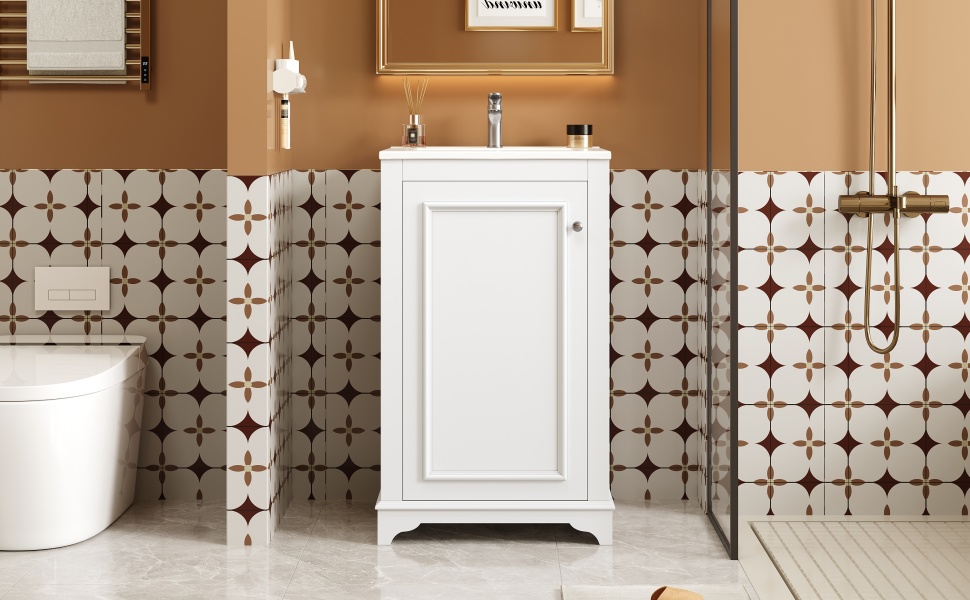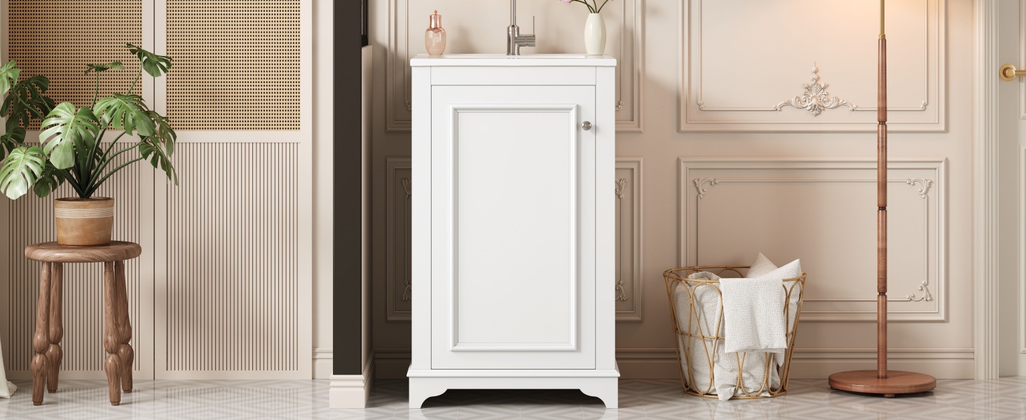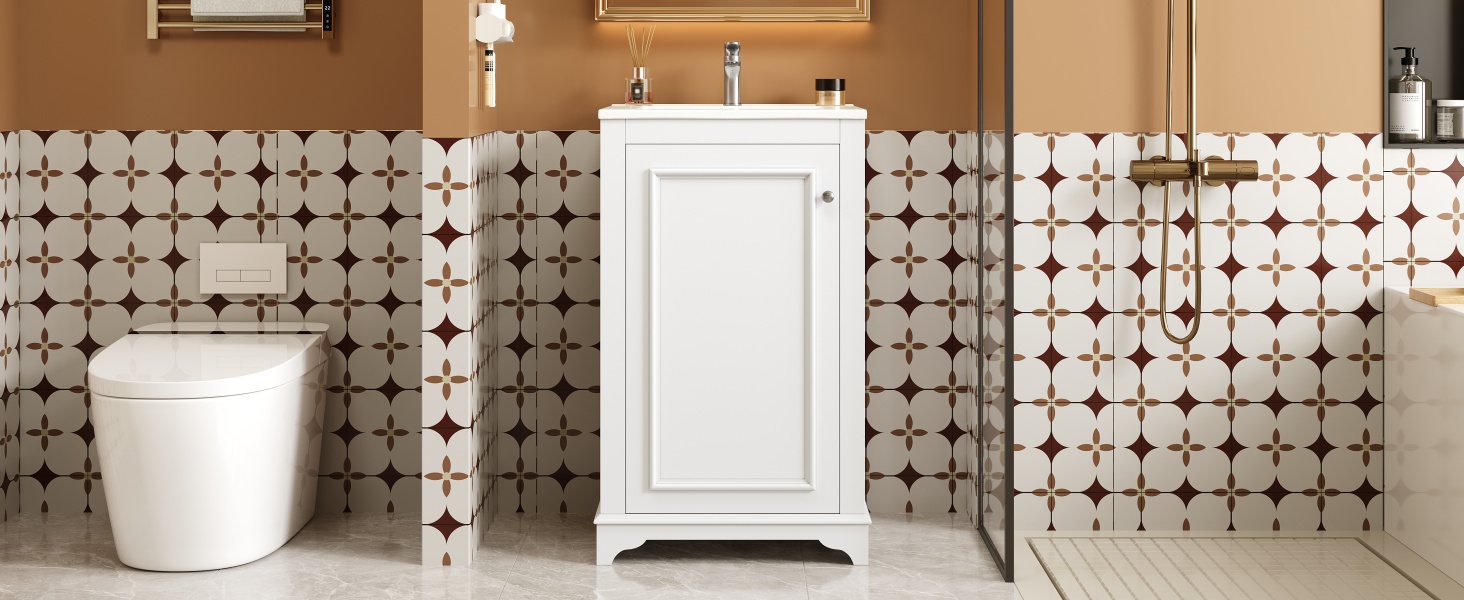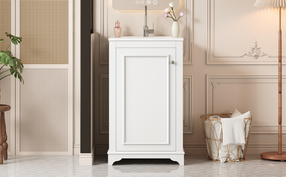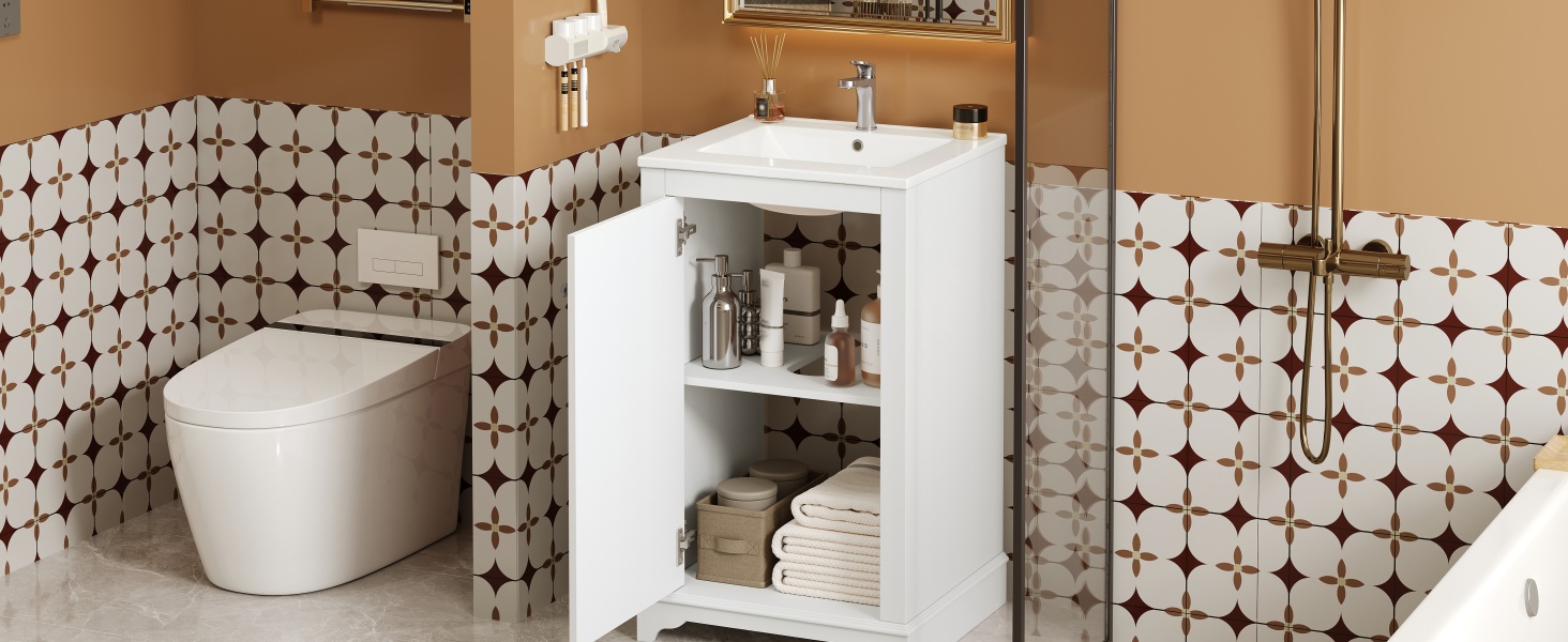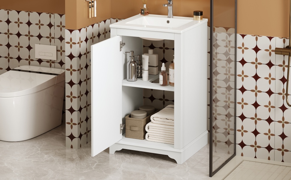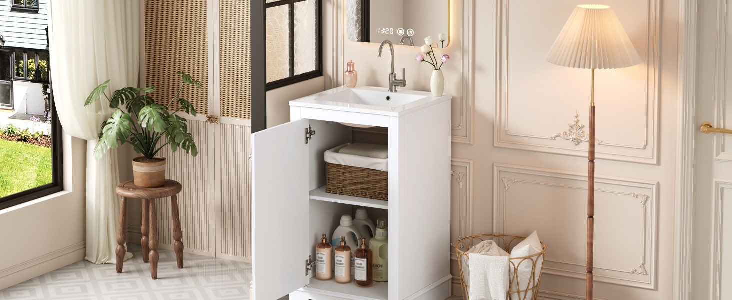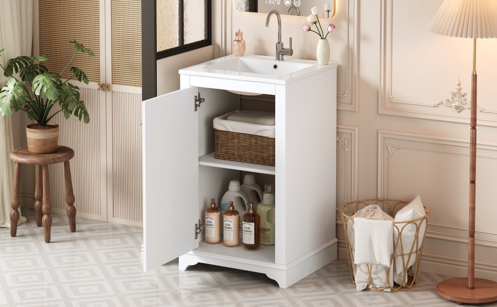 Product Name:20-inch Bathroom Vanity with Ceramic Sink, Freestanding Single Vanity Set with Soft Closing Door, adjustable shelf, Modern Style, White.
