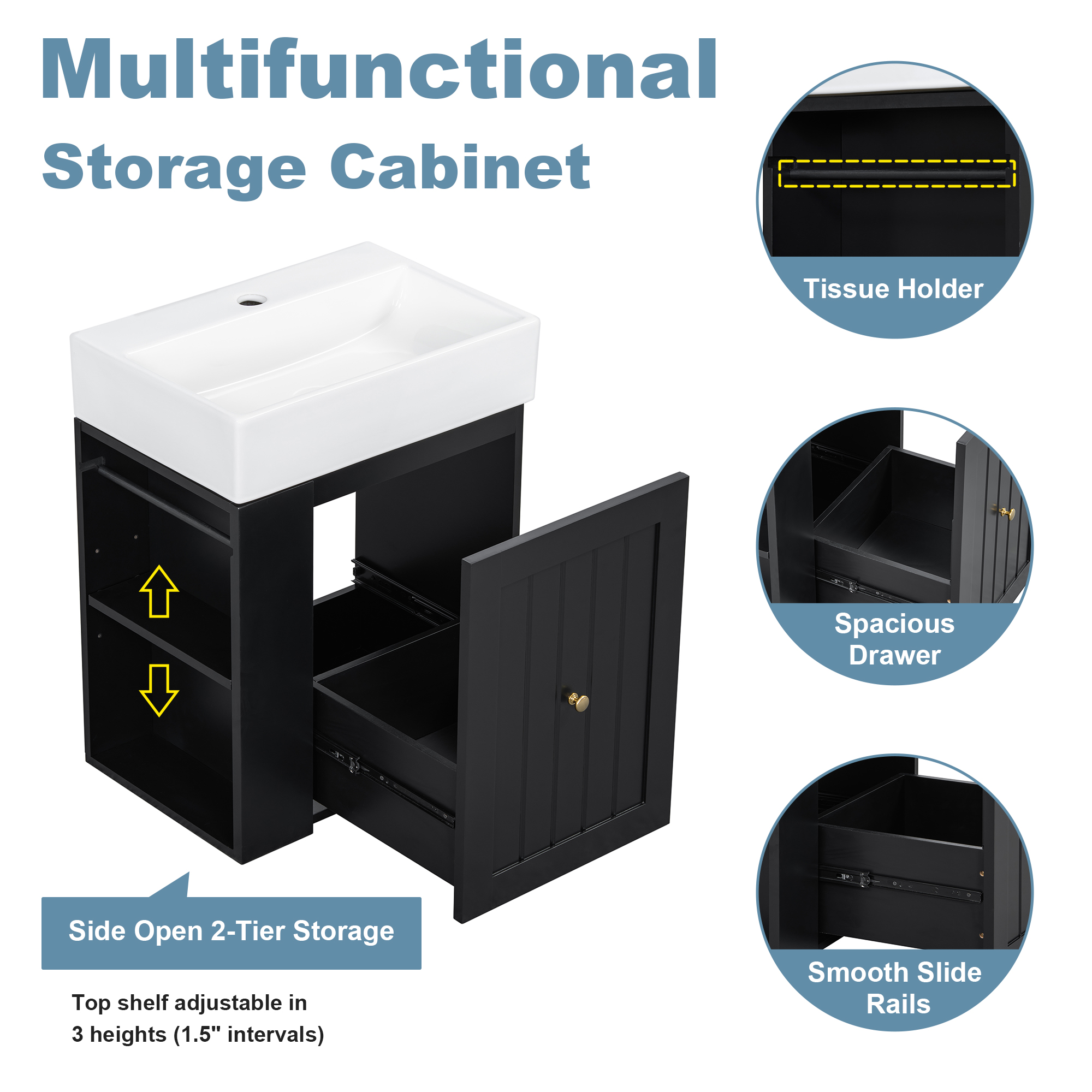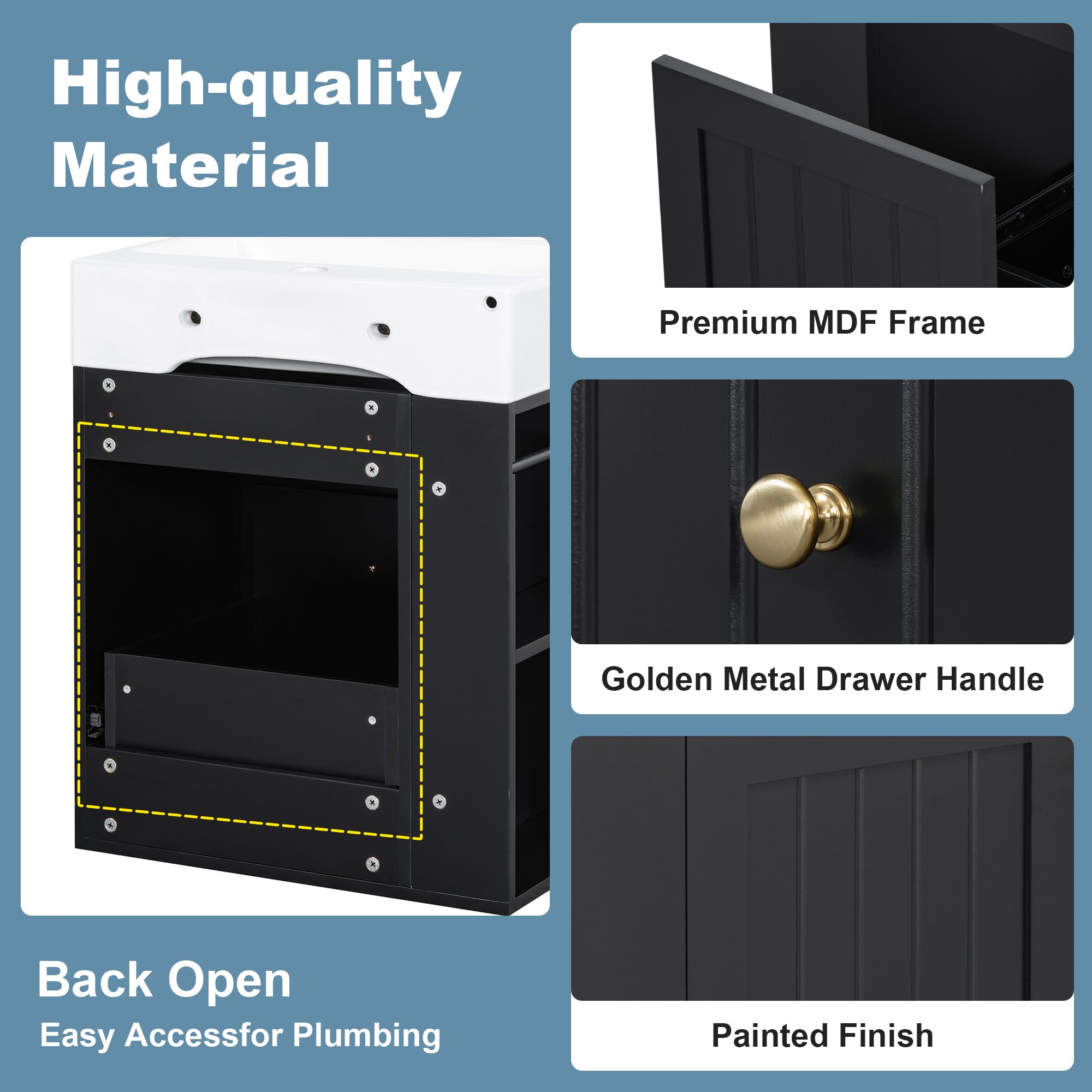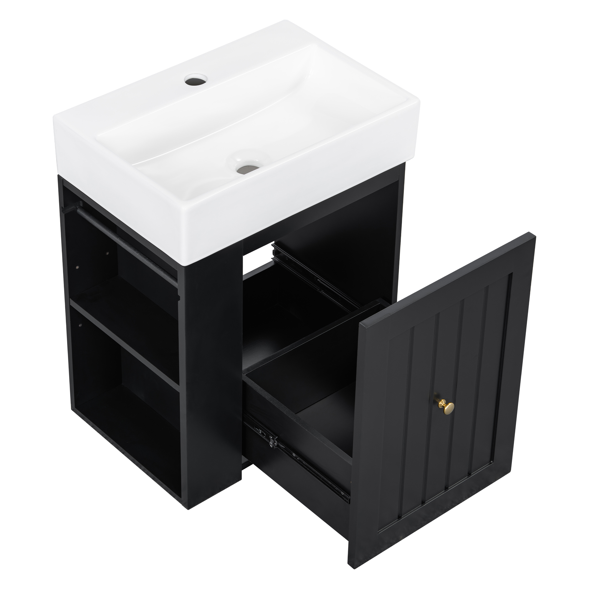 Product Name:20-Inch Bathroom Vanity with Ceramic Sink, MDF Storage Cabinet with Drawer, Side Shelf & Golden Handle – Space-Saving Modern Vanity for Small Bathrooms