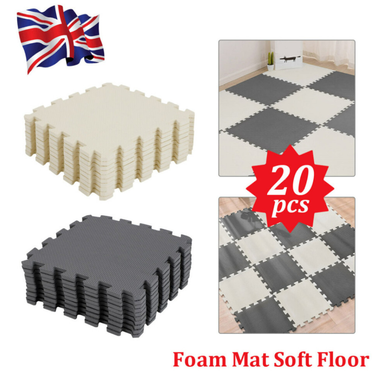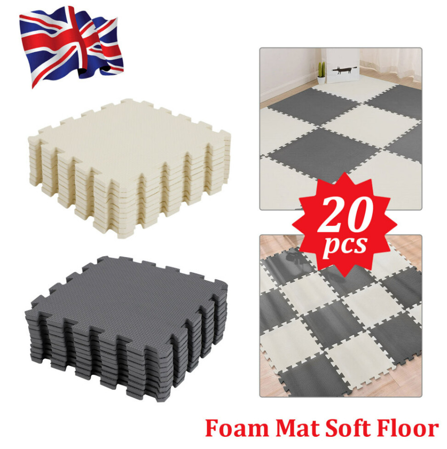 20Pcs Eva Foam Mats (10Pcs Black+10Pcs Beige)