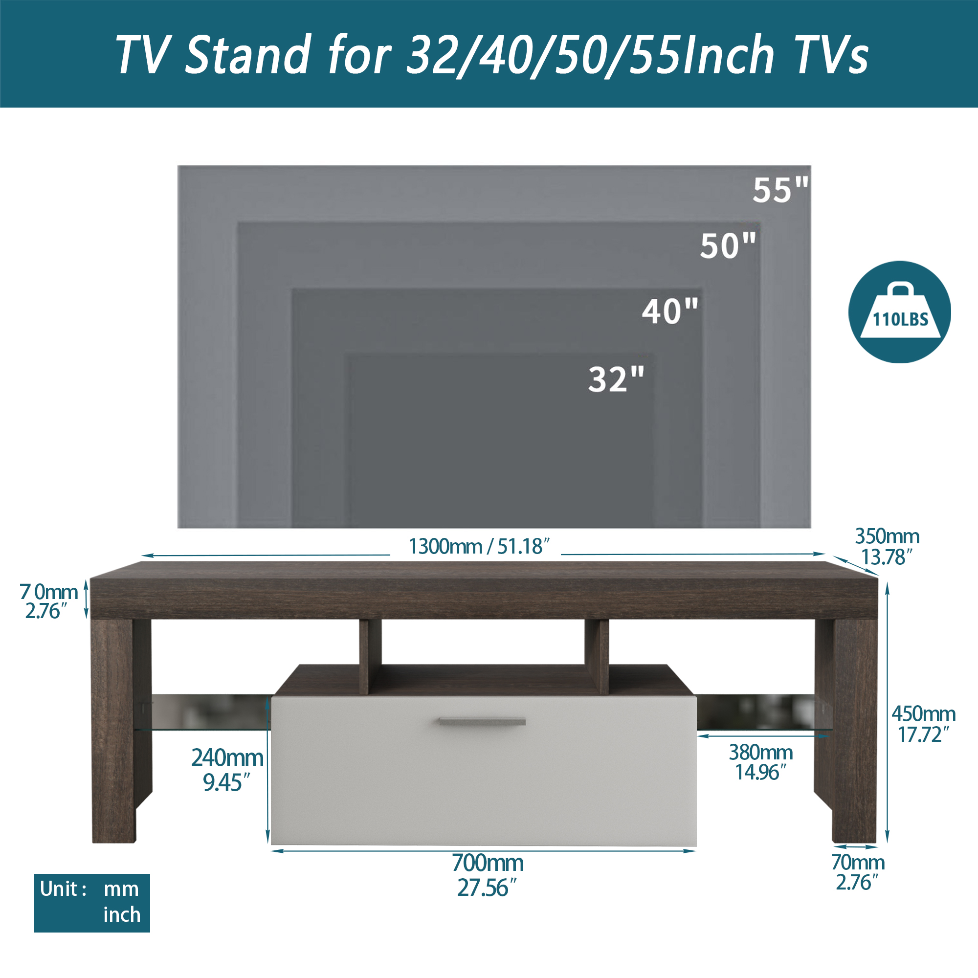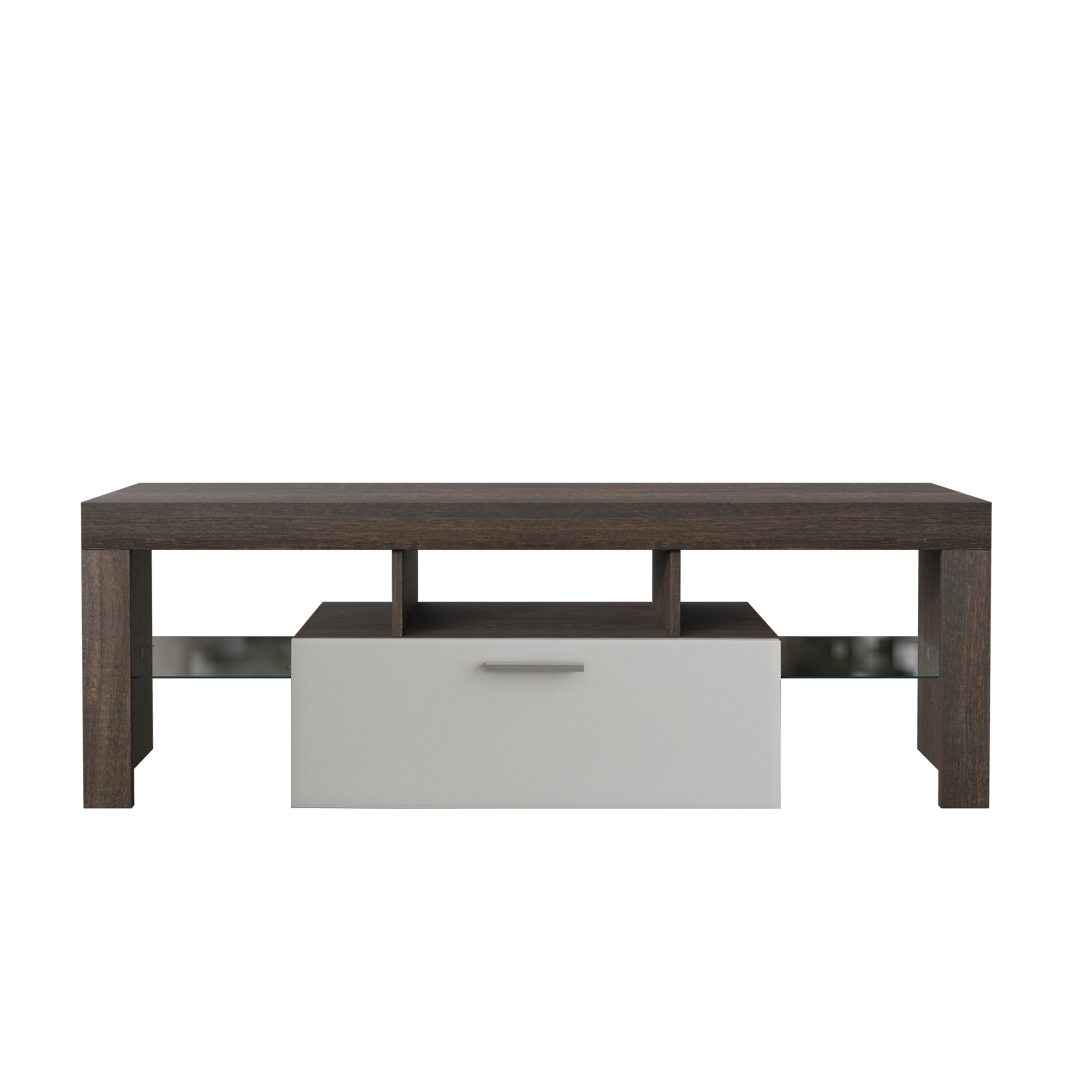 Product Name:20 minutes quick assembly brown simple modern TV stand with the toughened glass shelf Floor cabinet Floor TV wall cabinet Brown + whiteTV bracket with LED Color Changing Lights for Living Room