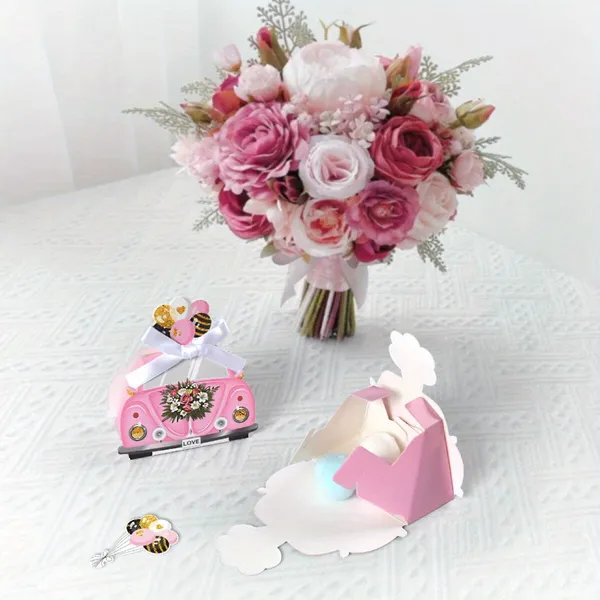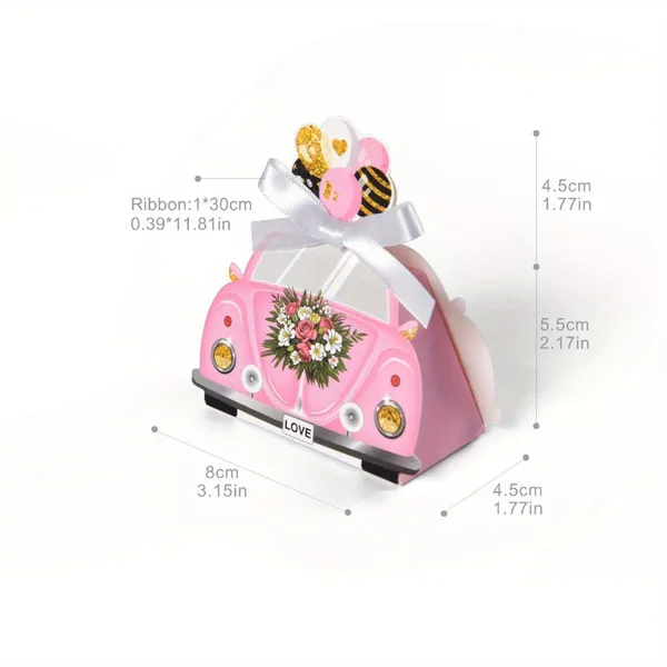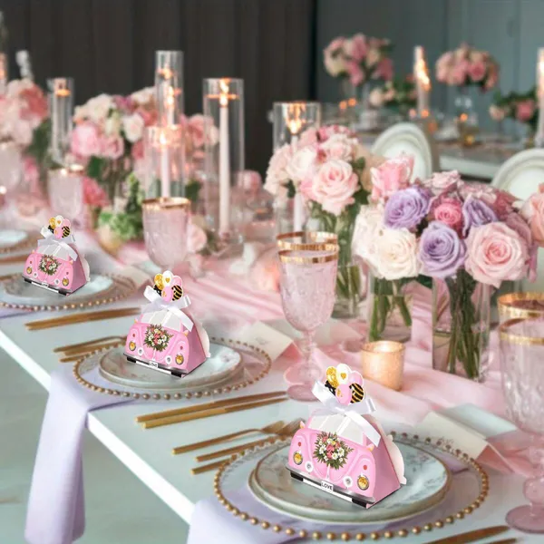 20 Pcs DIY Wedding Favors Candy Boxes With Ribbon Bow 3D Floats Shaped Mini Chocolate Treat Gift Boxes Pink Romantic Paper Box For Bridal Shower Engagement Wedding Party Favor