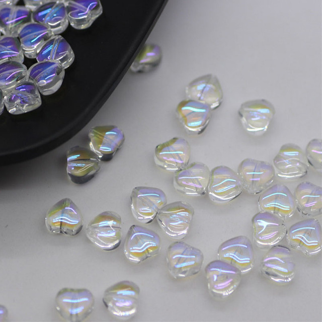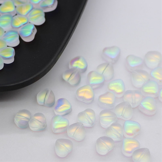 20 PCs Love Glass Spacer Aurora Transparent Czech Beads Perforated Beading Accessories