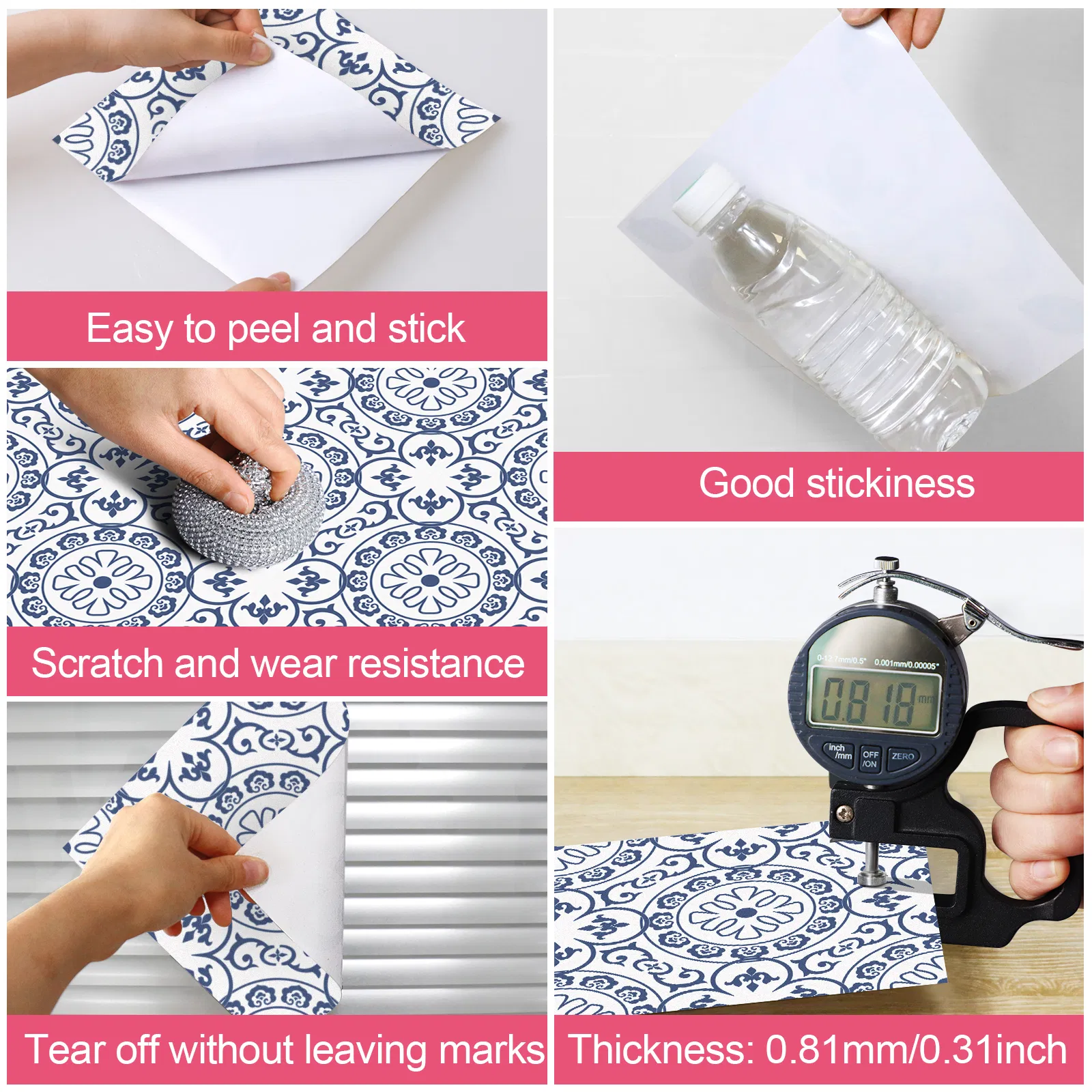 This product is peel-and-stick, cuttable, and splicable, allowing for quick application; it is ideal for home wall renovation and features a novel blte porcelain pattern design.