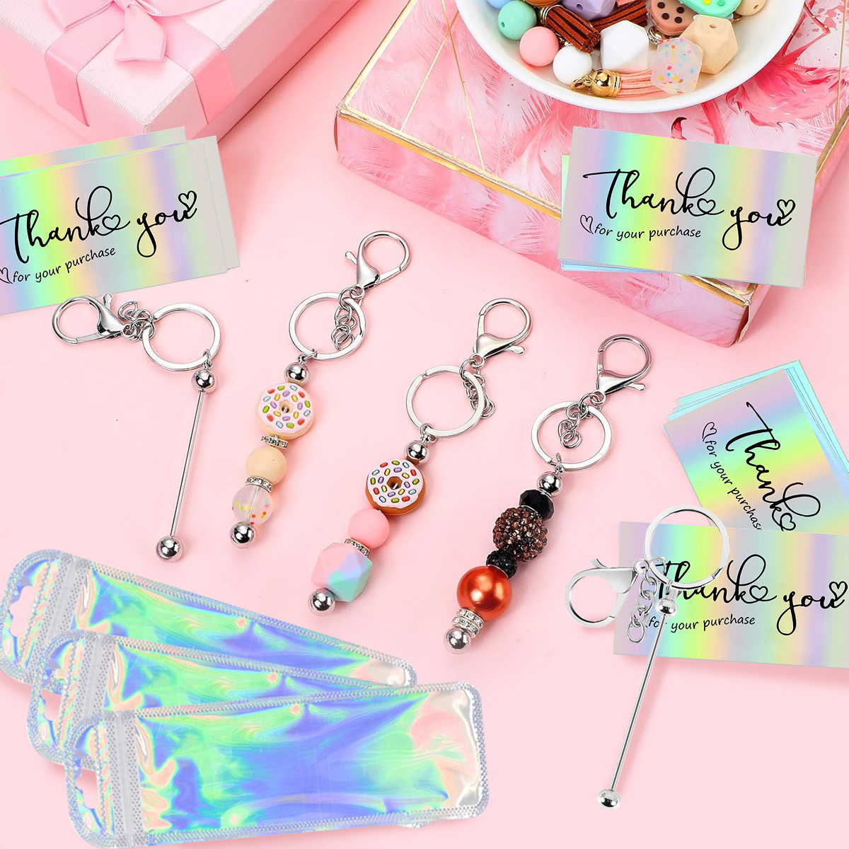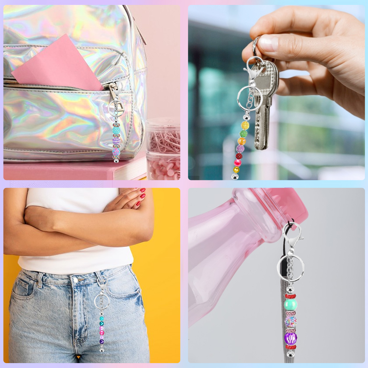Package contents: 60 Pcs Beadable Keychain Kits