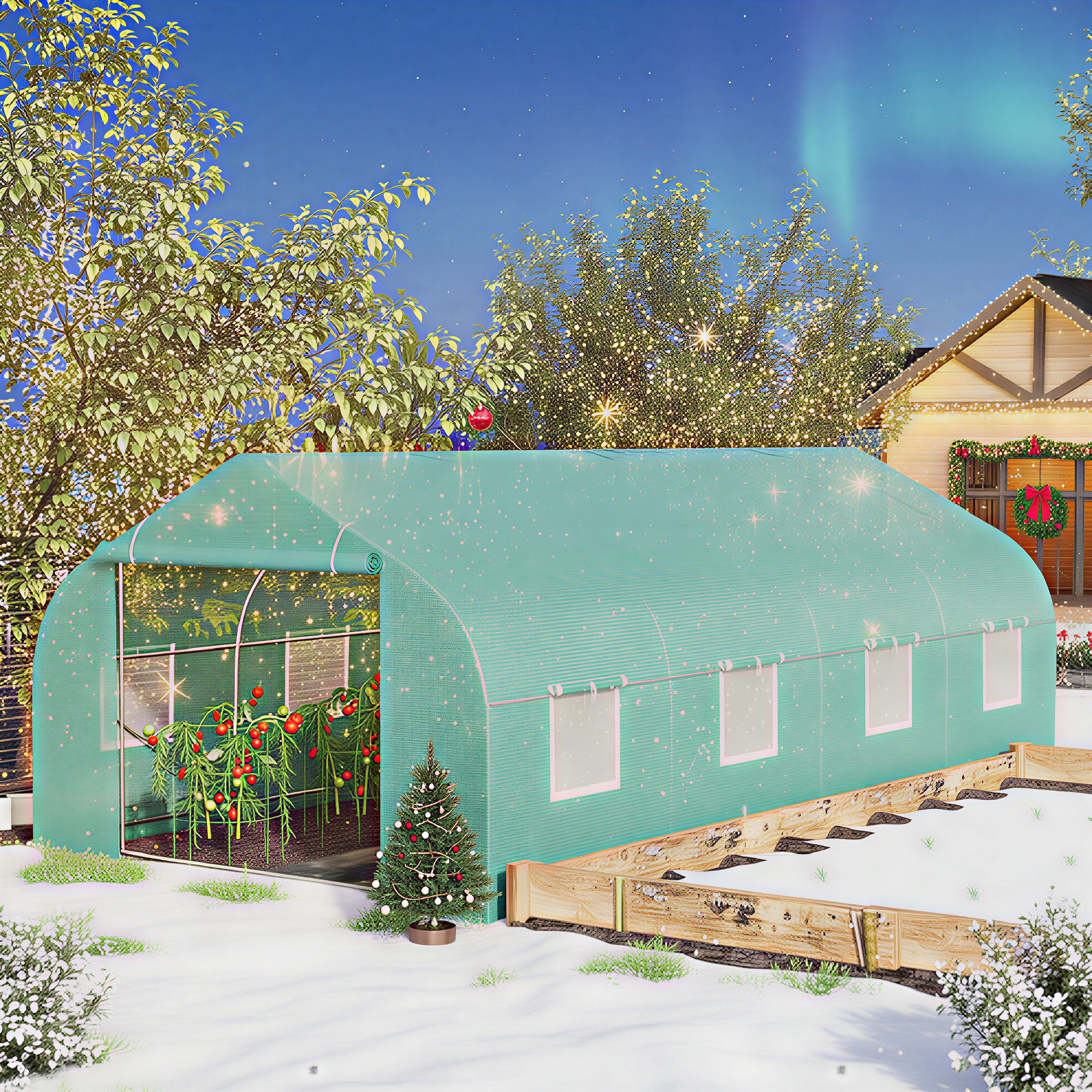 • - Heavy-Duty Steel Frame: Our outside greenhouse features a chip-resistant galvanized steel frame with seven rows of reinforcing tubes, a crossbar, and four slant bracing tubes, each featuring a 0.94" thick diameter. Note: Please remove the cover in case of heavy snow, strong wind, and heavy rain.