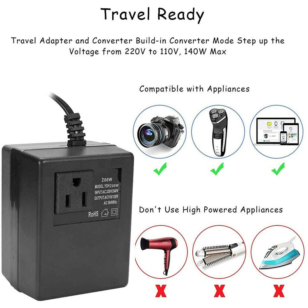200W Power Voltage Converter Transformer Step-Down 220V/240V to 110V/120V UK
