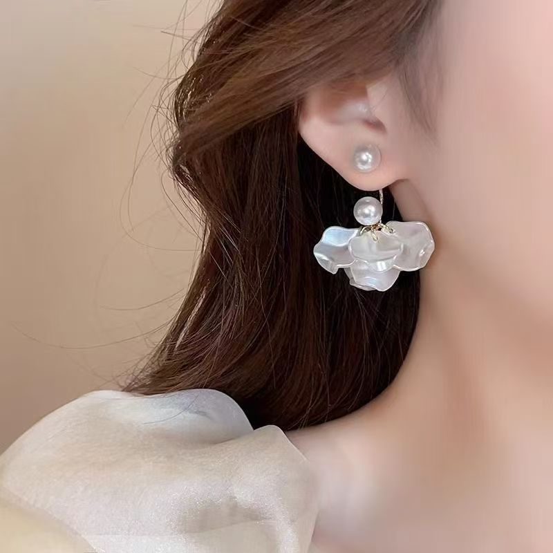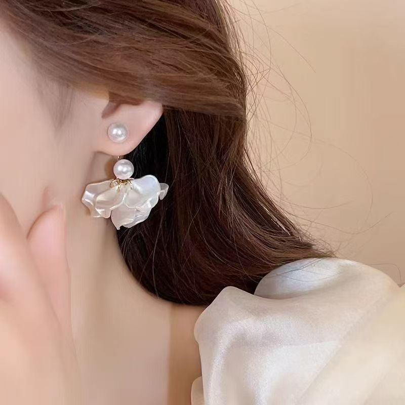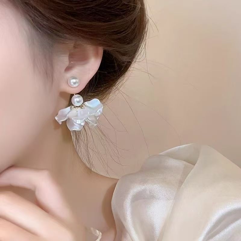 2026 New Exquisite White Pearl Petal Earrings For Women, French Style, Elegant & Unique Design Stud Earrings