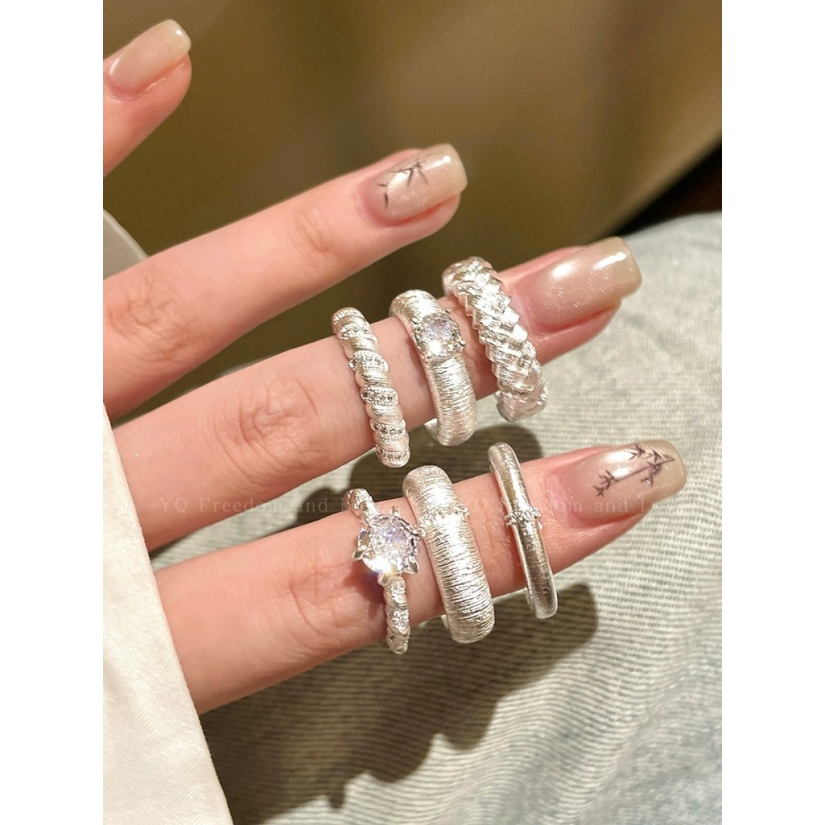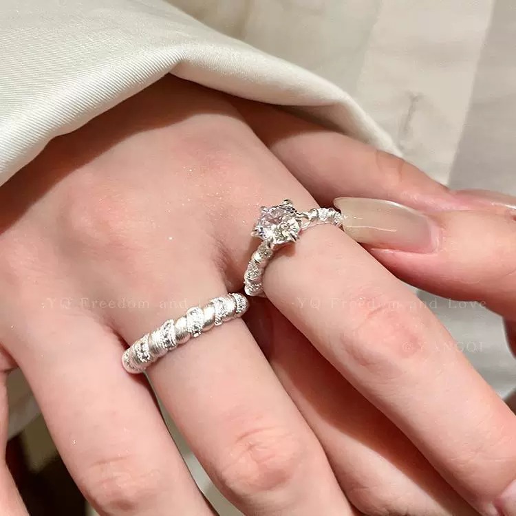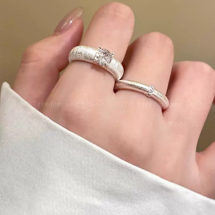2026 New High-End Sparkling Zircon Brushed Open Ring For Women, Light Luxury Niche Index Finger Ring