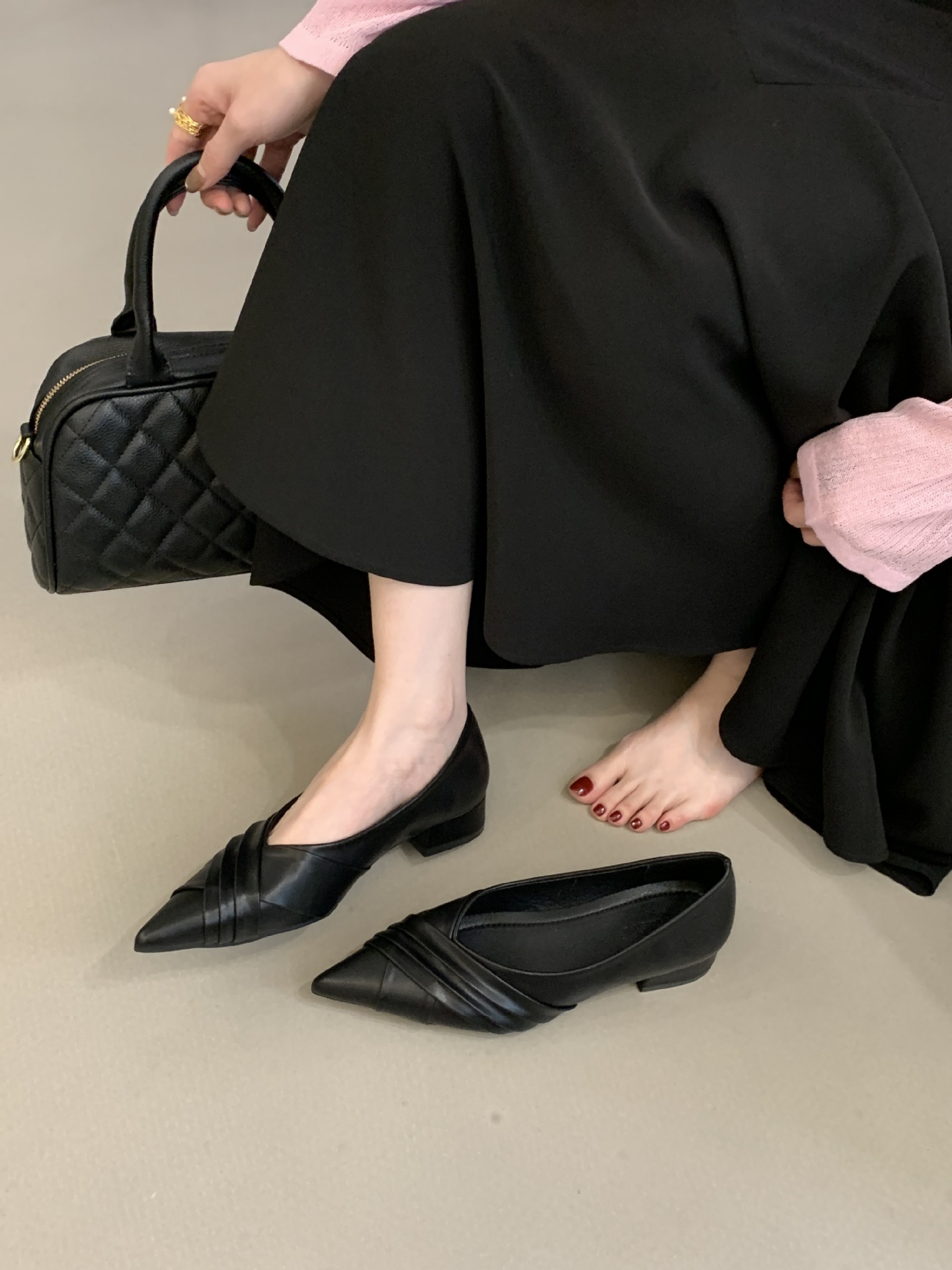 Elevate your everyday look with these chic French-inspired pointed-toe low block heel pumps. Featuring a sleek pointed toe, a stable low block heel, and a convenient slip-on design with delicate pleated details, these elegant shoes offer both effortless style and all-day comfort. Perfect for adding a touch of timeless sophistication to office wear, daily commutes, or casual outings.