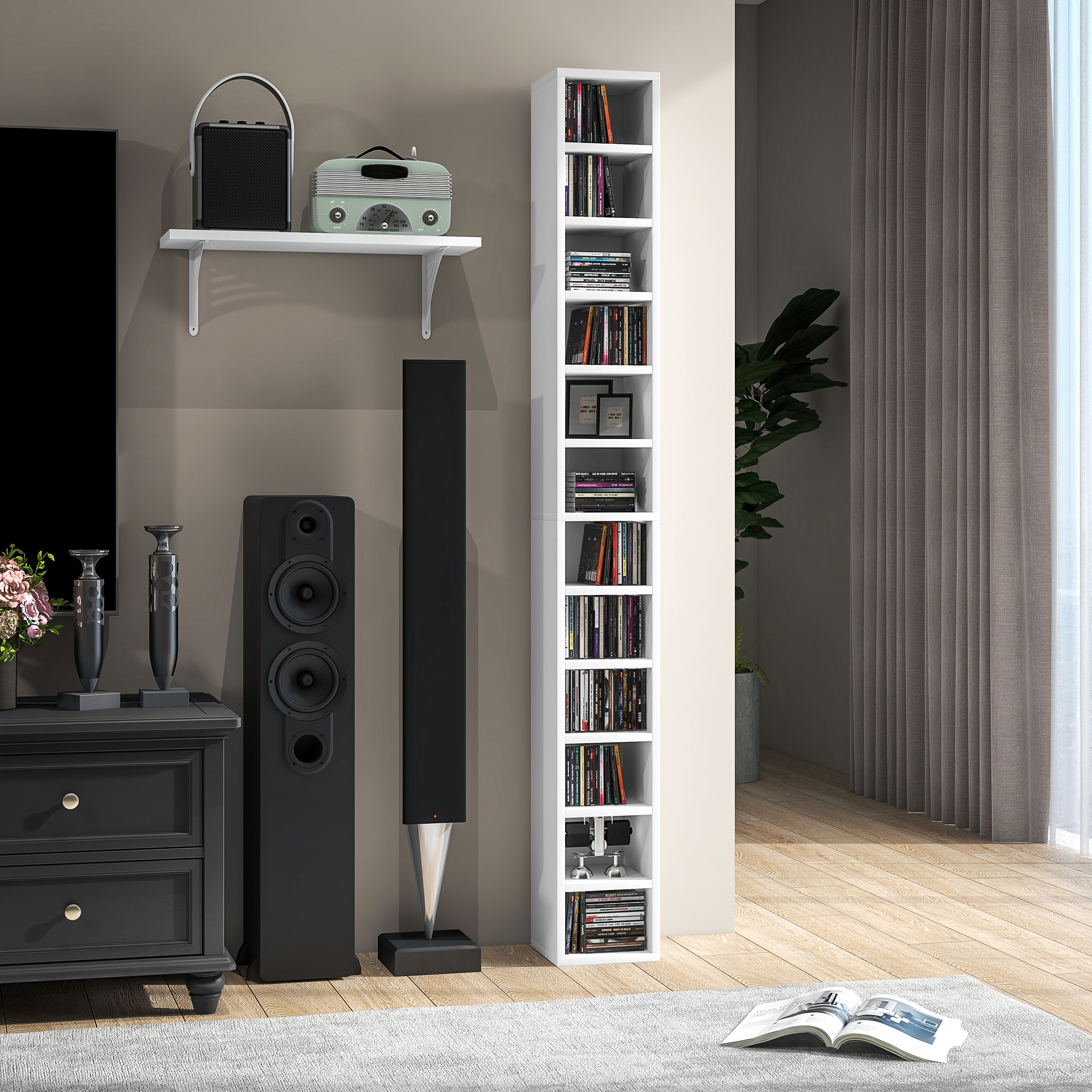 Keep your CD and media collection organised, thanks to this CD tower. This 12-tier CD rack holds up to 204 CDs, so there's plenty of space for both you and your family. The tall and slim shape makes this a space-saving piece. This media storage tower comes complete with an anti-tipping design to safely fix to a wall.