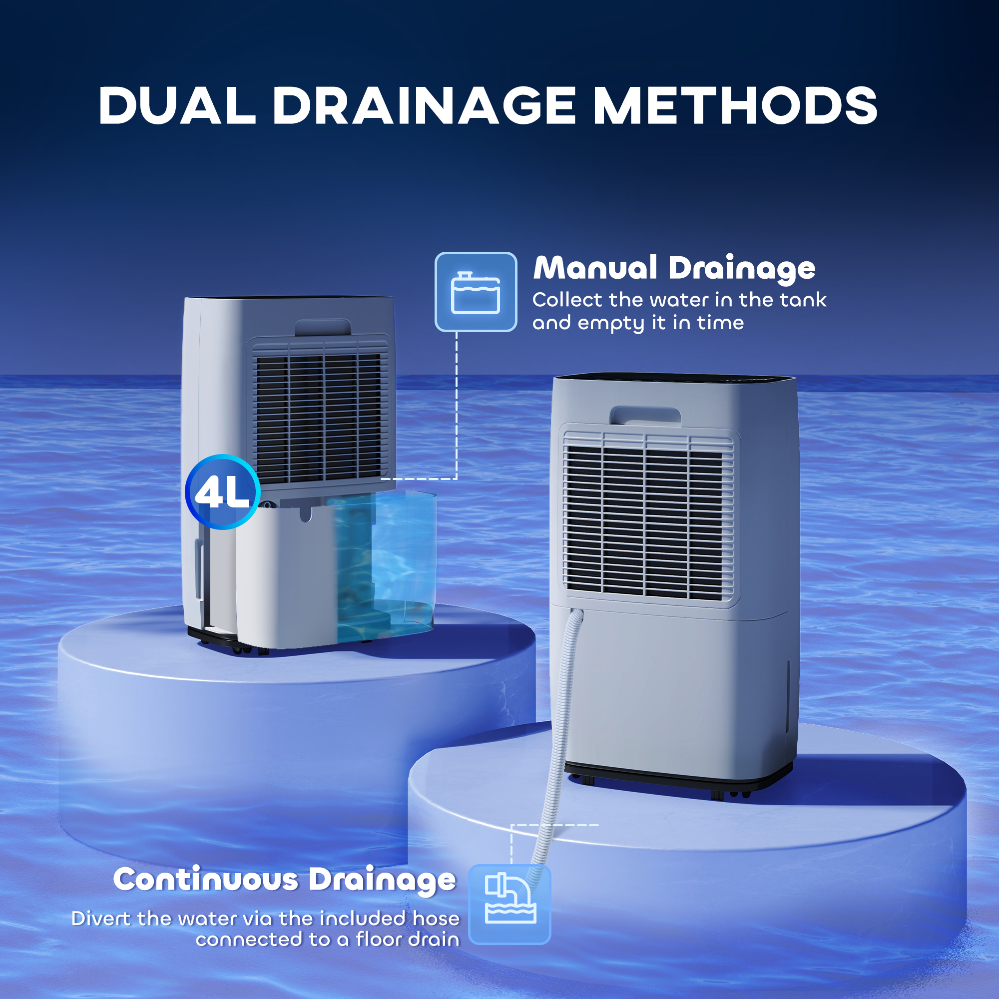 This 4L portable and small dehumidifier, from , is a must this summer and beyond for keeping your home fresh. It comes a changeable low and high speed, with various modes for different humidity levels. The LED panel makes it easy to view, change and adjust the settings. The 38dB operation is quiet; paired with the compact size - you can stand this electriq dehumidifier almost anywhere, anytime.