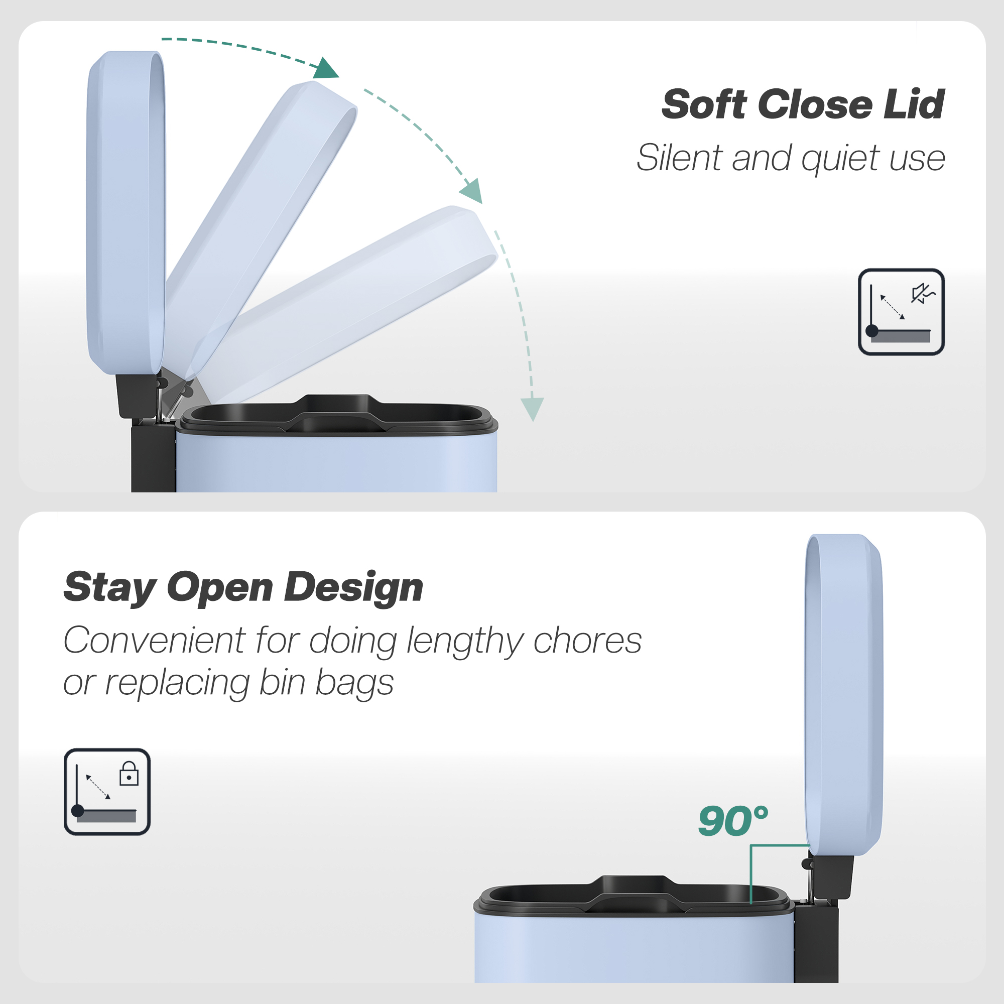 Compact hygiene, for the kitchen and beyond: this modern boxy 20L dustbin for kitchen. Made from metal, this is tough piece suited for everyday use. The pedal opens the lid for hands-free use, with a gentle closing to avoid it disturbing your family. The stay-open option and removable inner bucket makes cleaning super easy. So, when you feel stuck on space, go for this small but mighty pedal bin.
