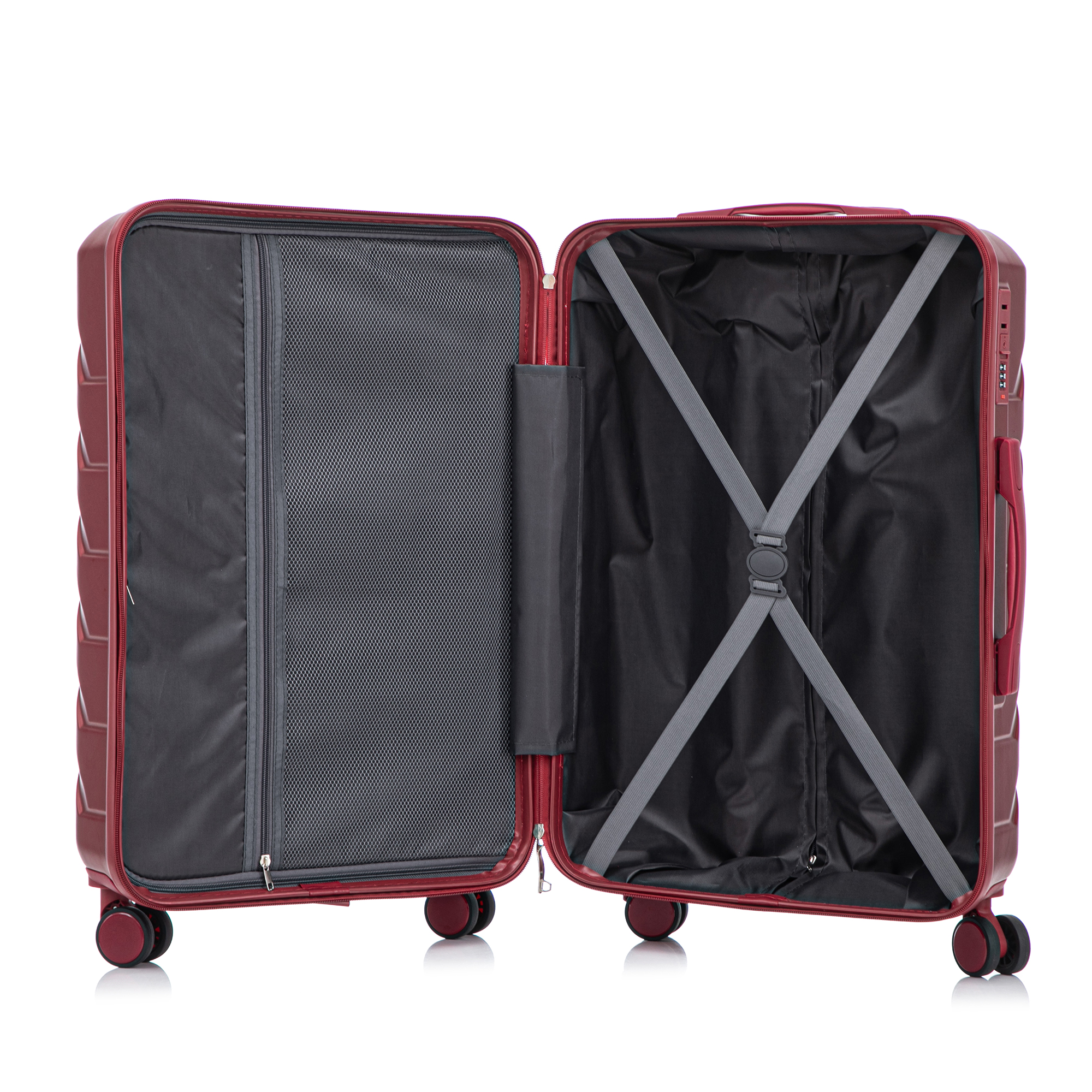 Product Name:20"/24"/28" 3 pcs/set in ABS Spinner Wheel Luggage, Matching Color , With Combination Lock (Wine Red)