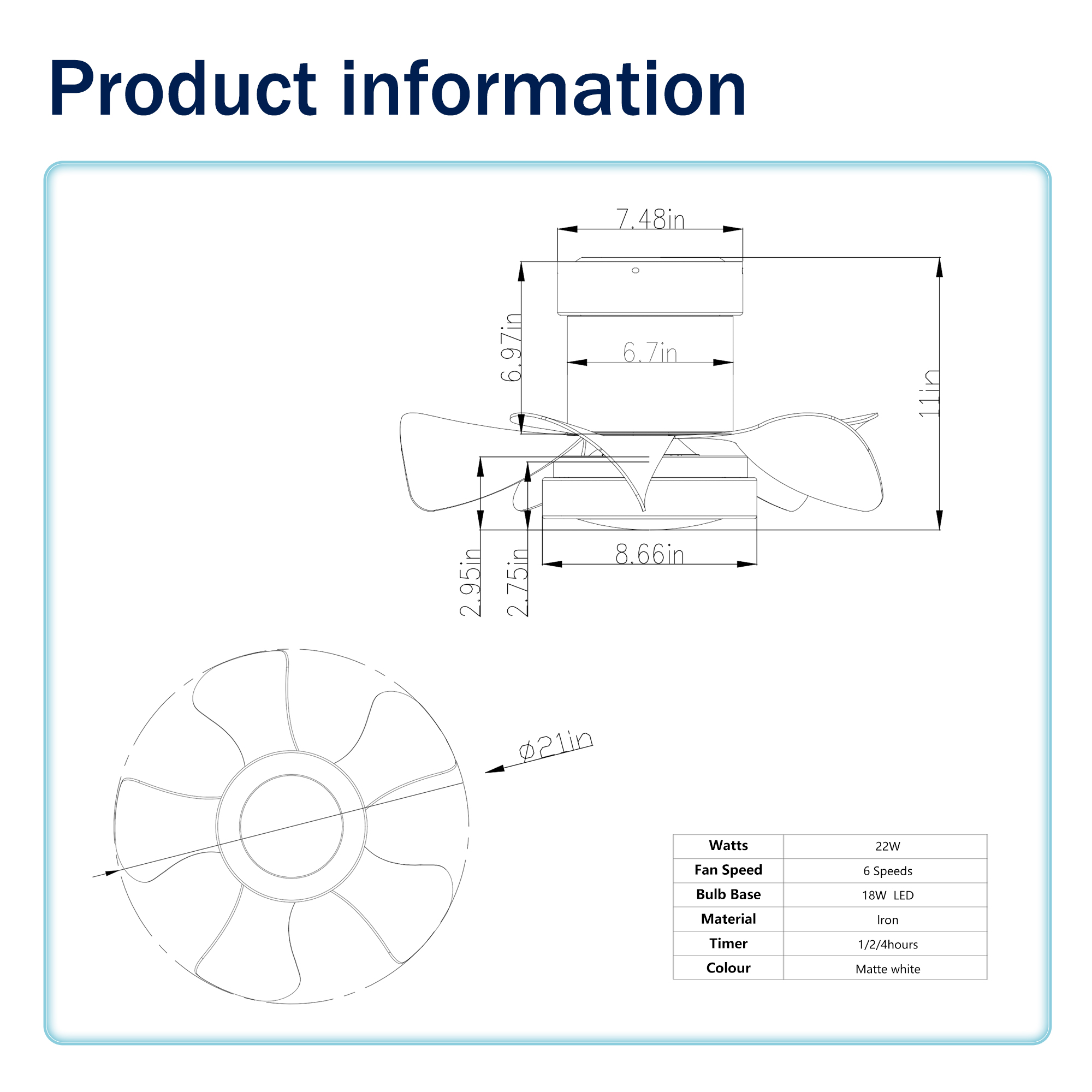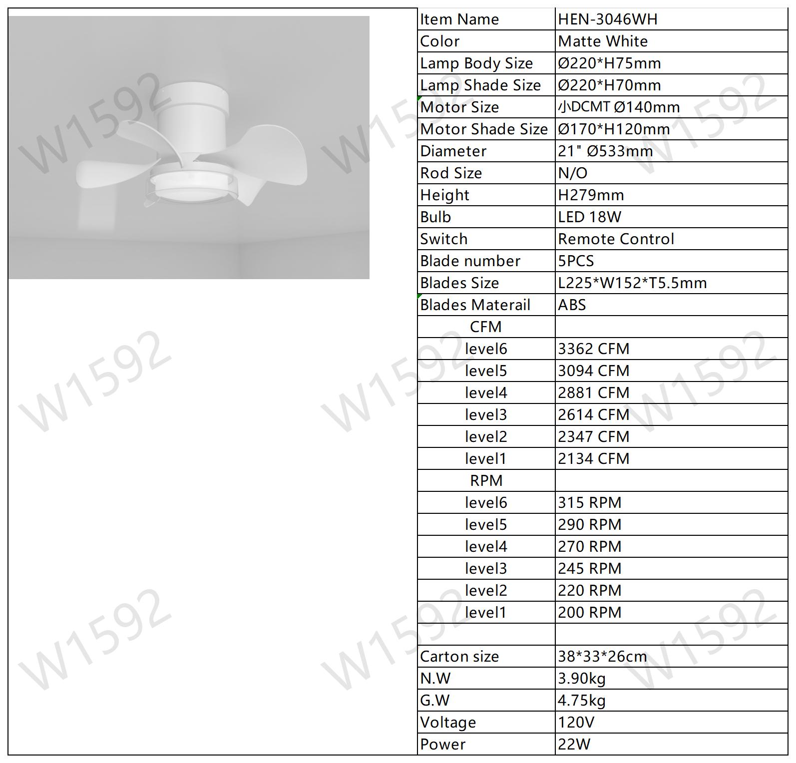 Product Name:21 inch Ceiling Fan with 3 Color Temperatures Light and Remote Control DC Motor Powerful and low noise Small Space ceiling fan for Kitchen Bedroom Dining room Toilet Patio (Matte White)