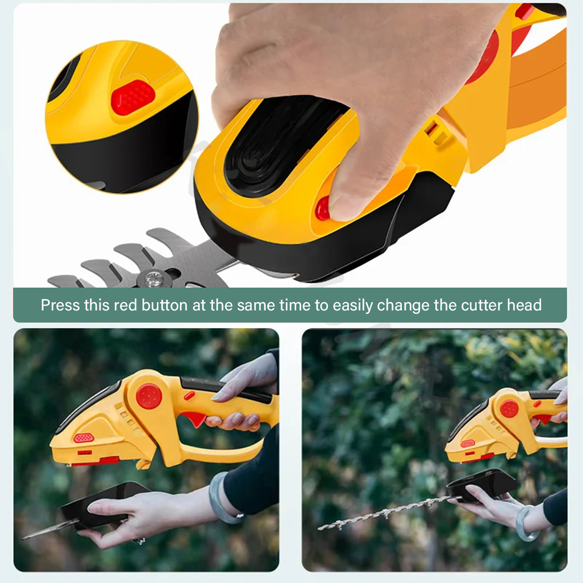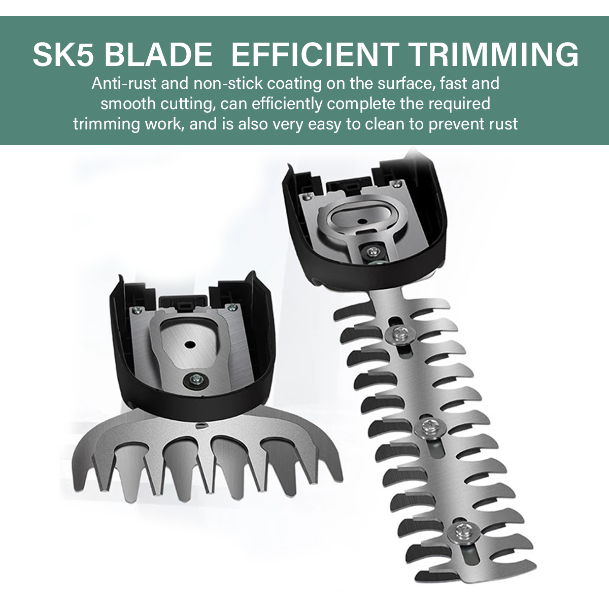Doppelklingen: Die Klinge der Akku-Heckenschere ist aus Edelstahl gefertigt und zeichnet sich durch extreme Schärfe und Stabilität aus. 23 cm Heckenscherenklinge und 13 cm Grasscherenklinge. (Maximaler Schnittdurchmesser für Sträucher: 8 mm) Die elektrische Heckenschere verfügt über ein Doppelklingen-Design. Die Klinge schneidet zuerst und dann auf der Rückseite – effizient, schnell und sauber.