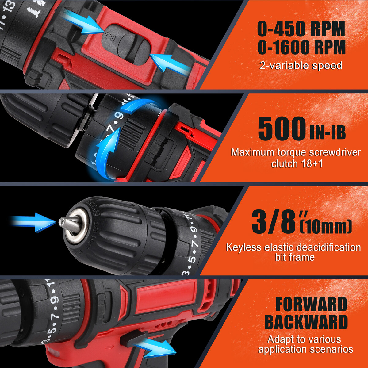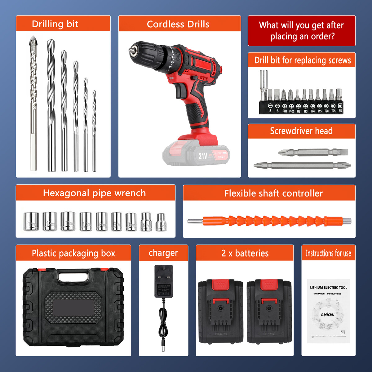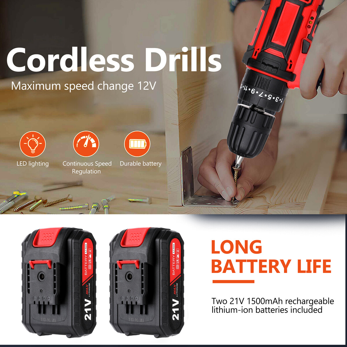 Description: < - > Convenient to carry and store the screwdriver < - > Loose and tight screw or drill bit exit one-key switch, convenient and fast. < - > There are two gears on the top of the fuselage : 1st gear (low-speed gear) 2nd gear (high-speed gear) < - > The unique design of the self-contained bit head is positive and negative, and the lock switch : The unique design of the built-in bit head is forward and reverse, locking switch. < - > High-quality precision chuck : High-quality precision chuck adopts high-quality self-locking chuck, clamping tightly, convenient and reliable for loading and unloading accessories