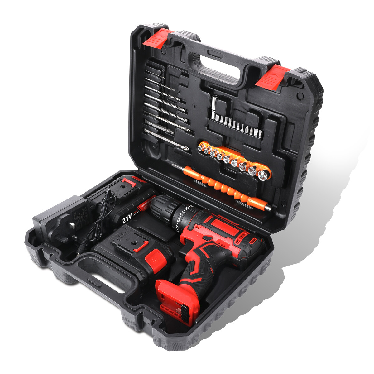 21V Cordless Hammer Drill Set Electric Impact Driver Screwdriver - 2 Battery