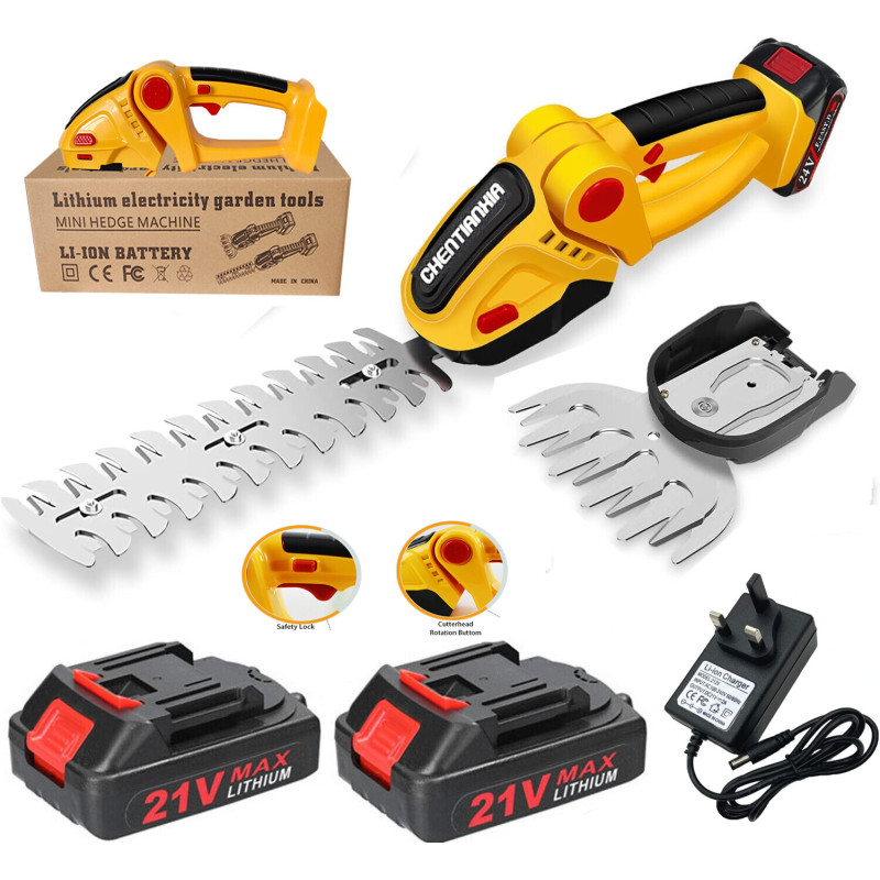 21V Cordless Hedge Trimmer 2in1 Grass Shear Shrub Branch Cutter With 2 Batteries