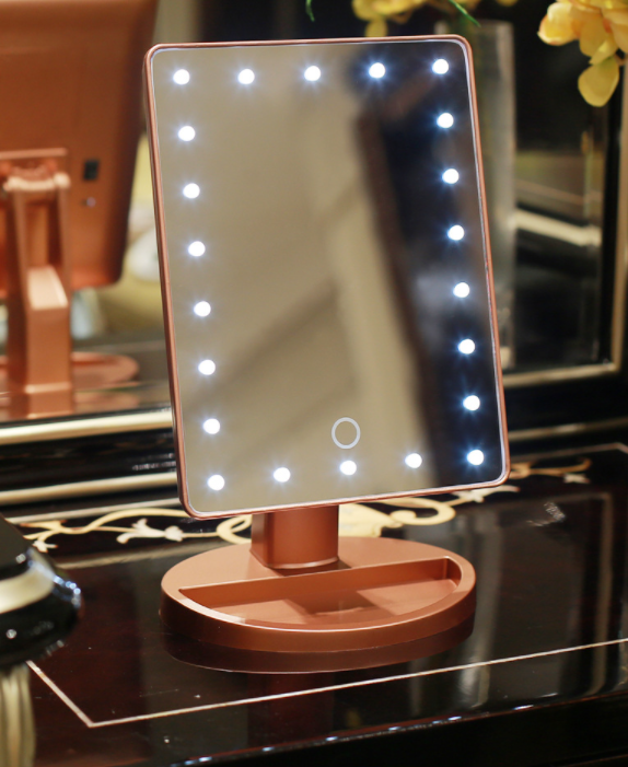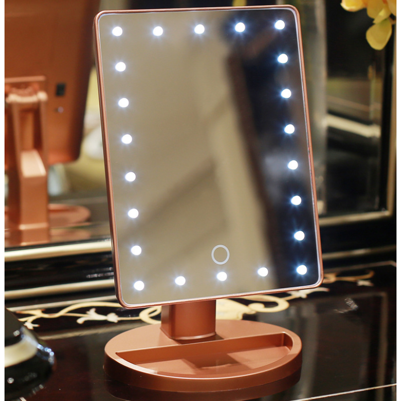 16 LED lights, can adjust the brightness. In a dark place can clearly reflect your appearance