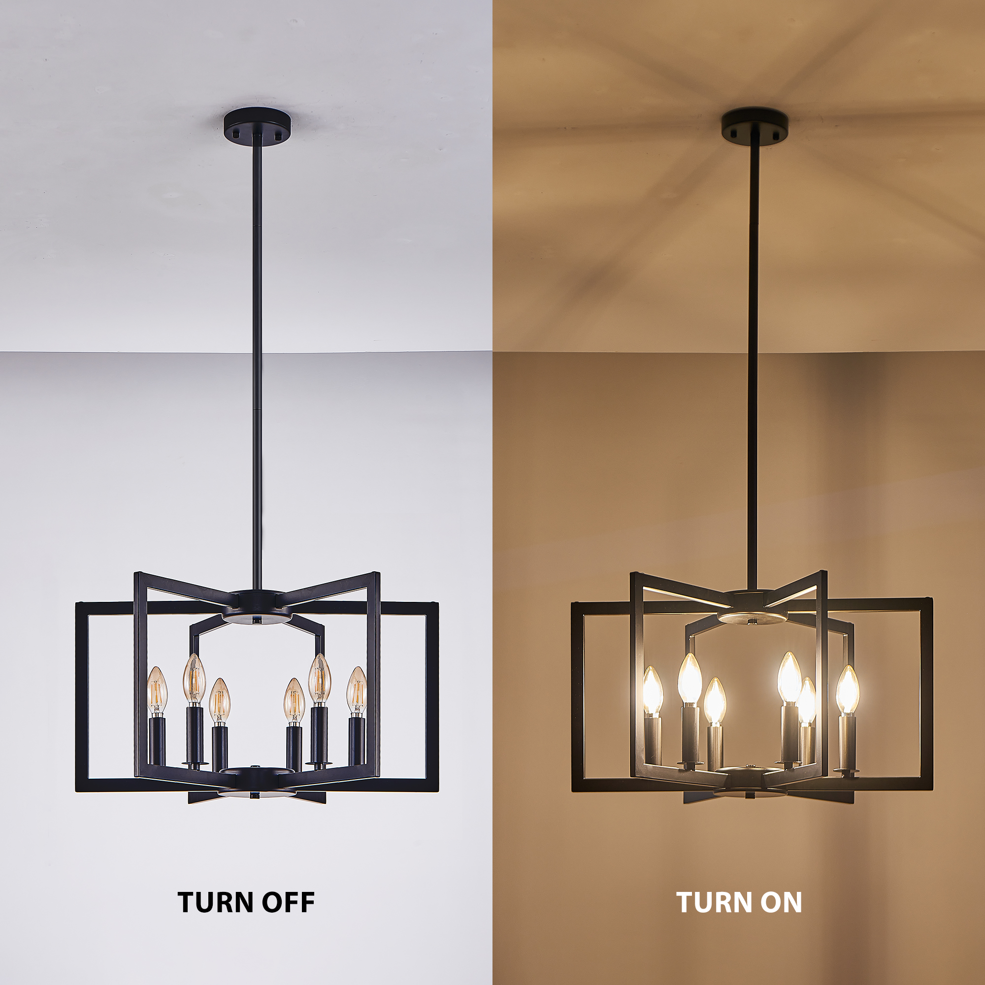 Product Name:22" Modern Black Geometric 6-Light Chandelier – Industrial Metal Pendant Light Fixture for Living Room, Dining Room, or Kitchen (Bulb Not Included)