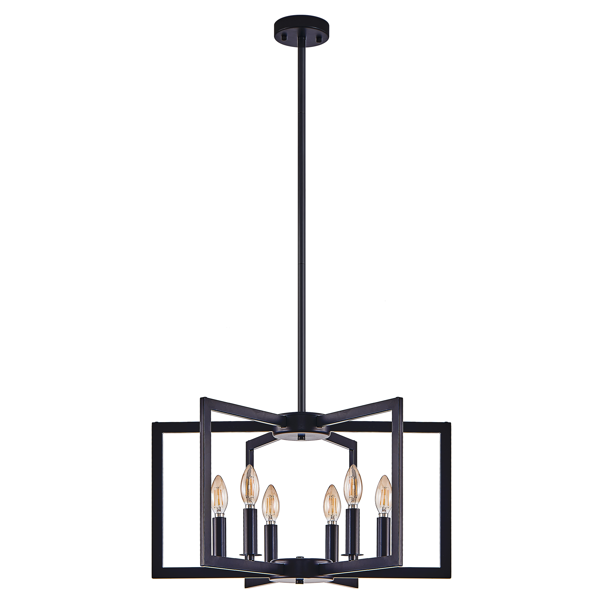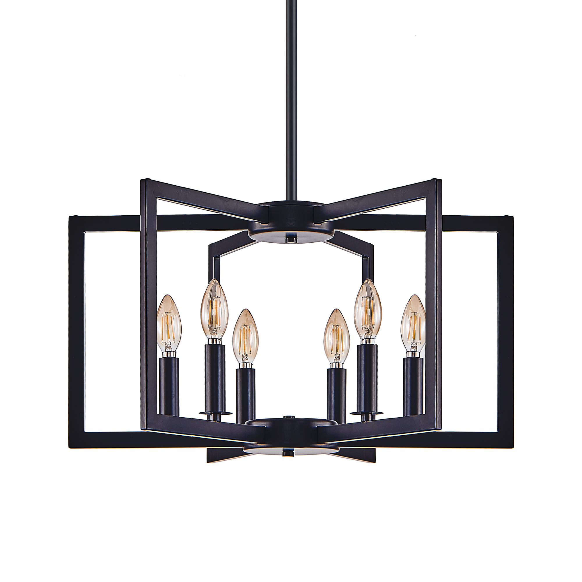 21" Modern Black Geometric 6-Light Chandelier – Industrial Metal Pendant Light Fixture