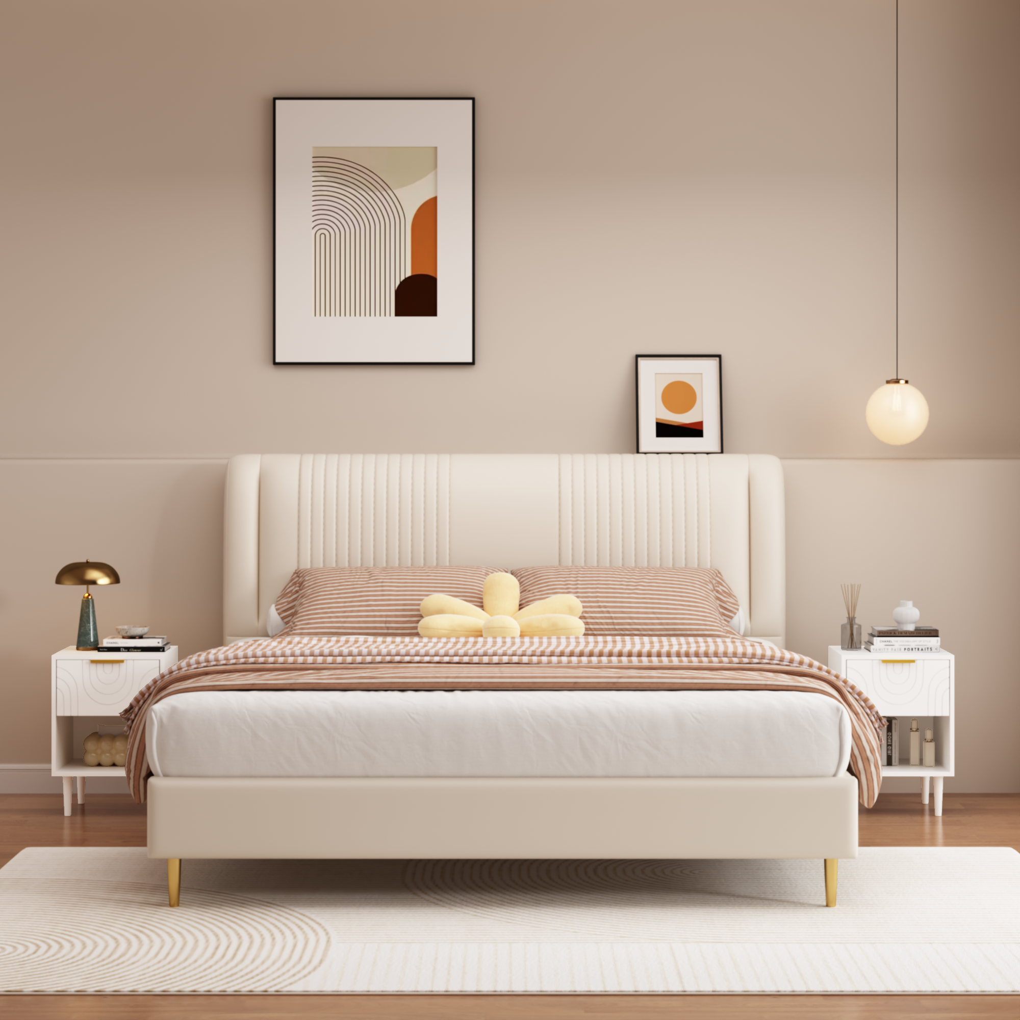 Product Name:22.83'' H Modern White Nightstand with One Drawer and Open Shelf, Gold - Accented Handle, Ideal for Bedroom Decor