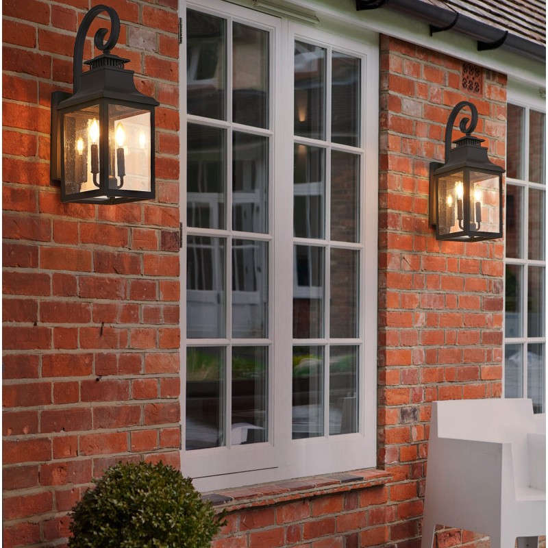 RETRO STYLE DESIGN - Black finish, reliable quality aluminum. Frosted glass panels allow the bulbs to be seen. Traditional wall light style.WIDE APPLICATION - This retro styled matte black finish post lights can be a beautiful addition to your house, porch, patio, walkway, doorway, garden, garage or any other exterior and interior places.BULB REQUIREMENT: Requires2 x E12 base 40W bulb (incandescent, LED, or CFL). Bulb not included.EASY INSTALLATION: Hard wired. This outdoor wall mount light includes all mounting hardware for quick and easy installation.