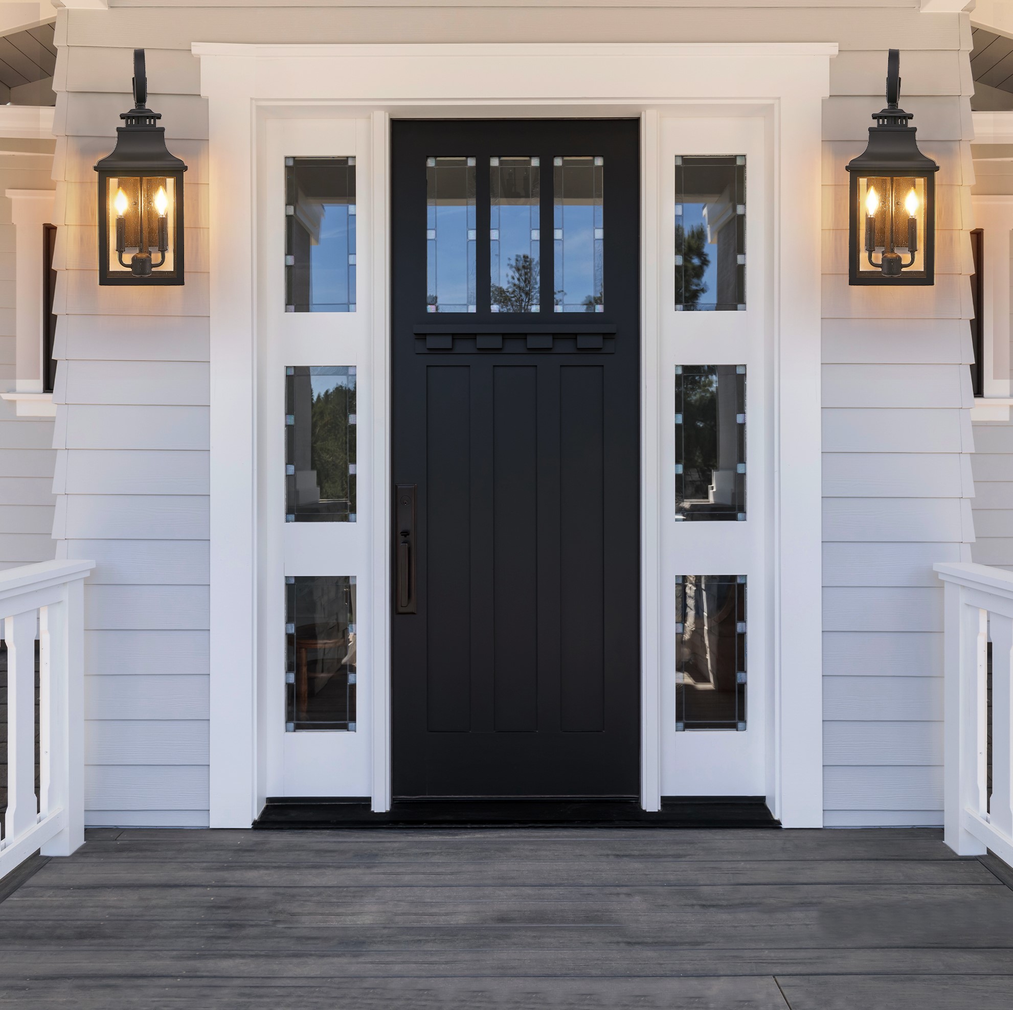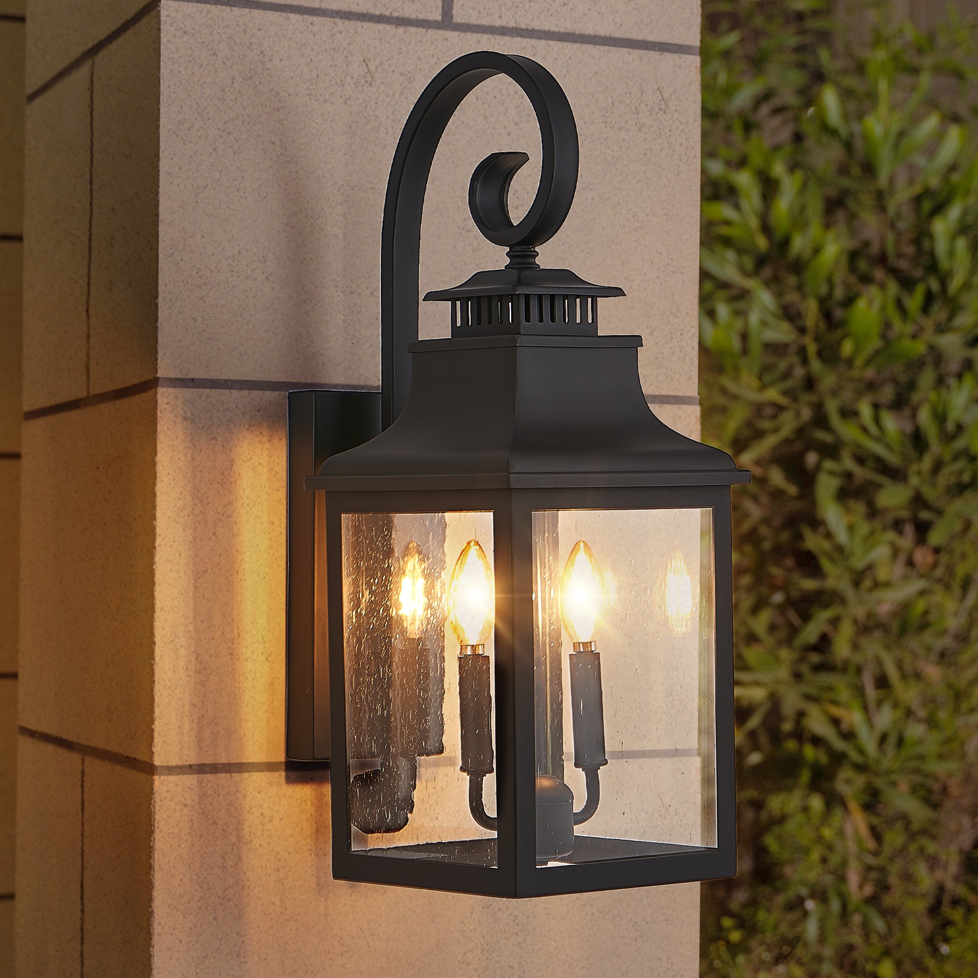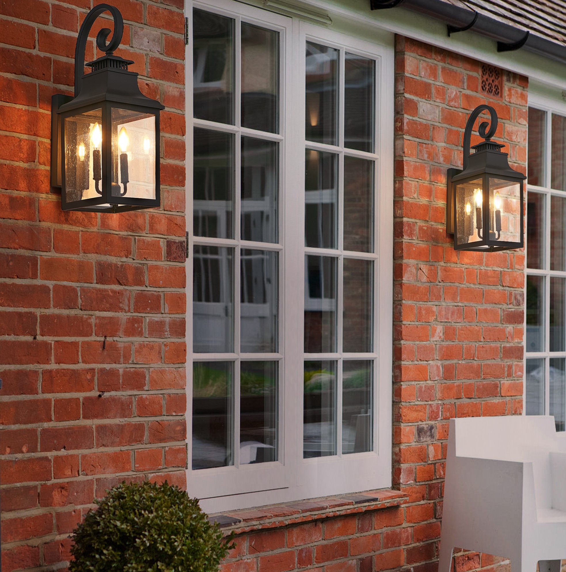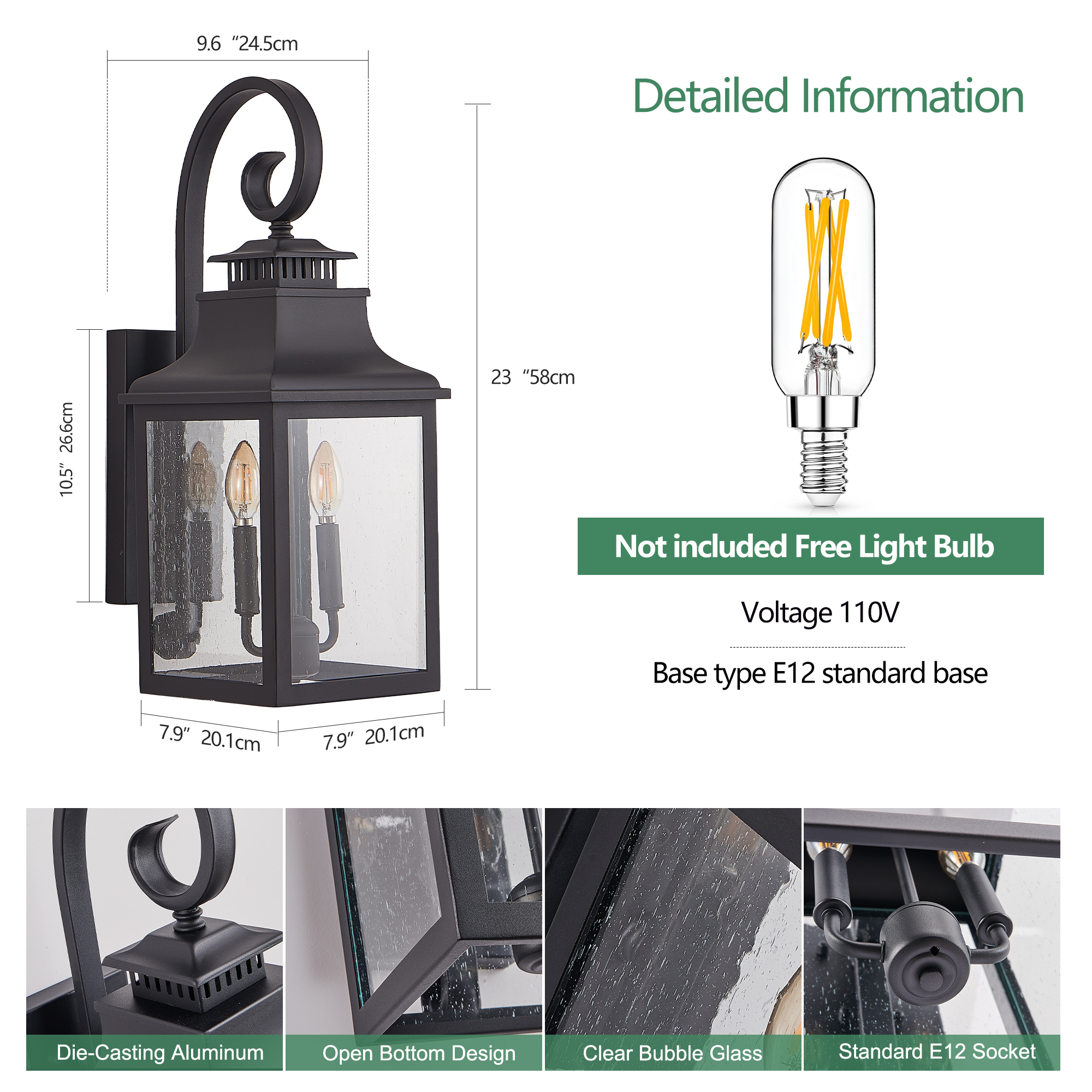 RETRO STYLE DESIGN - Black finish, reliable quality aluminum. Frosted glass panels allow the bulbs to be seen. Traditional wall light style.WIDE APPLICATION - This retro styled matte black finish post lights can be a beautiful addition to your house, porch, patio, walkway, doorway, garden, garage or any other exterior and interior places.BULB REQUIREMENT: Requires2 x E12 base 40W bulb (incandescent, LED, or CFL). Bulb not included.EASY INSTALLATION: Hard wired. This outdoor wall mount light includes all mounting hardware for quick and easy installation.