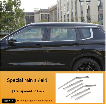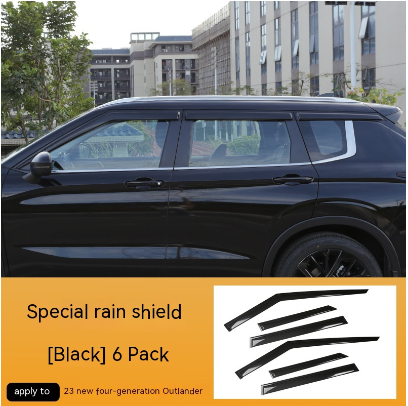 Color classification: 23 new Outlander window deflectors [6-Piece Set] Black Warrior style; 23 new Outlander window deflectors [4-piece set]; 23 new Outlander window deflectors [6-Piece Set]]; translucent 23 new Outlander window deflectors [4-piece set]; Translucent 23 new Outlander rear view mirror rain guard [one-pair package] Black Warrior; 23 new Outlander rear view mirror rain guard [one-pair package] translucent