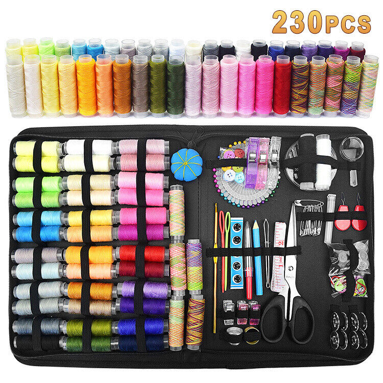 230Pc Large Portable Sewing Kit Home Travel Case Needles Thread Scissors Set Box
