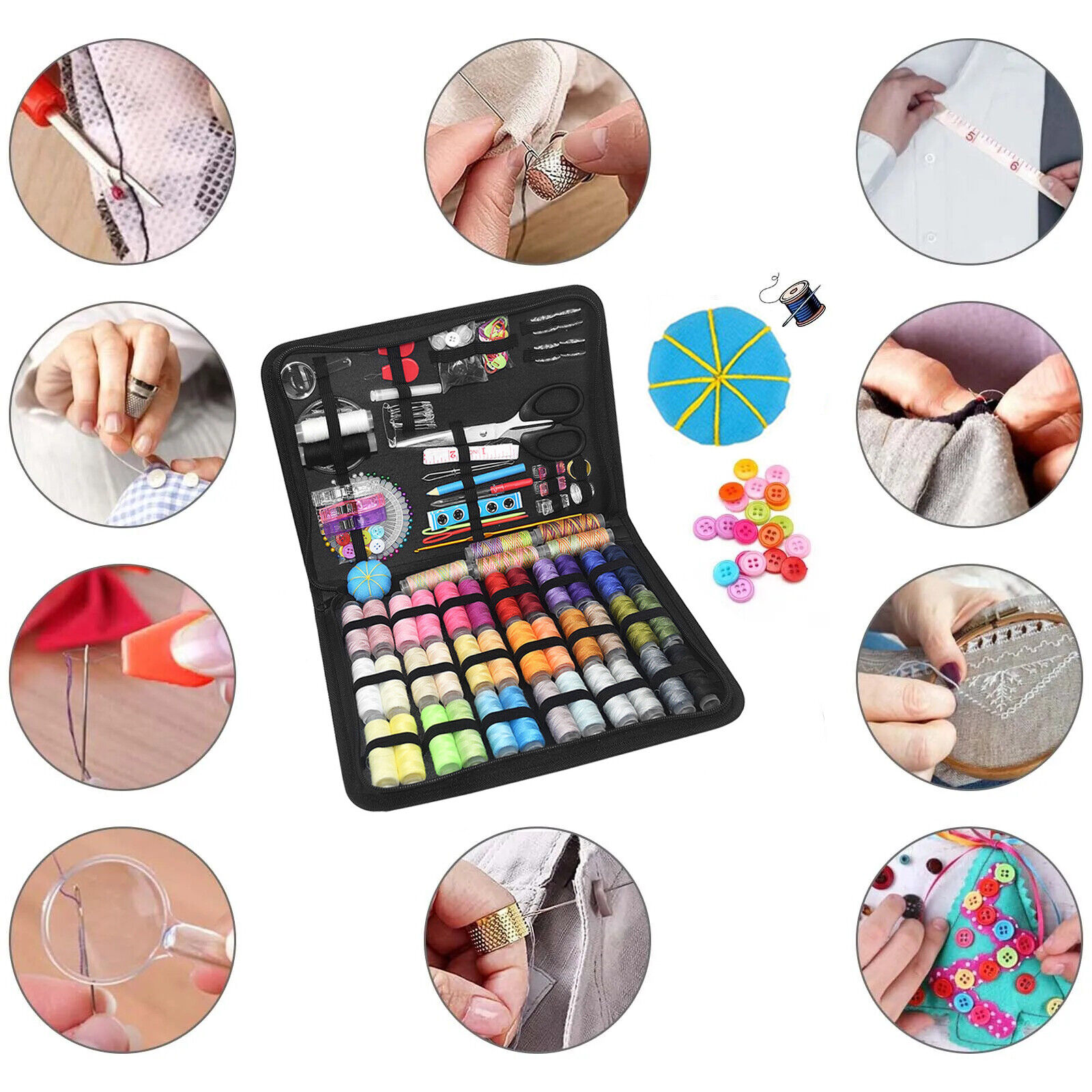 High-Quality Organizer:This organizer for the sewing accessories kit is built to last. This sewing kit contains 230 accessories ,near all the accessories you could ever need when sew and repair. Easy To Carry:All sewing accessories in a compact case,well compact makes it more easier to get and store up all the sewing requires, this ideal size can slip into suitcase, briefcase, office desk drawer, or car. You will always be prepared for any hand sewing emergencies. Perfect Gift:This sewing kit makes an amazing gift for Mother's Day, Children's day and Christmas, and is convenient for frequent travelers, mothers, grandmothers, backpackers and young girls! The sewing kit is good for women, and is definitely something that people love to use regardless of the season.It is also a great helper for DIY lovers and basic home repairing, suitable for beginners and professionals.