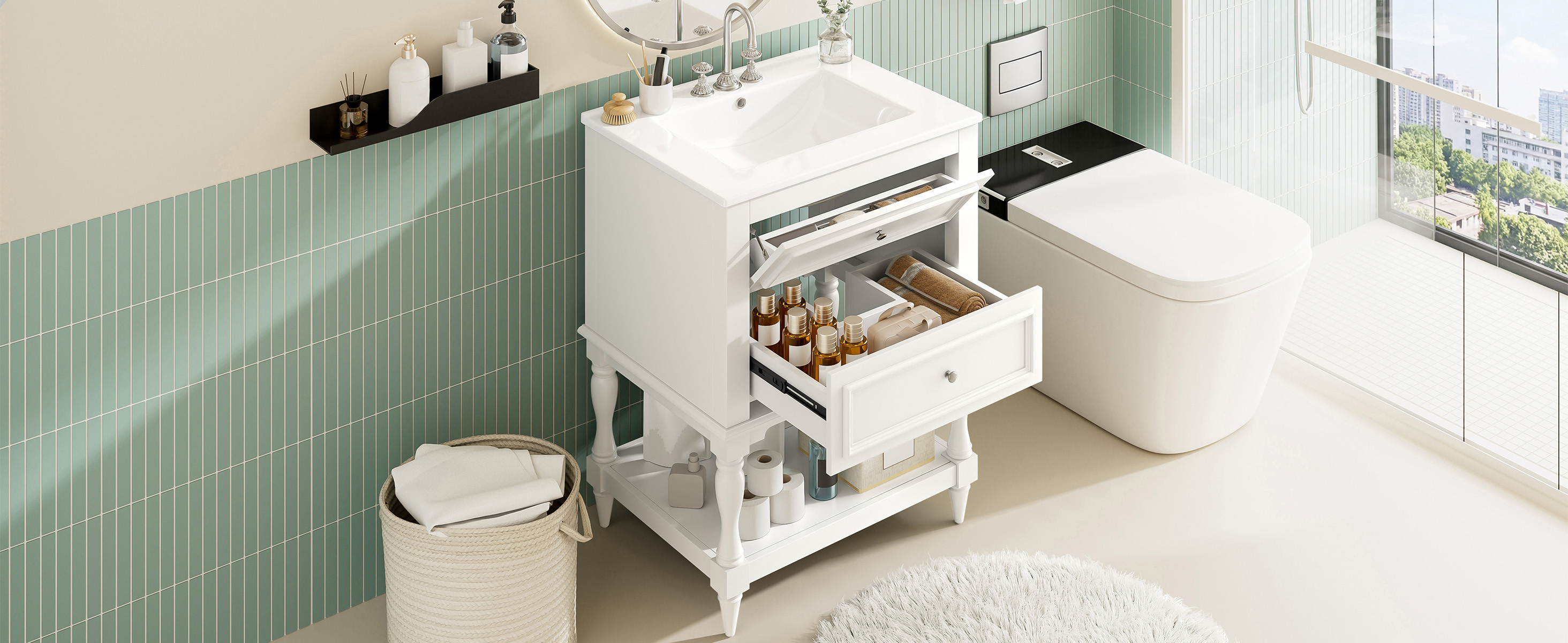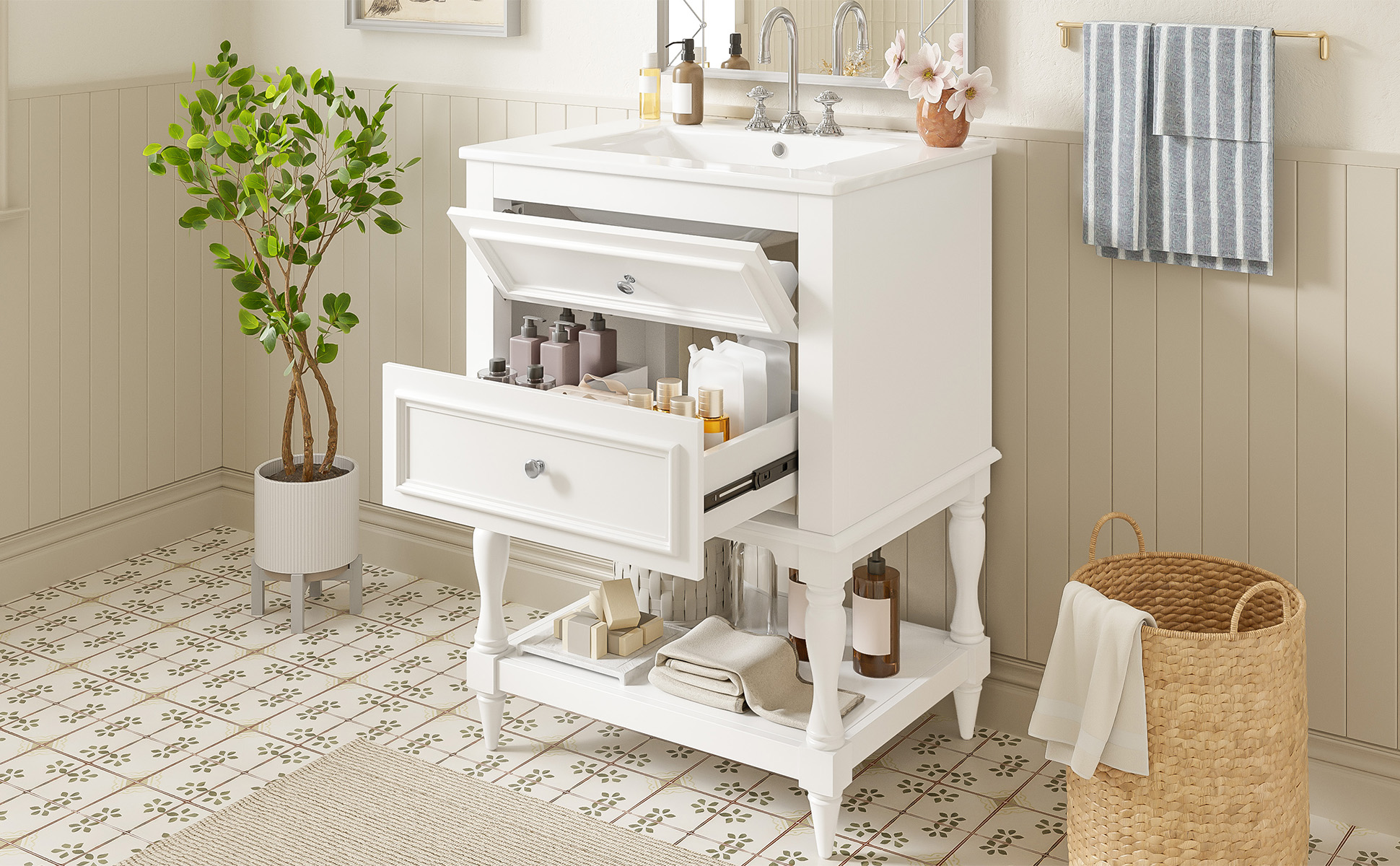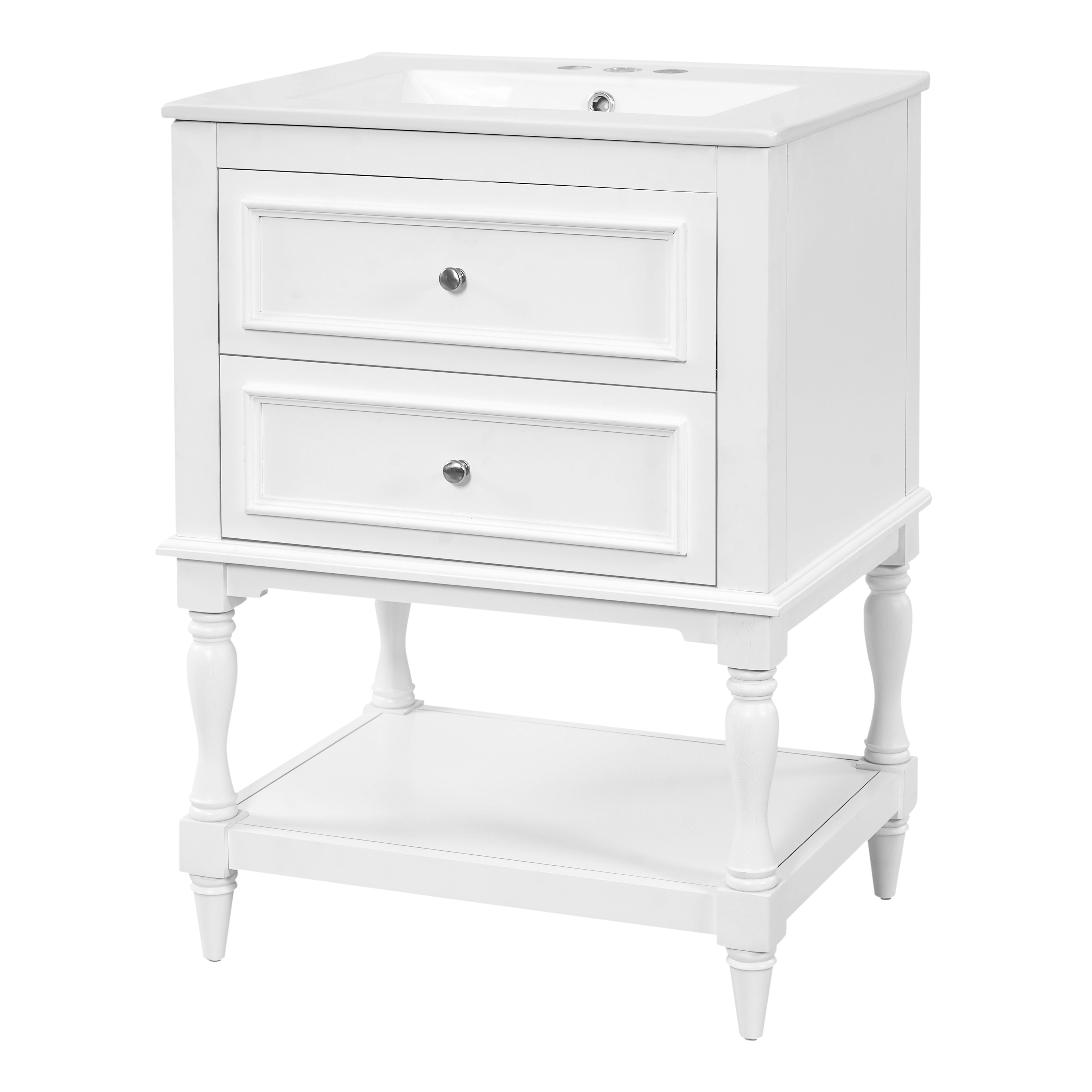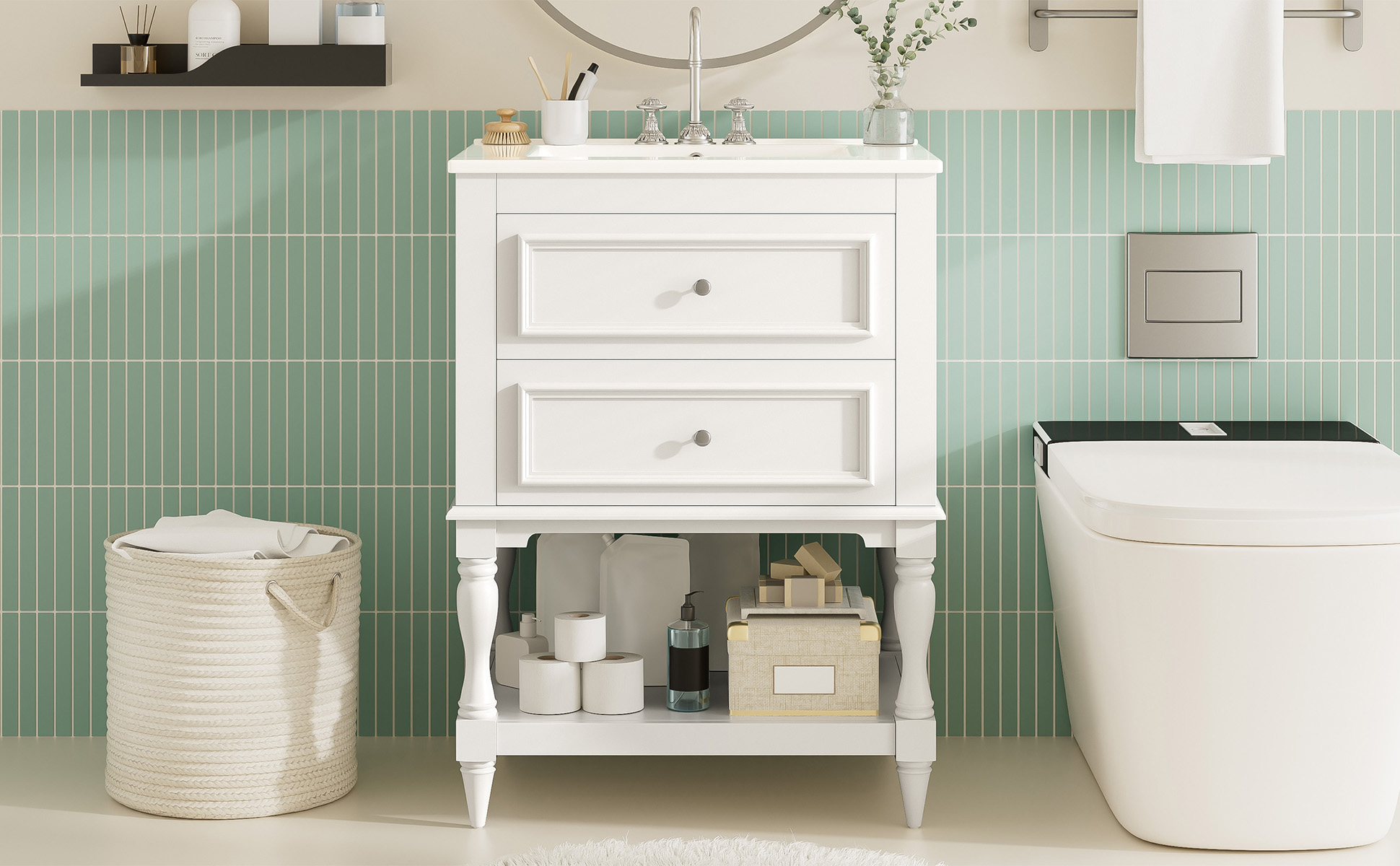 Product Name:24'' Bathroom Vanity with Ceramic Sink, Bathroom Storage Cabinet with Open Shelf , Retro Design Bathroom Cabinet with 2 Drawers