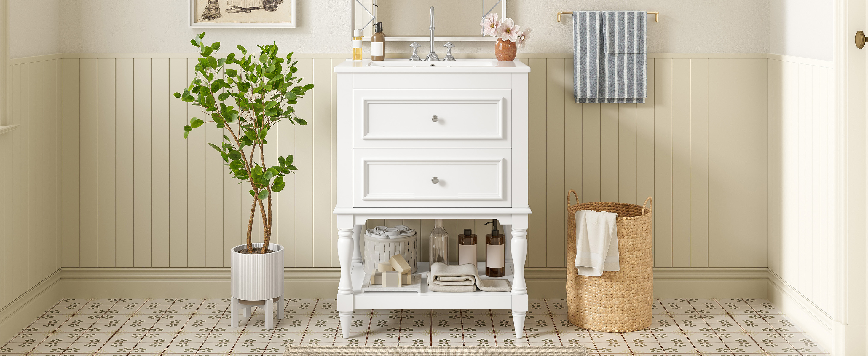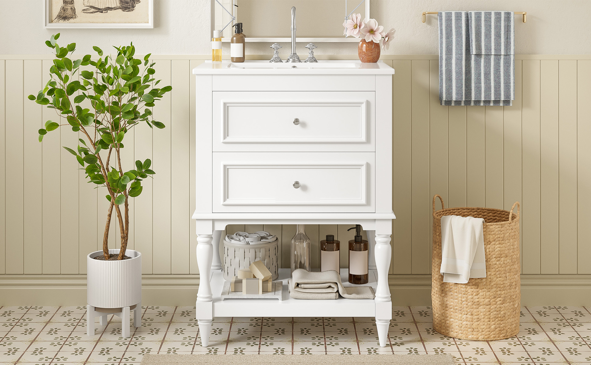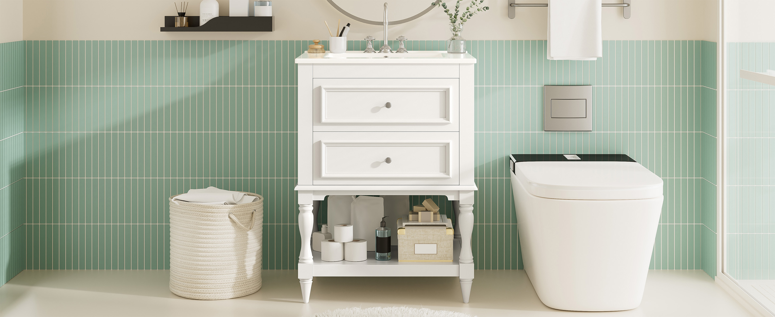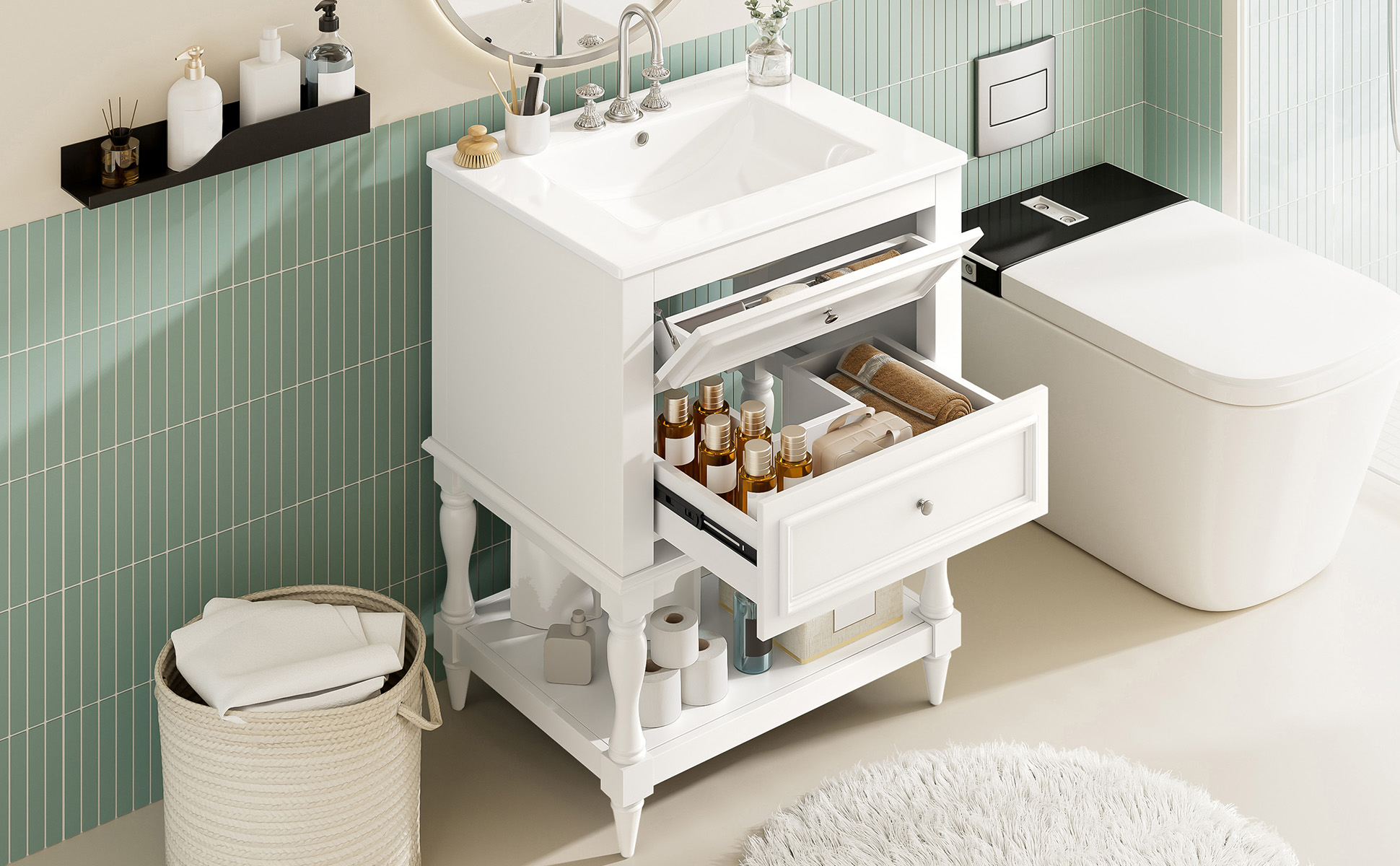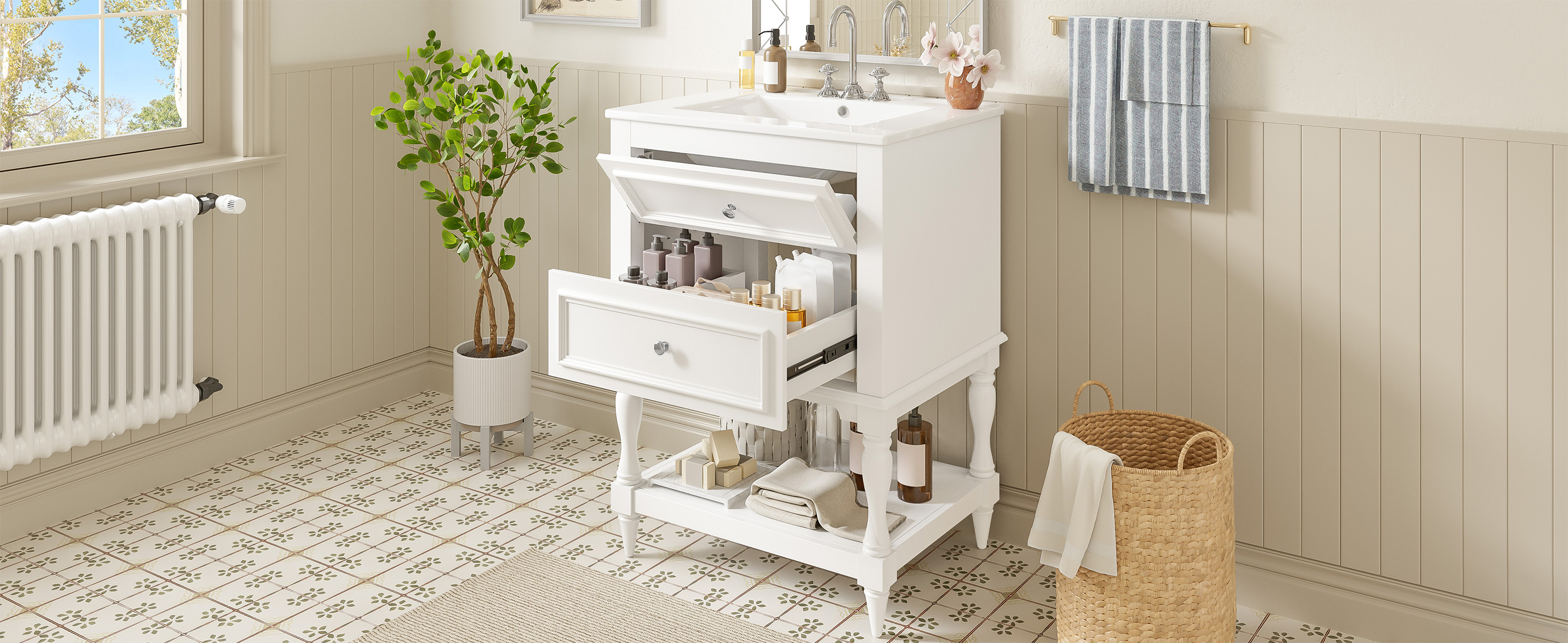 Product Name:24'' Bathroom Vanity with Ceramic Sink, Bathroom Storage Cabinet with Open Shelf , Retro Design Bathroom Cabinet with 2 Drawers