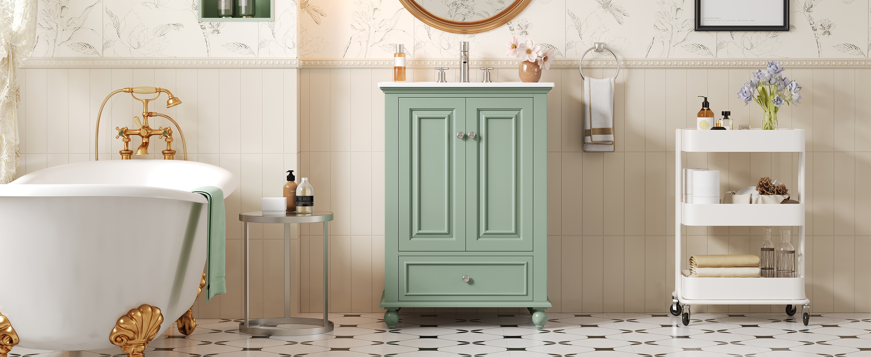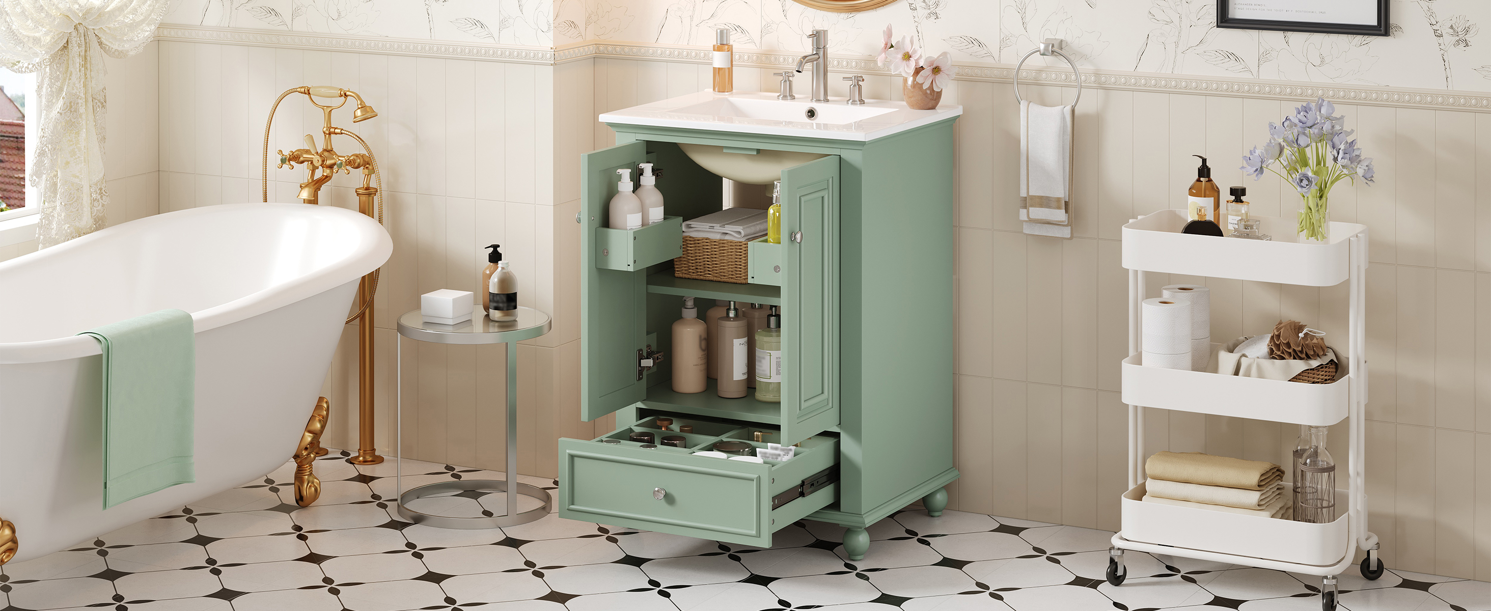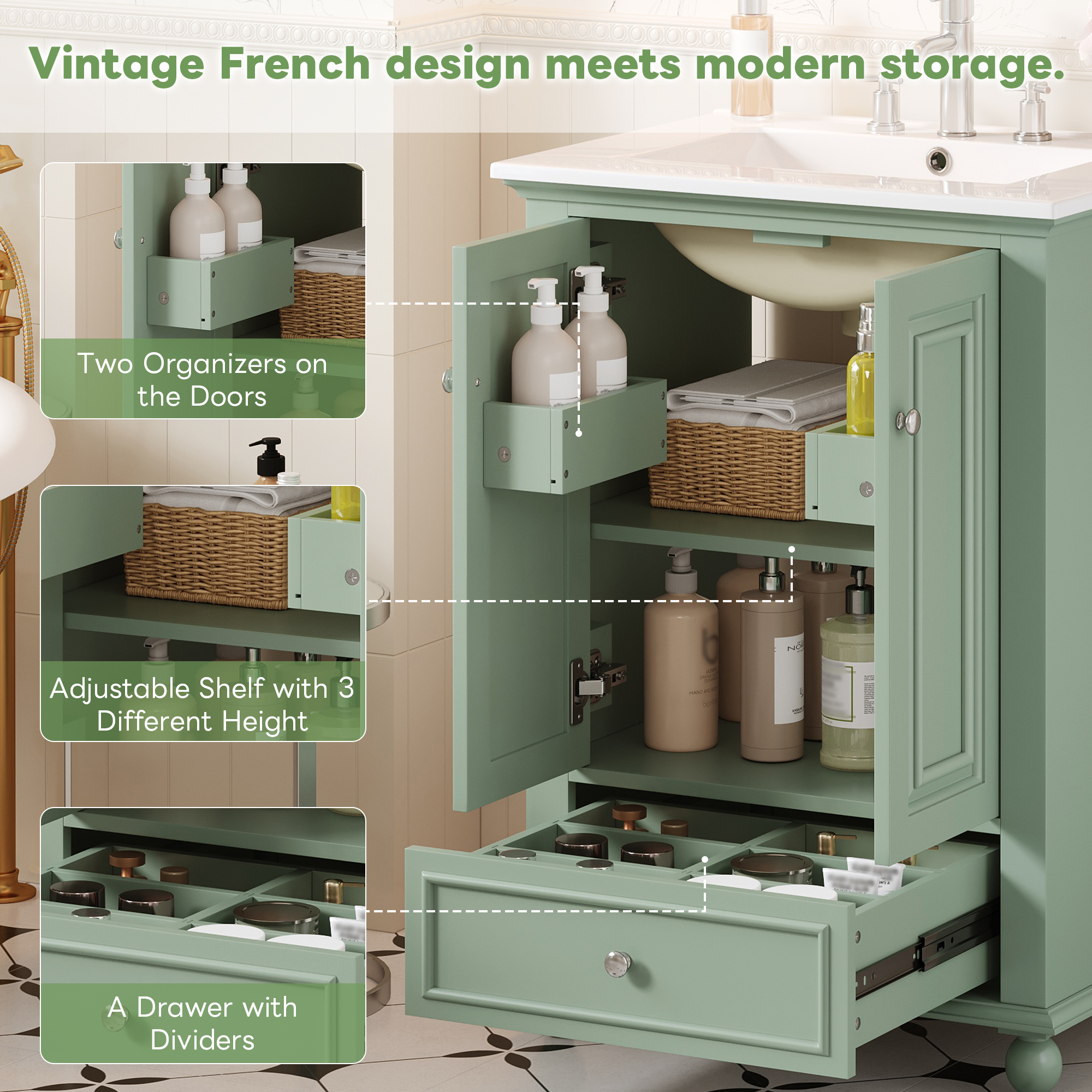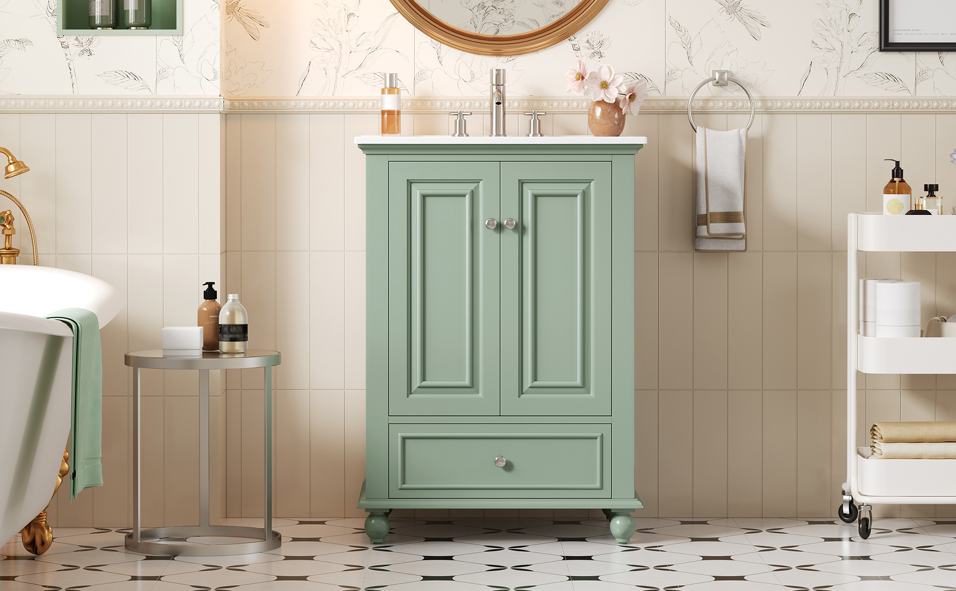 Product Name:24'' Bathroom Vanity with Ceramic Sink, Bathroom Storage Cabinet with Soft Closing Doors, Bathroom Cabinet with Drawer and Drawer Dividers
