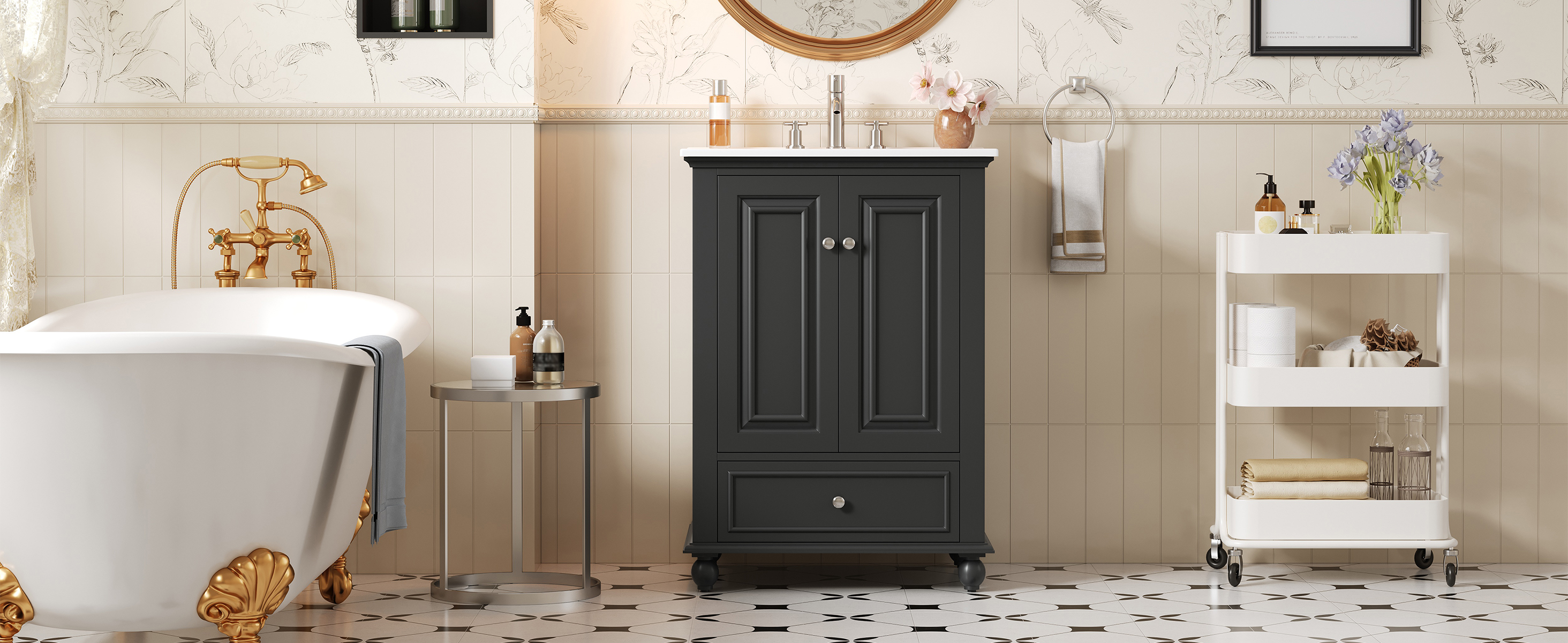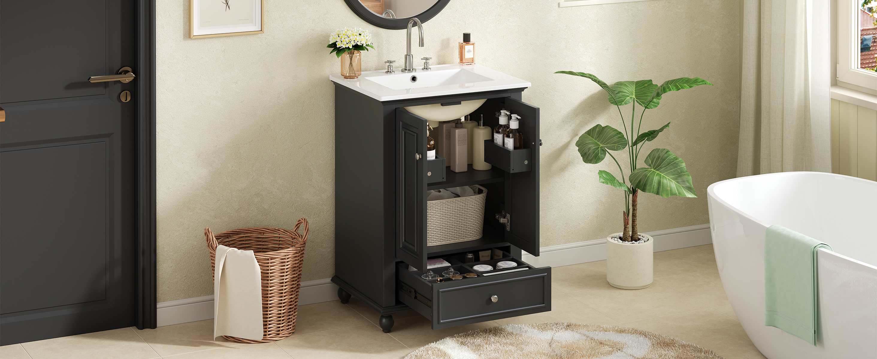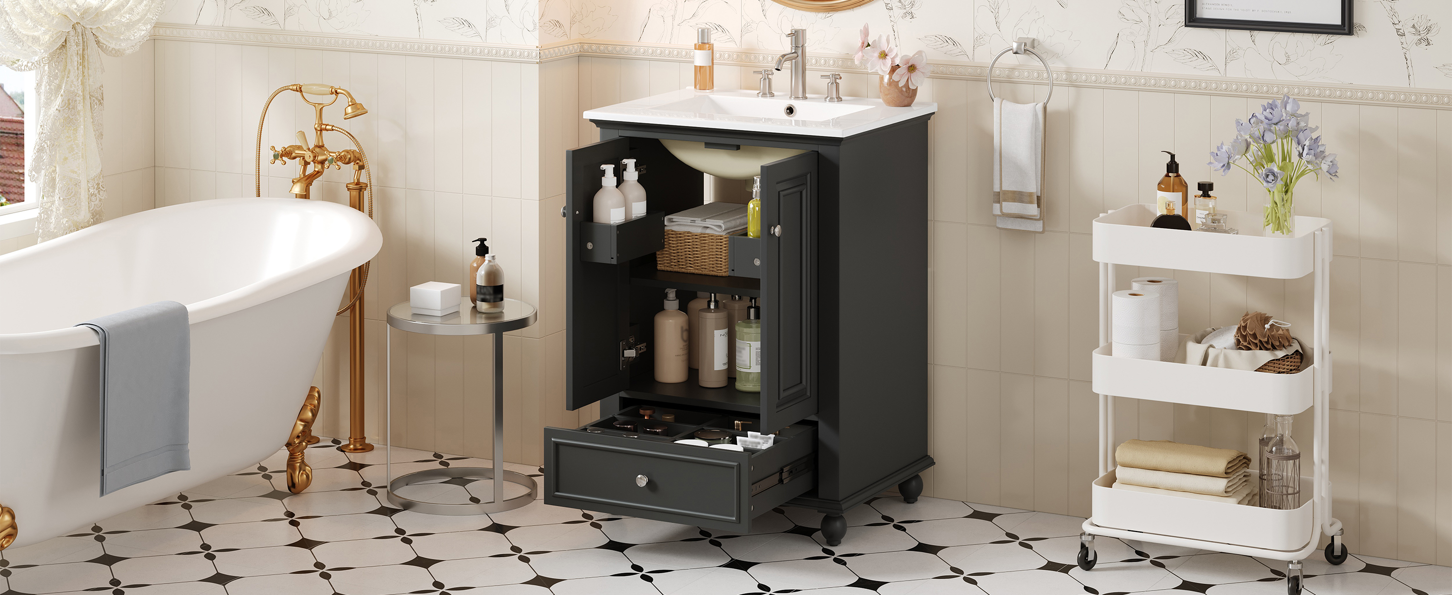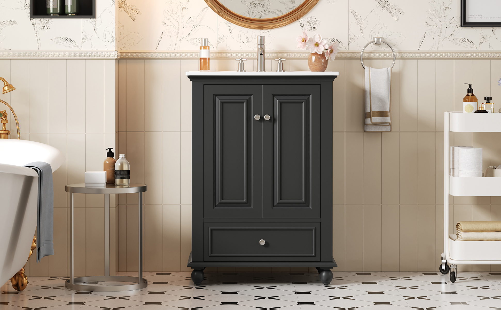 Product Name:24'' Bathroom Vanity with Ceramic Sink, Bathroom Storage Cabinet with Soft Closing Doors, Bathroom Cabinet with Drawer and Drawer Dividers