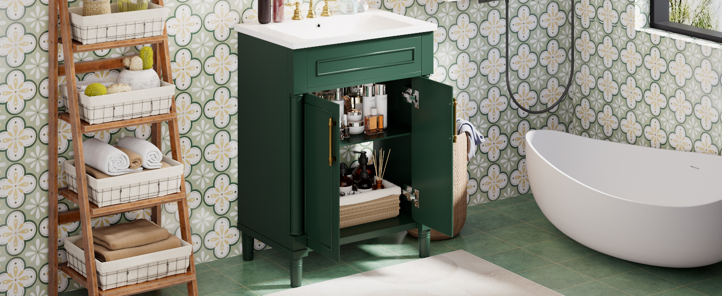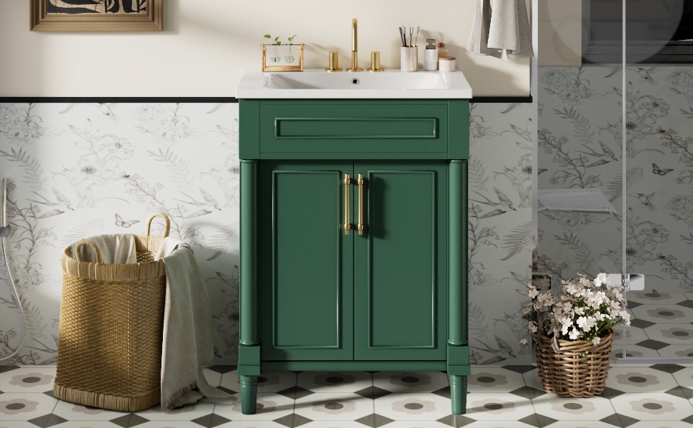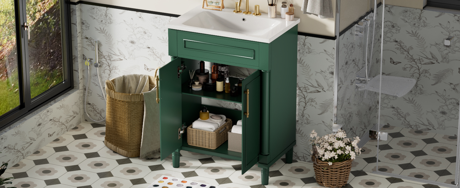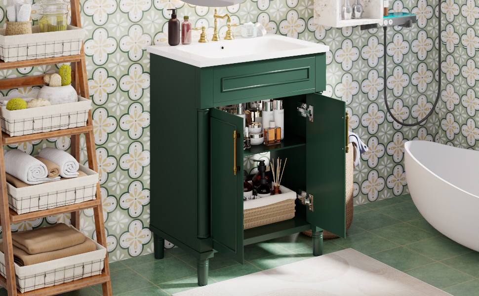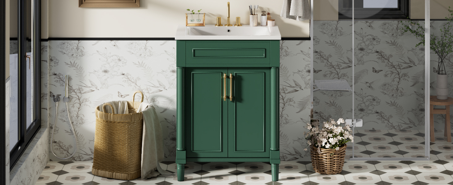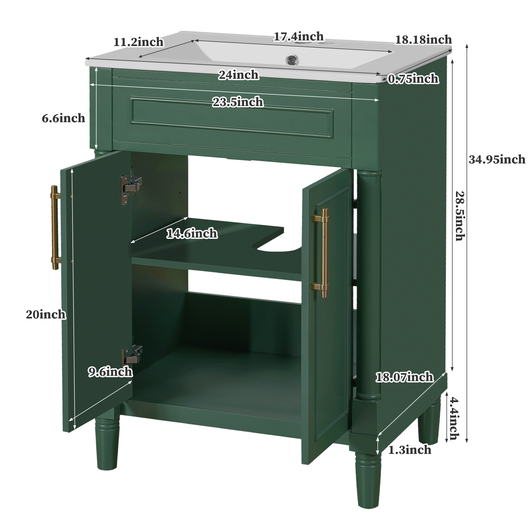 Product Name:24" Bathroom Vanity with Integrated Ceramic Sink, Bathroom Cabinet with 2 Doors, Single Sink Bathroom Vanity for Small and Medium Restroom