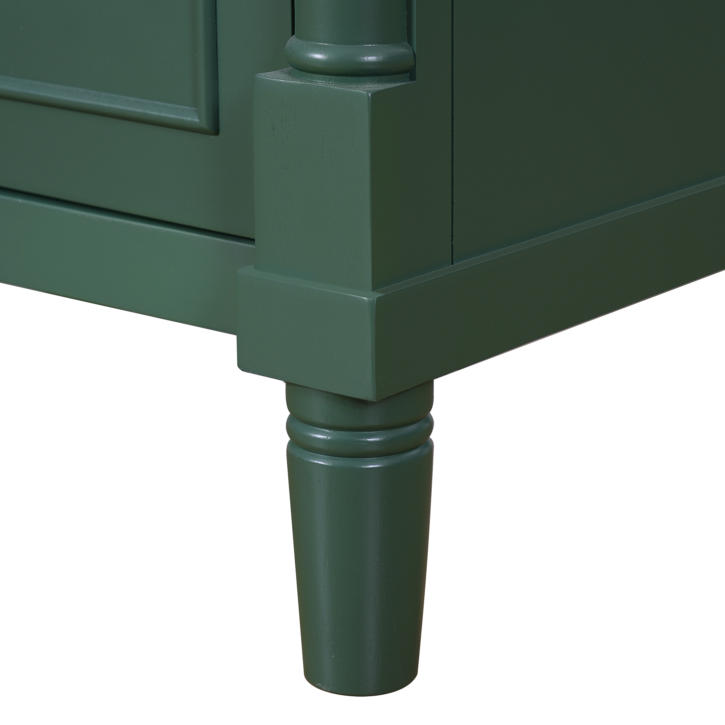 This elegant bathroom vanity combines smart functionality with timeless design. It features a spacious storage cabinet with an adjustable shelf and vintage-style hardware for flexible organization. The graceful half-moon sink basin offers both visual appeal and practicality, designed to fit standard 4-inch faucets (not included) with convenient pre-drilled plumbing access. Easy to assemble with clearly labeled components and included hardware, this compact vanity delivers both style and convenience, making it perfect for small spaces while complementing various bathroom décors.