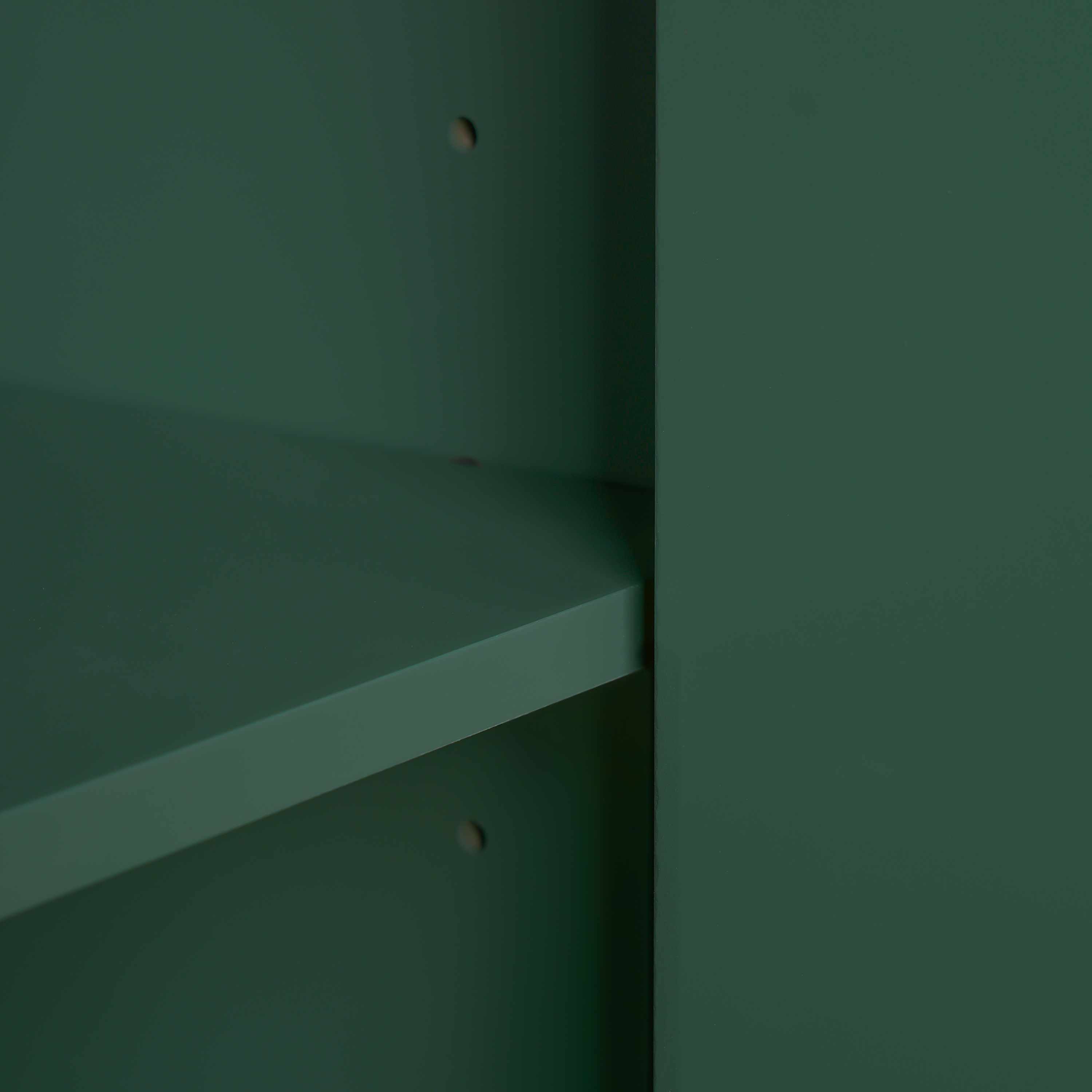Offers spacious storage with a customizable shelf to organize essentials, paired with premium hardware for a touch of refined elegance.