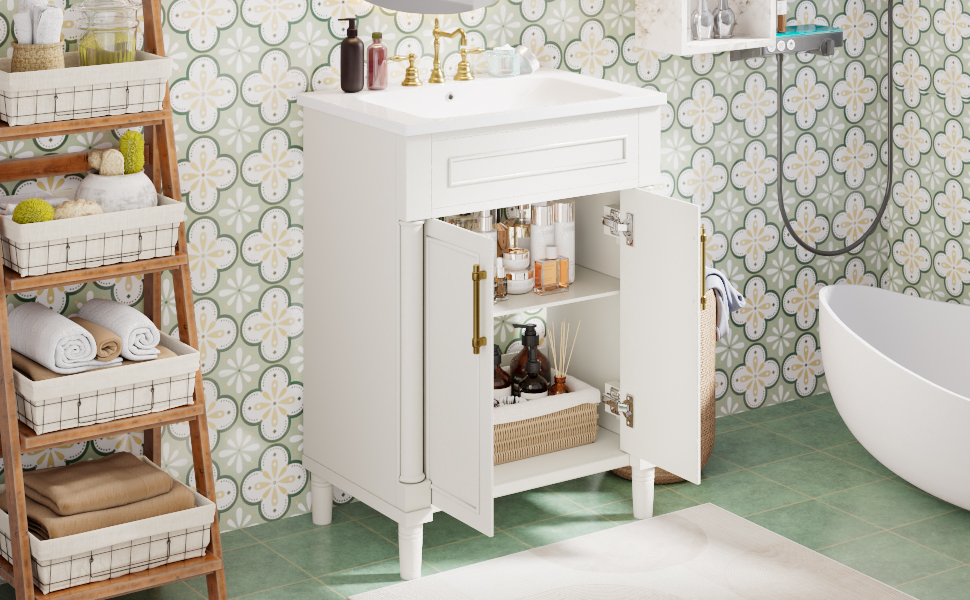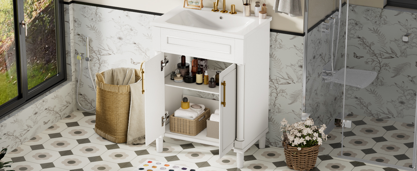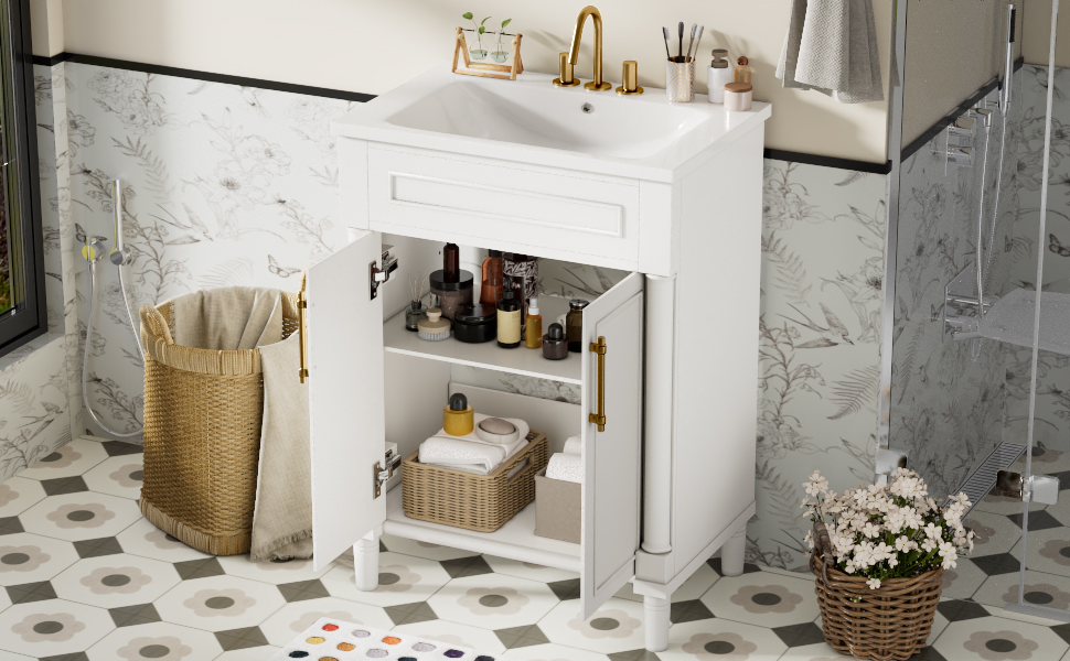 Product Name:24" Bathroom Vanity with Integrated Ceramic Sink, Bathroom Cabinet with 2 Doors, Single Sink Bathroom Vanity for Small and Medium Restroom
