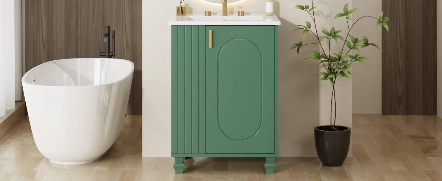 Product Name:24" Bathroom Vanity with Sink, Bathroom Cabinet with Door Shelf, Side Open Storage, Solid Wood Frame,Soft Closing Door, Green