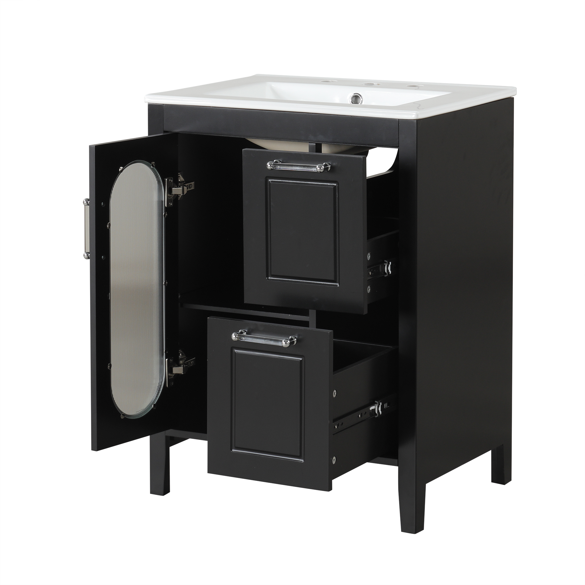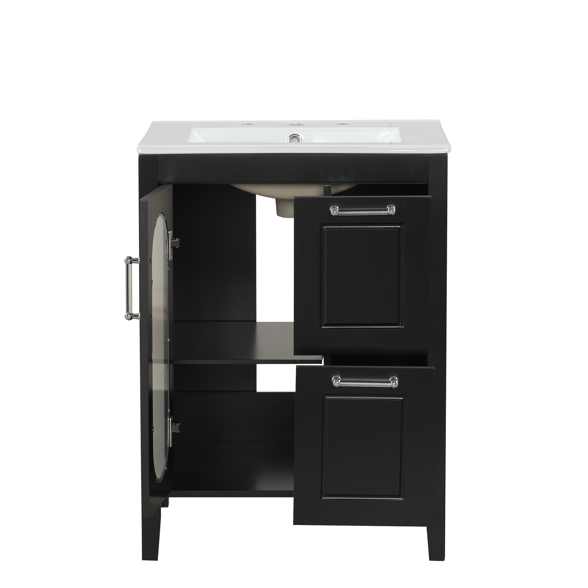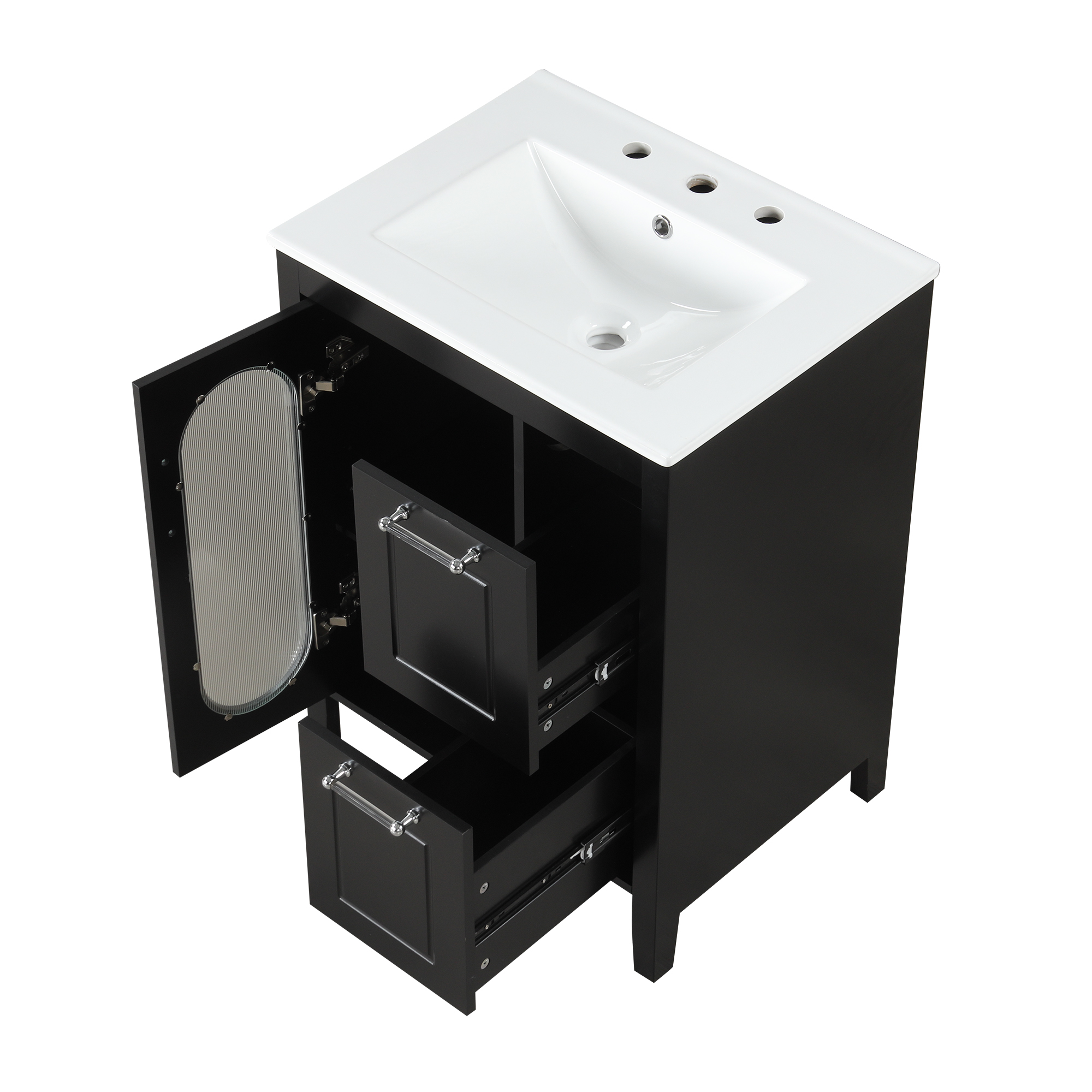 Product Name:24" Bathroom Vanity with Sink, Bathroom Vanity Cabinet with Two Drawers and Door, Adjustable Shelf, Solid Wood and MDF, Black(Old SKU:N725P245273B)