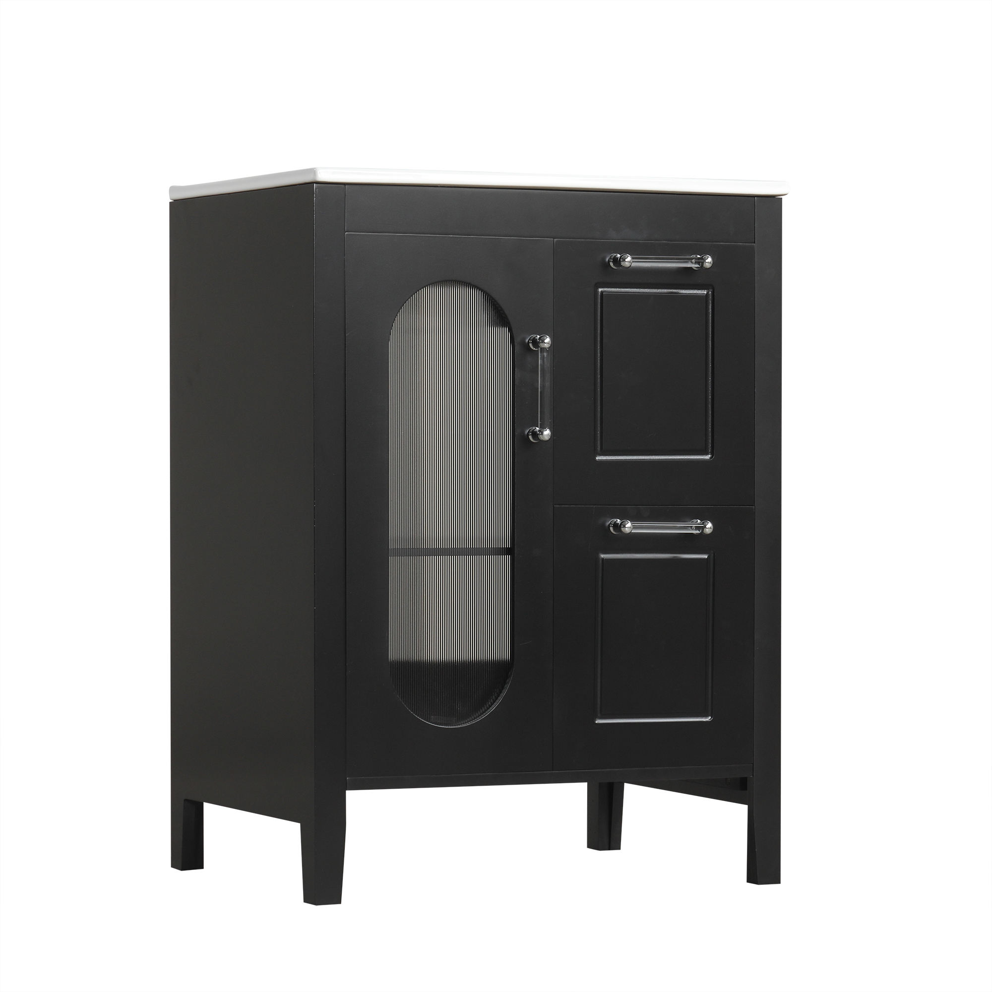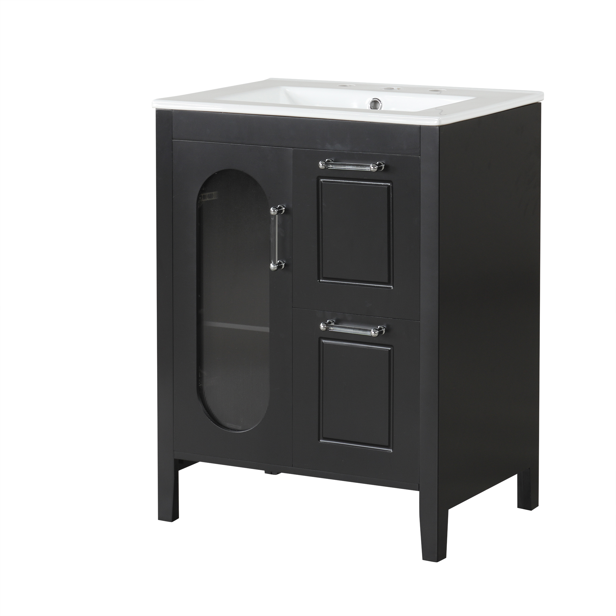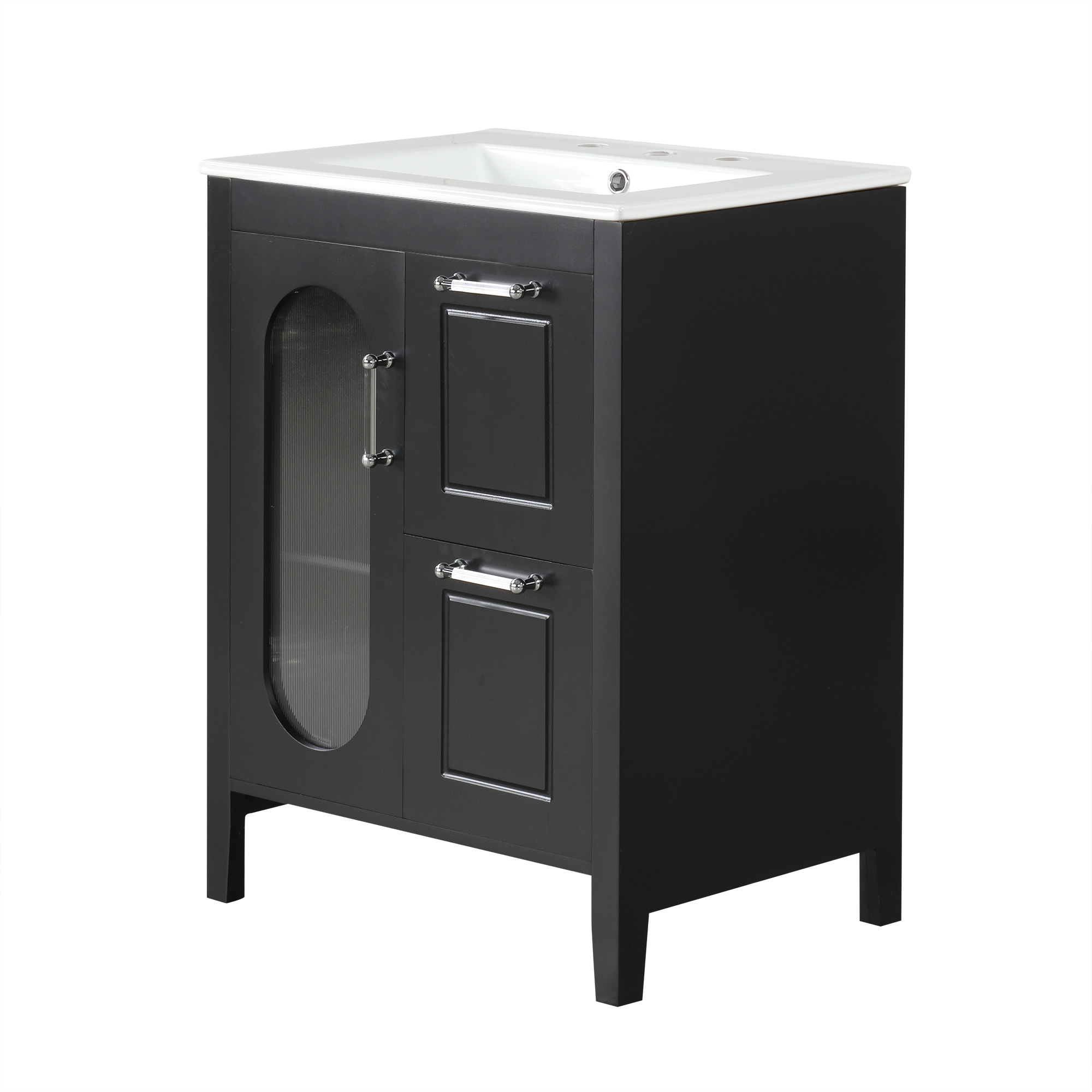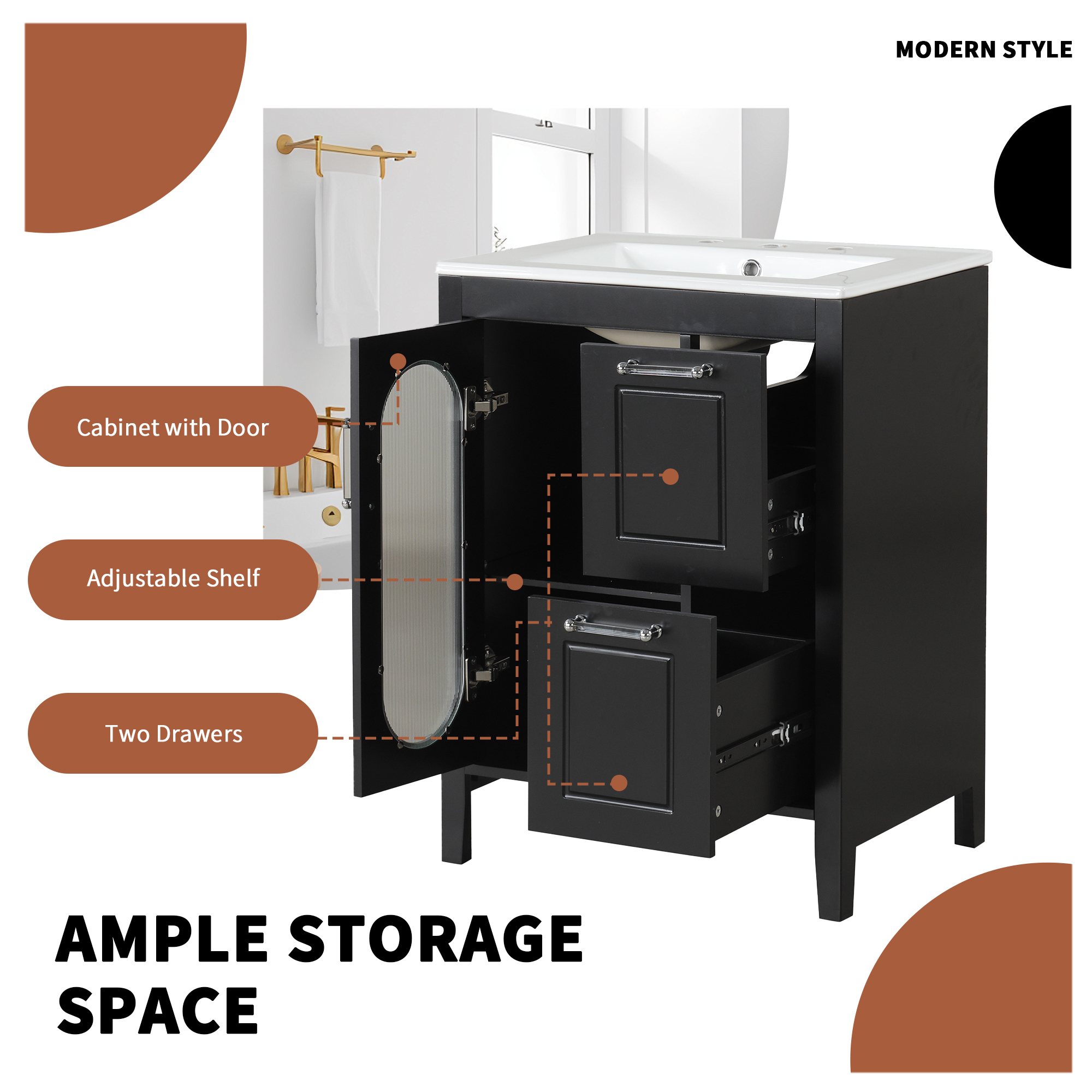 Product Name:24" Bathroom Vanity with Sink, Bathroom Vanity Cabinet with Two Drawers and Door, Adjustable Shelf, Solid Wood and MDF, Black(Old SKU:N725P245273B)