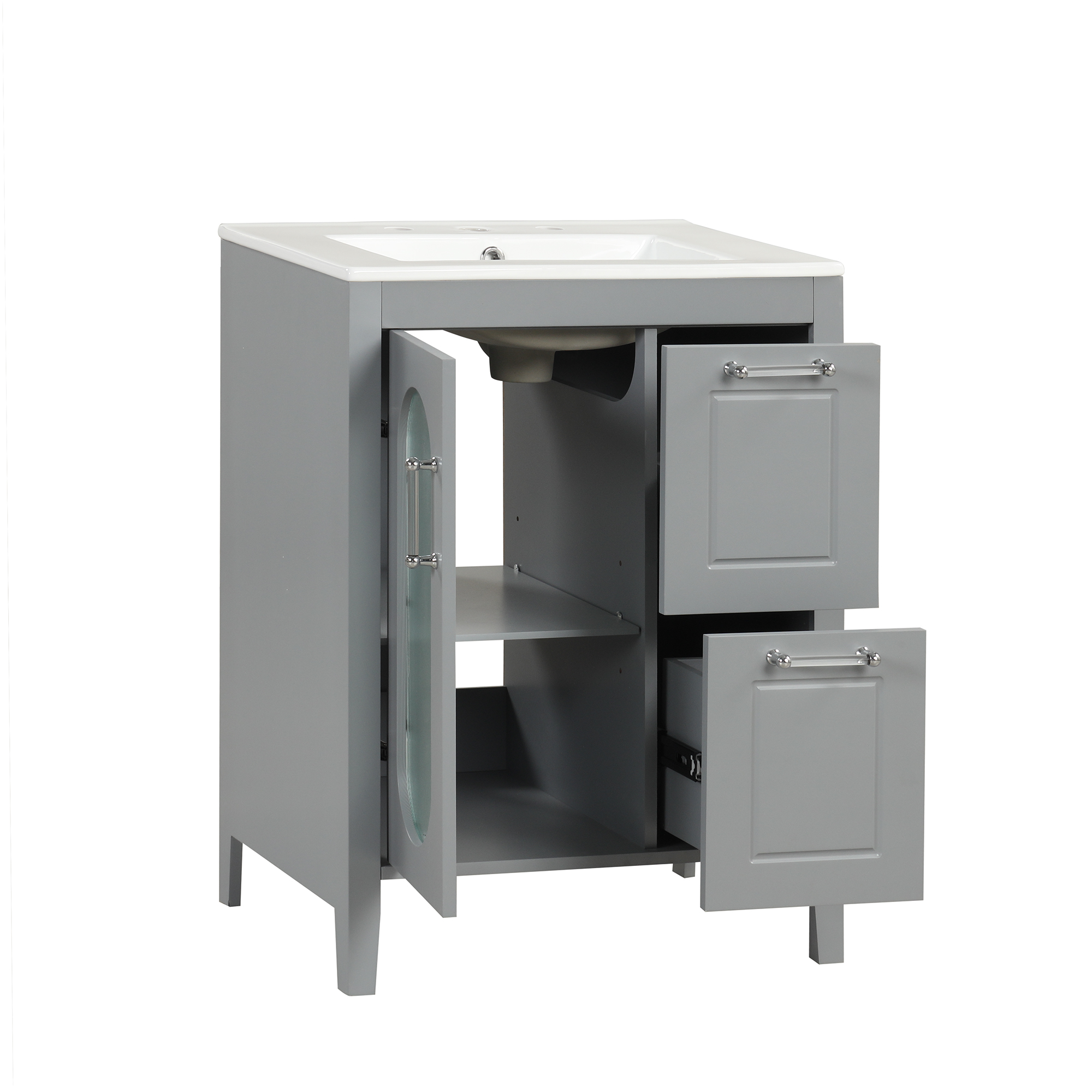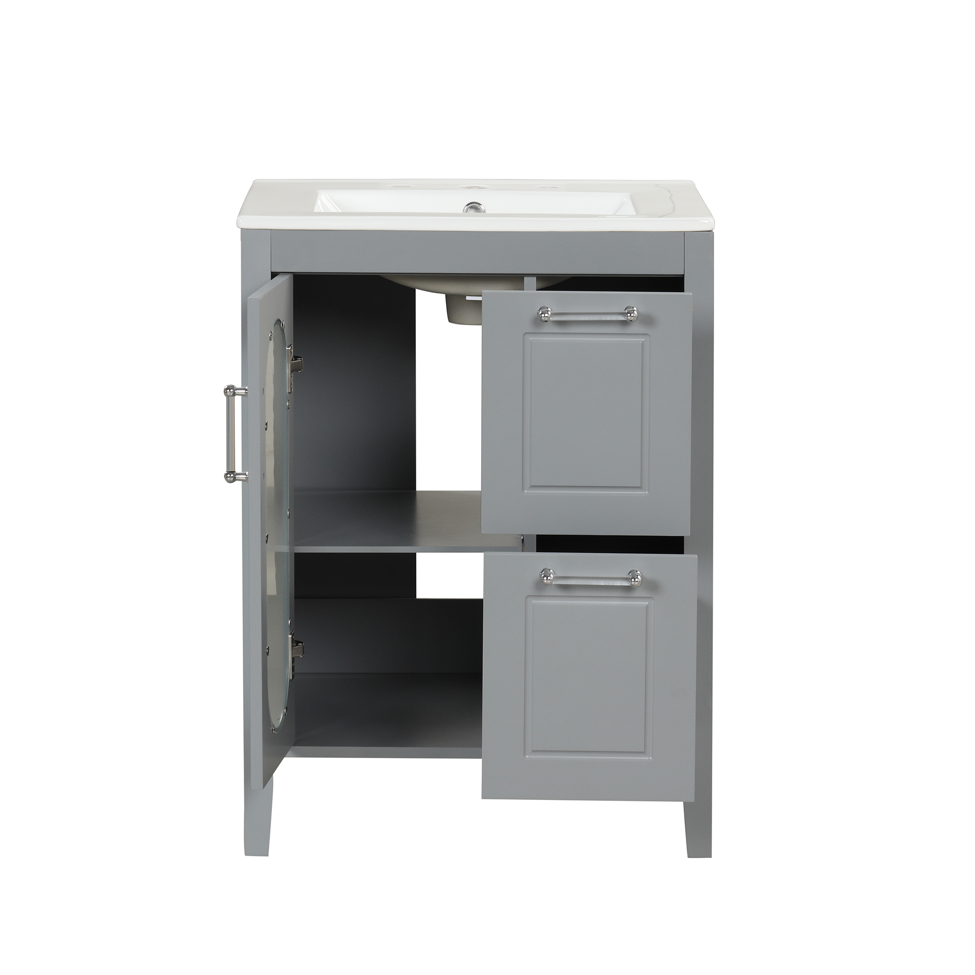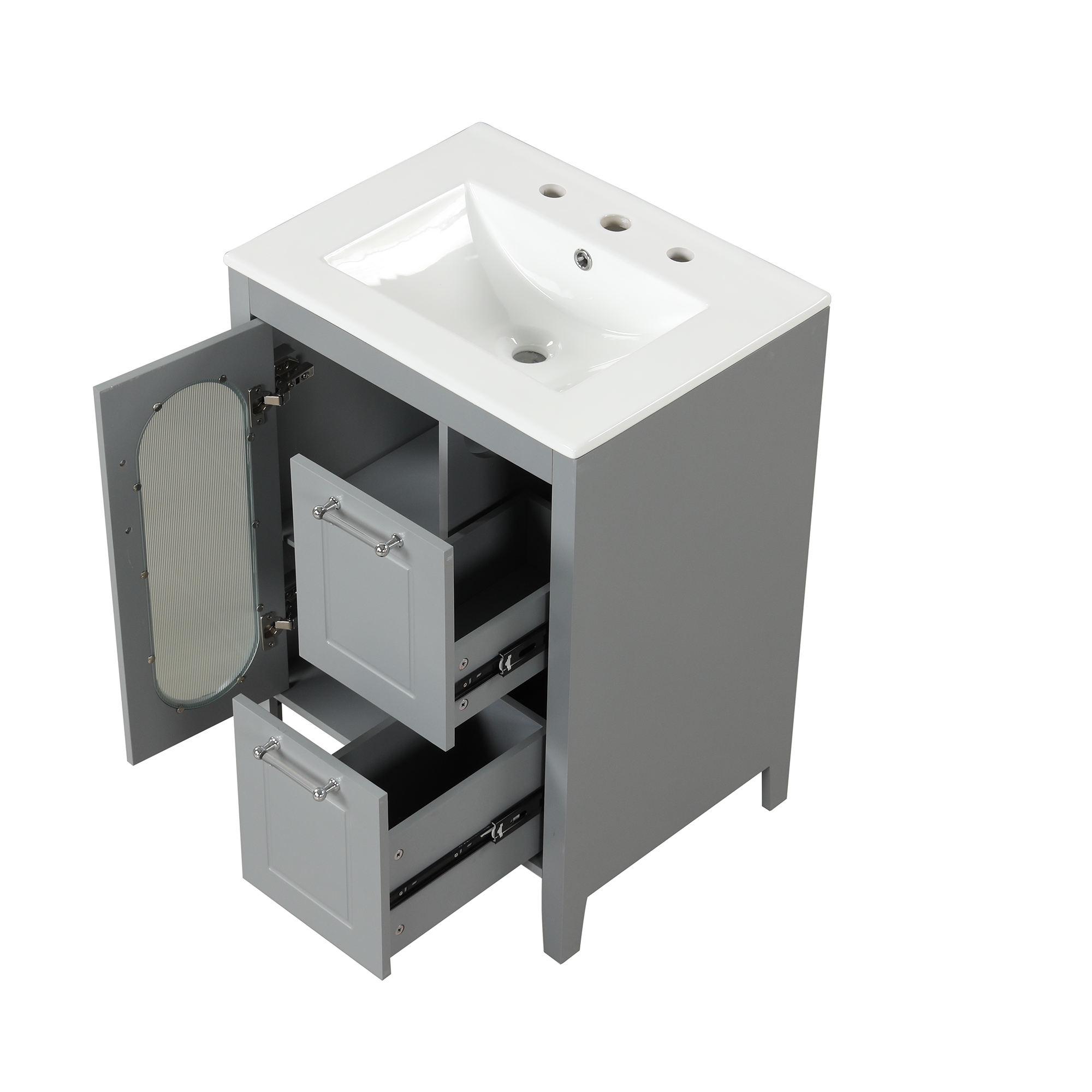 Product Name:24" Bathroom Vanity with Sink, Bathroom Vanity Cabinet with Two Drawers and Door, Adjustable Shelf, Solid Wood and MDF, Grey (Old Sku:N725P245273E)