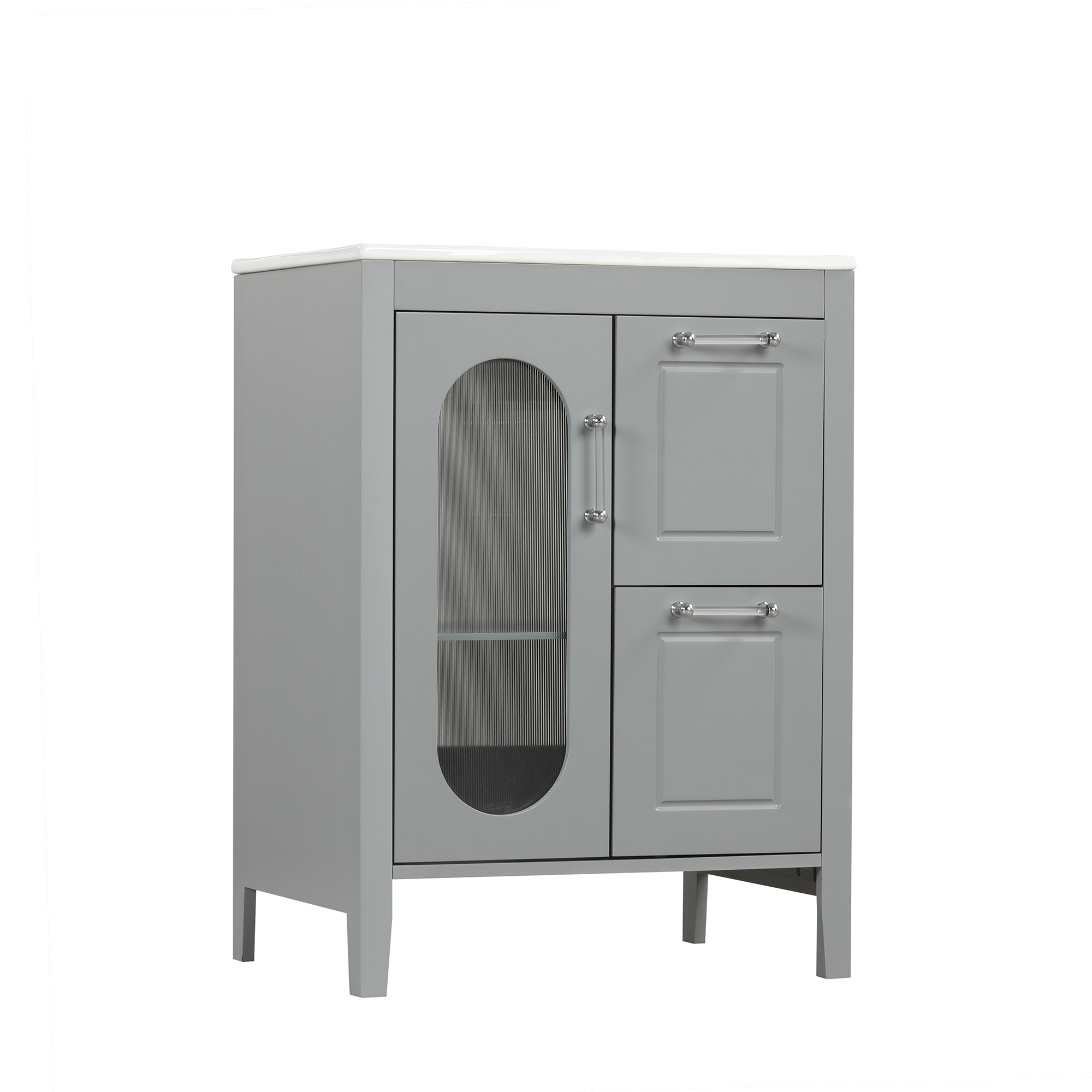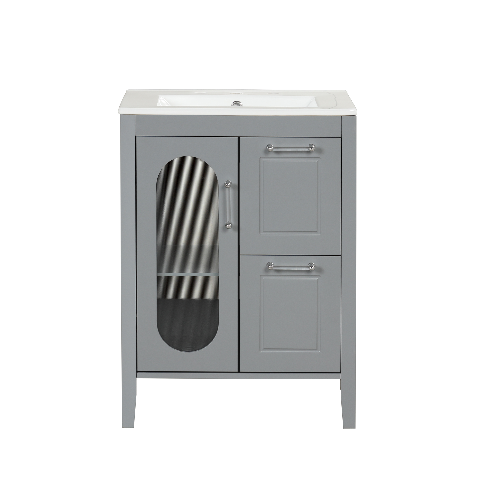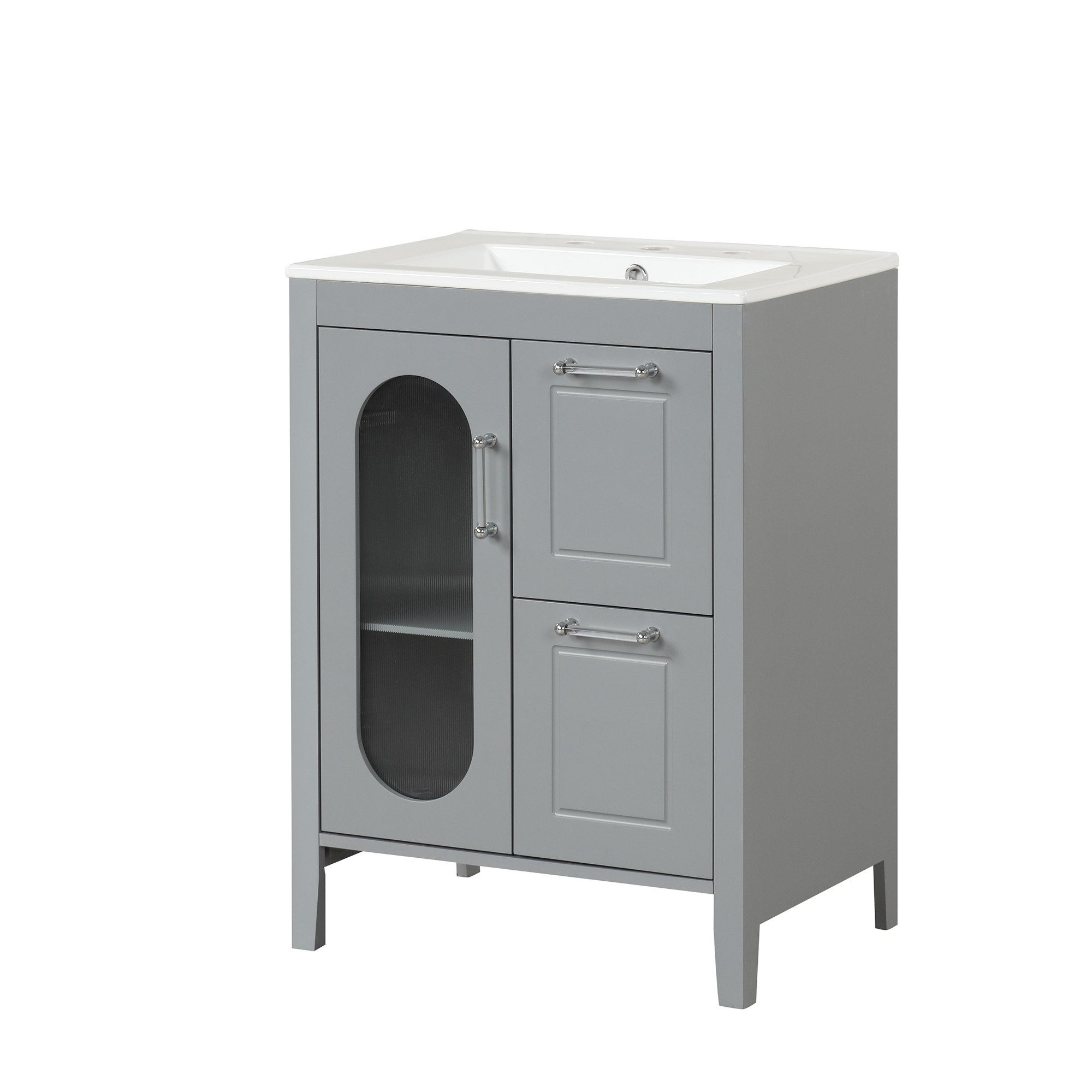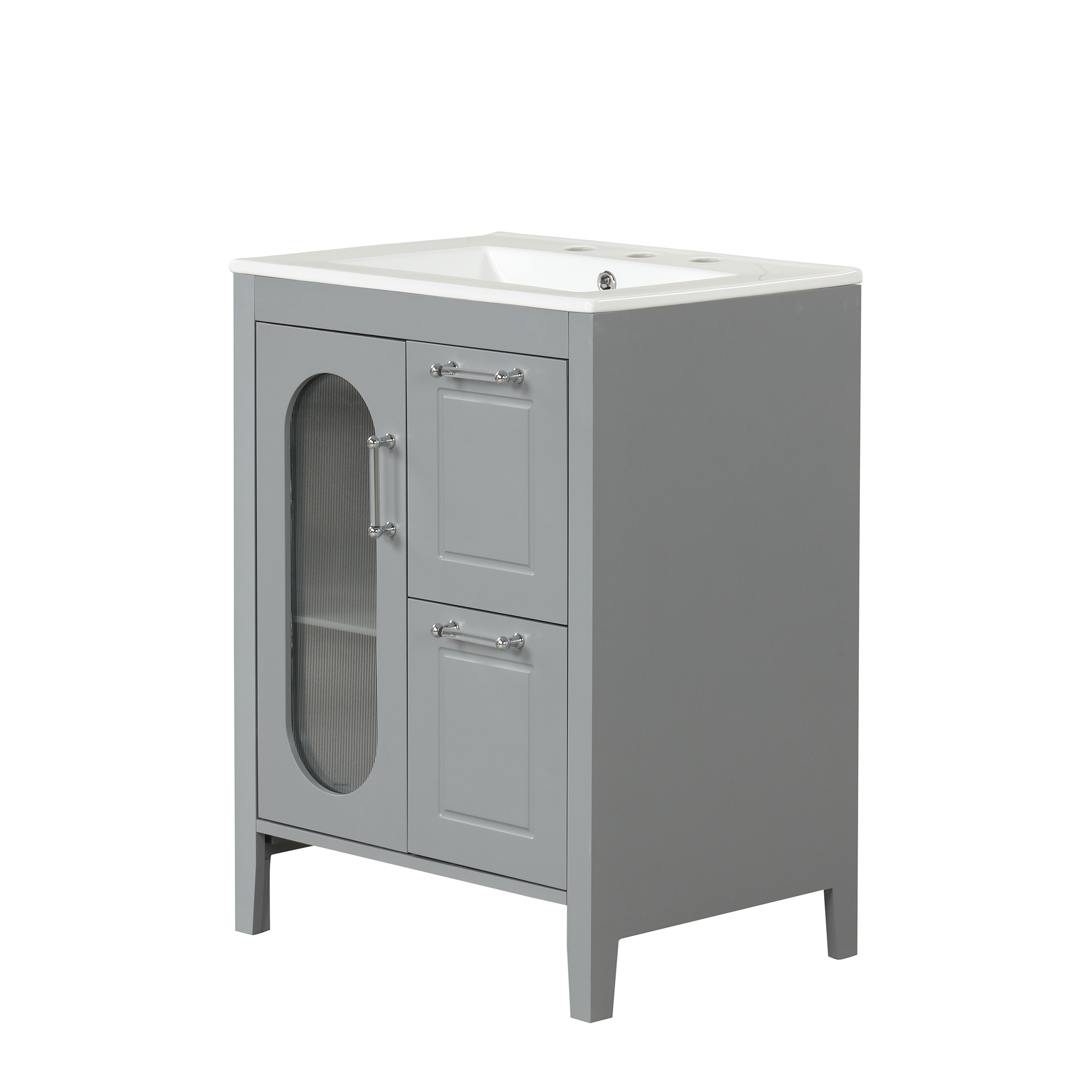 Product Name:24" Bathroom Vanity with Sink, Bathroom Vanity Cabinet with Two Drawers and Door, Adjustable Shelf, Solid Wood and MDF, Grey (Old Sku:N725P245273E)