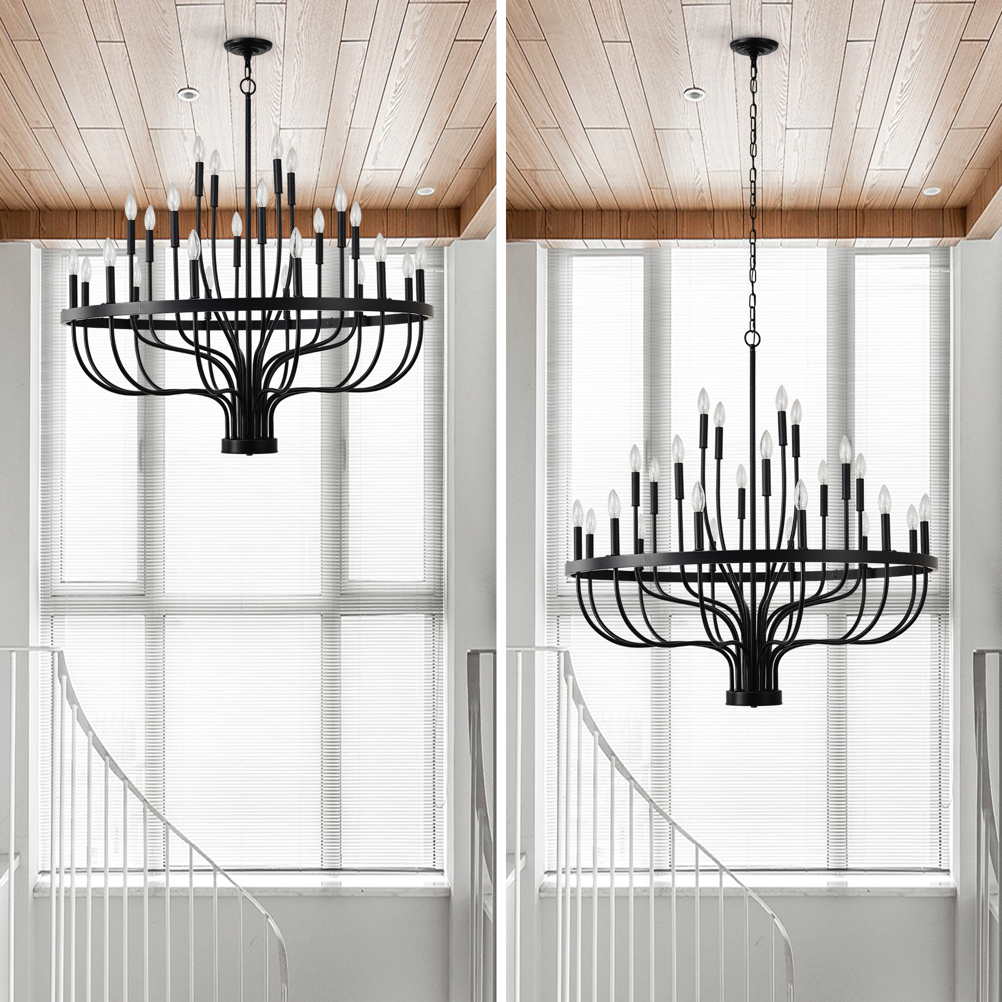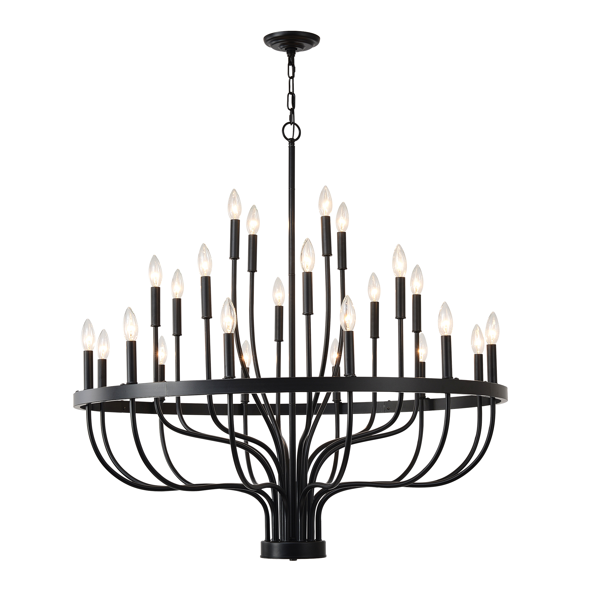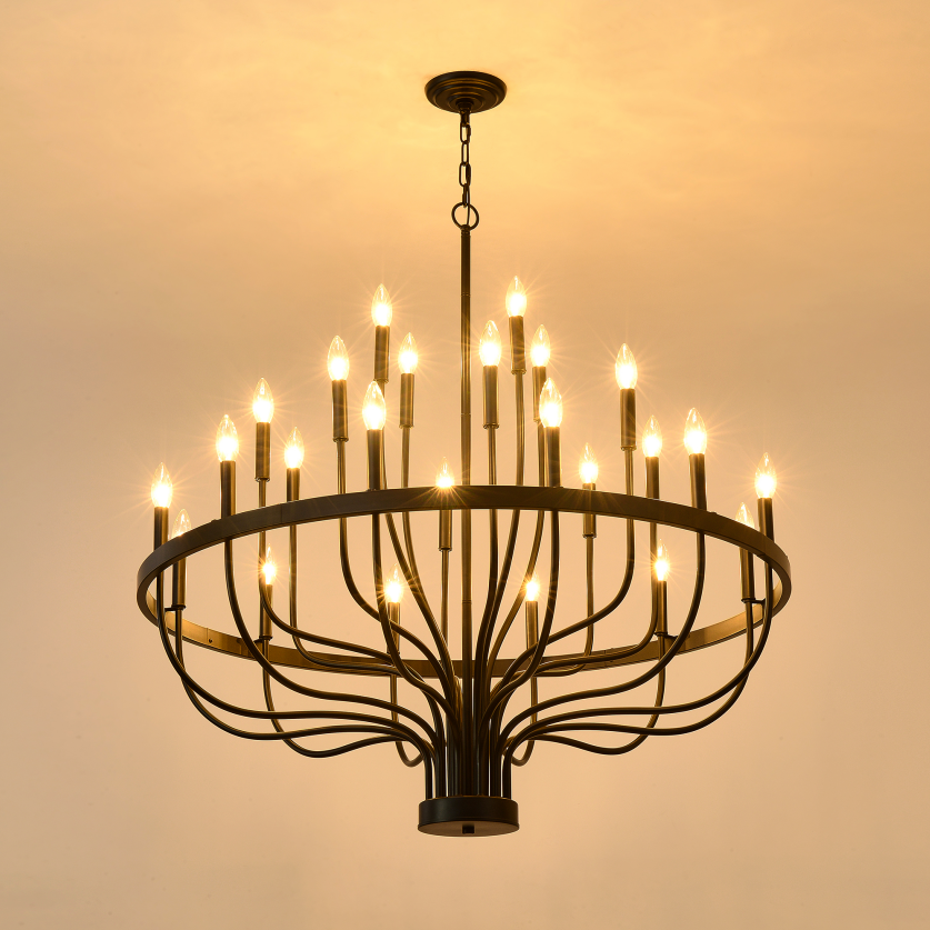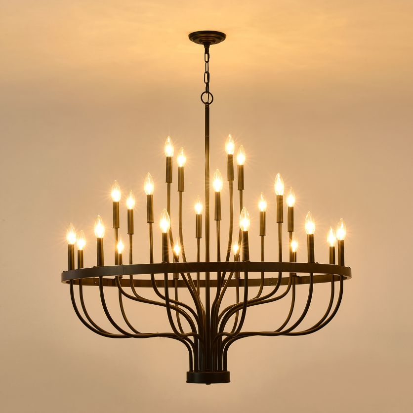 Product Name:24-Light Black Chandelier Industrial Iron Candle Chandelier Modern Suspended Farmhouse Chandeliers Pendant Light Fixtures for Dining Room Bedroom Living Room Kitchen Island Foyer E12 Bulb (NO Include)
