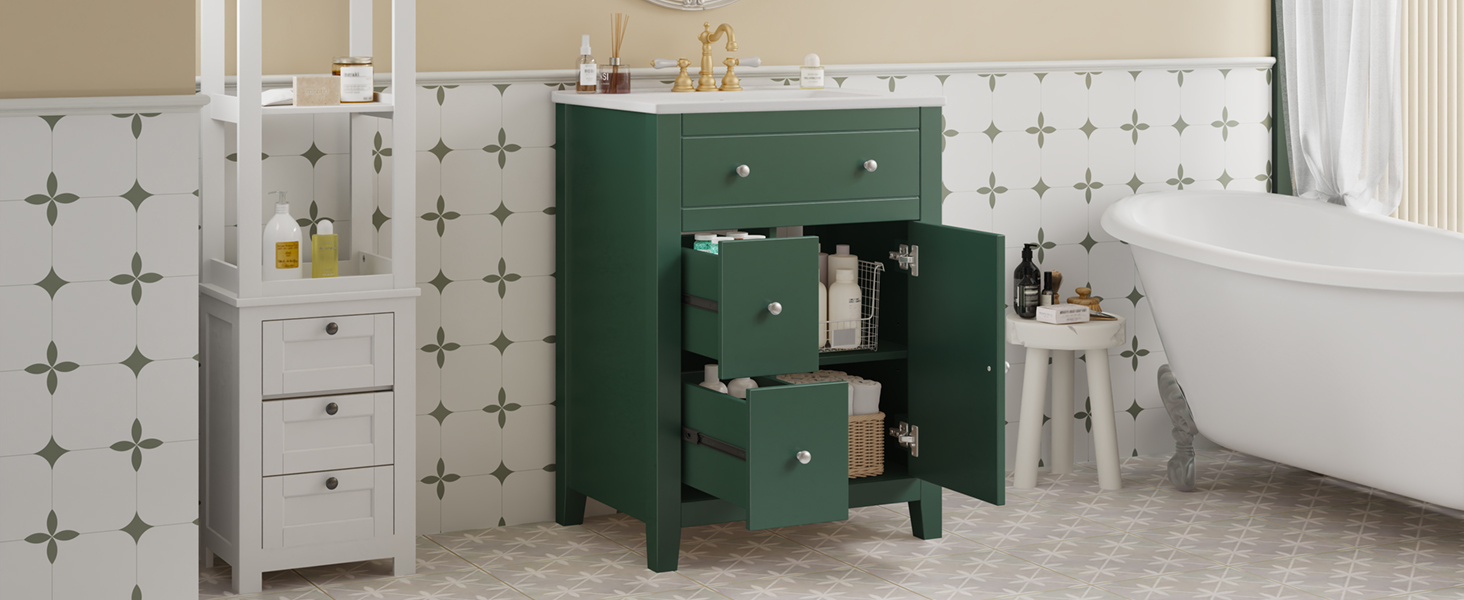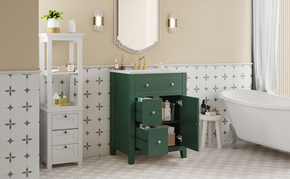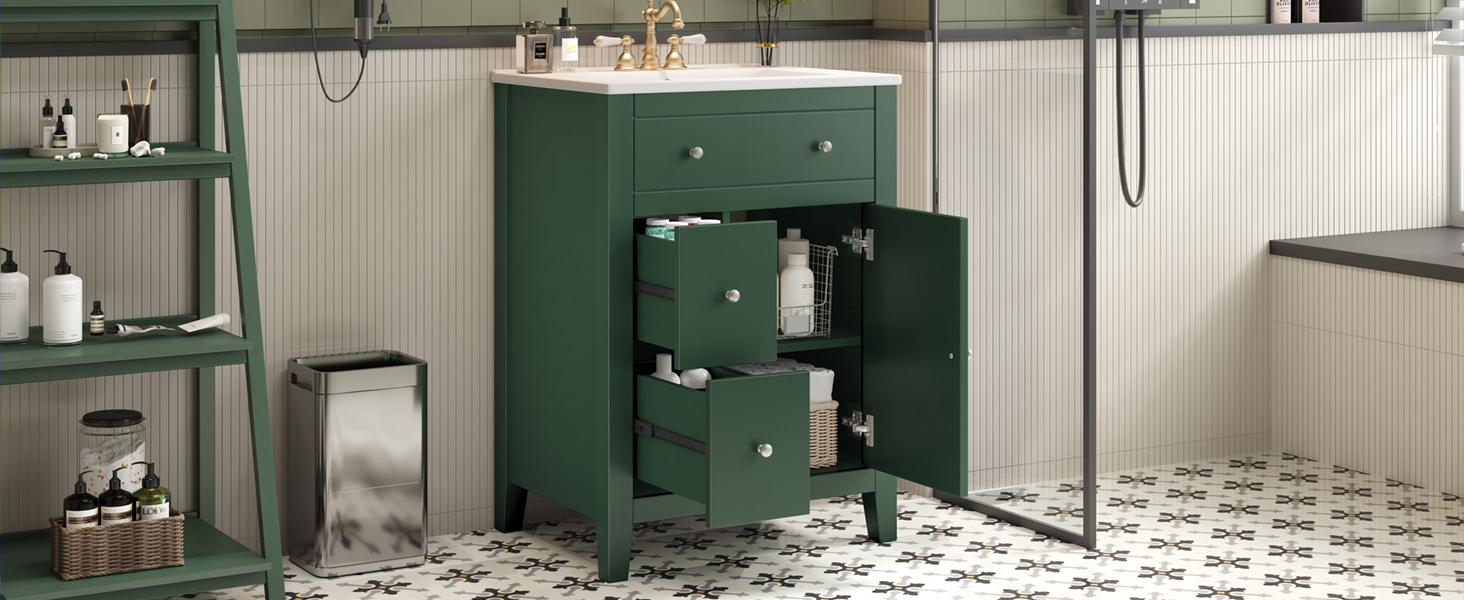 Product Name:24" Modern Bathroom Vanity with Ceramic Basin, Restroom Basin Cabinet with 2 Drawers, Small Bathroom Cabinet with Soft-Closing Door