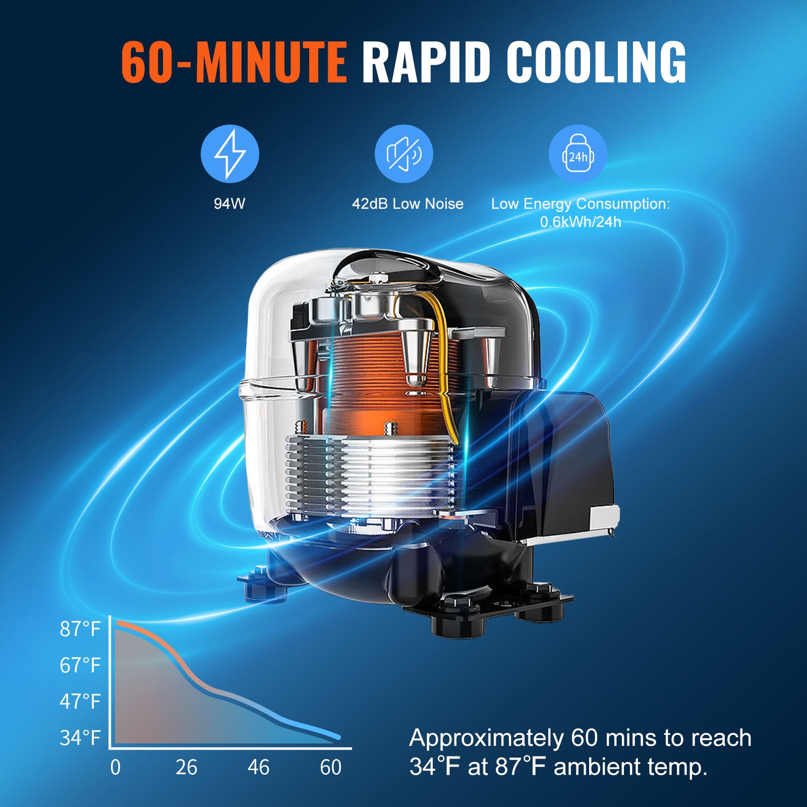 Efficient Cooling: The powerful compressor ensures fast and efficient cooling, while the highly sensitive sensor allows you to select an ideal temperature between 32°F and 50°F. You can always enjoy your favorite cold drinks with our beverage cooler